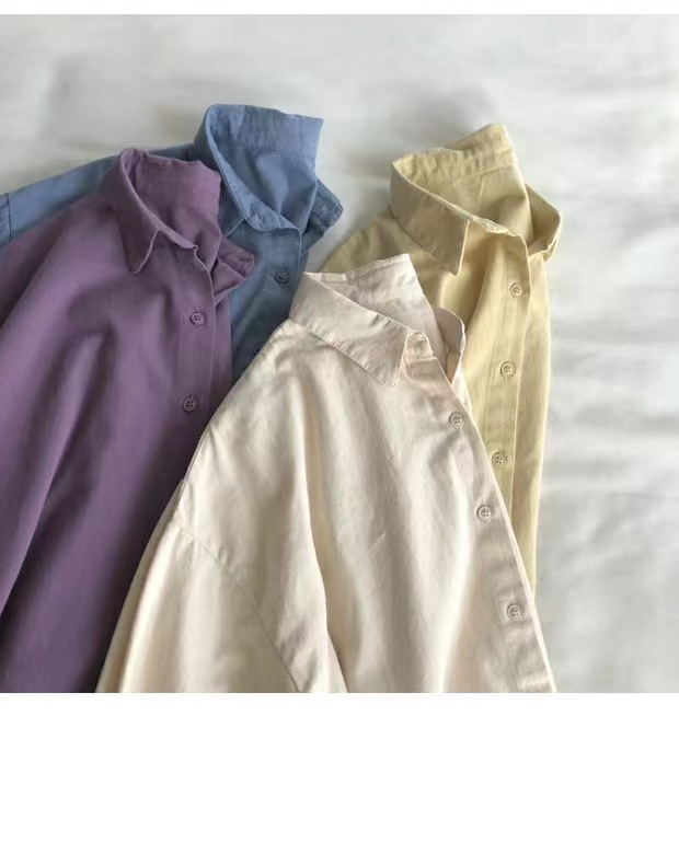 슈퍼 편안한! 흰색 단색면 긴팔 셔츠 여성용 봄 다재다능한 캐주얼 코트 카디건 느슨한 탑스토어 가기