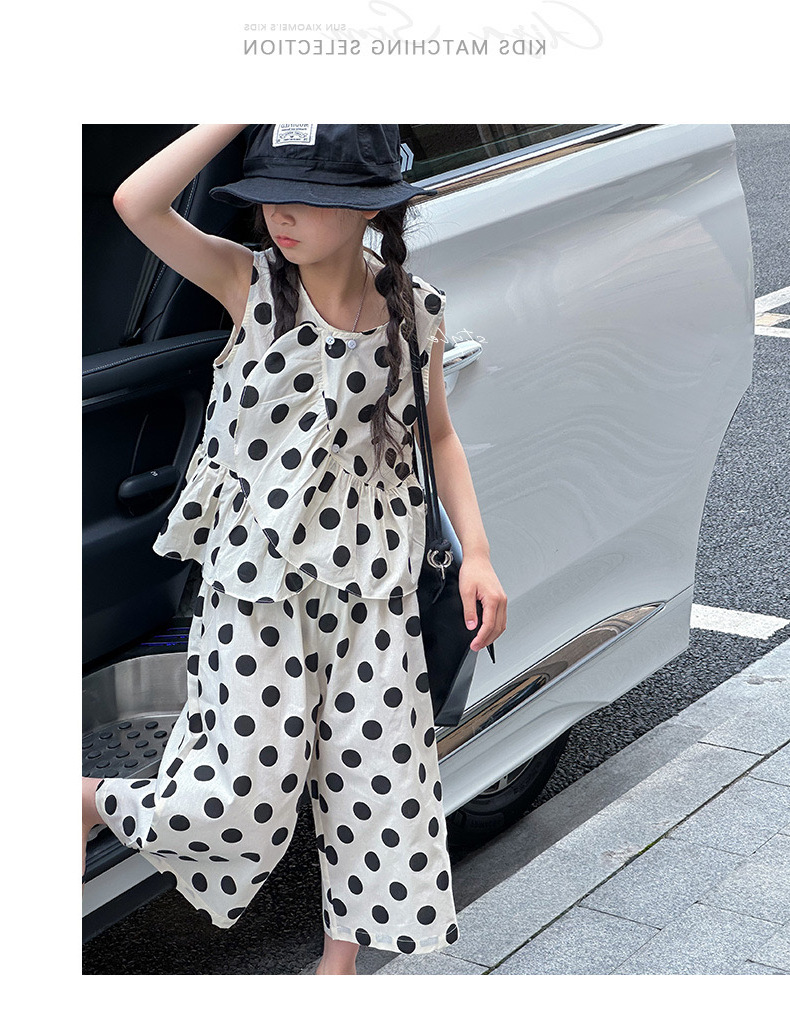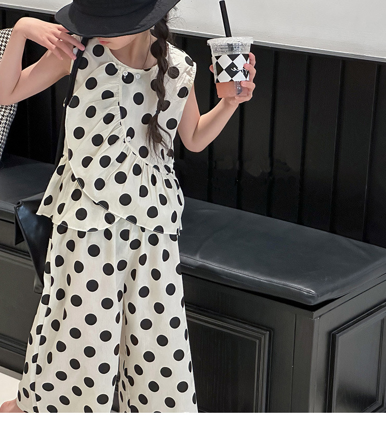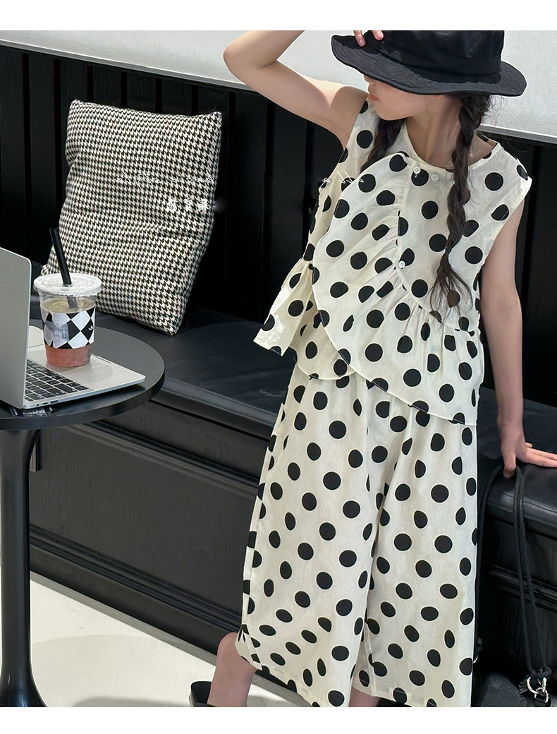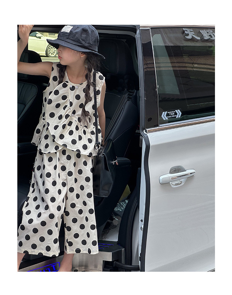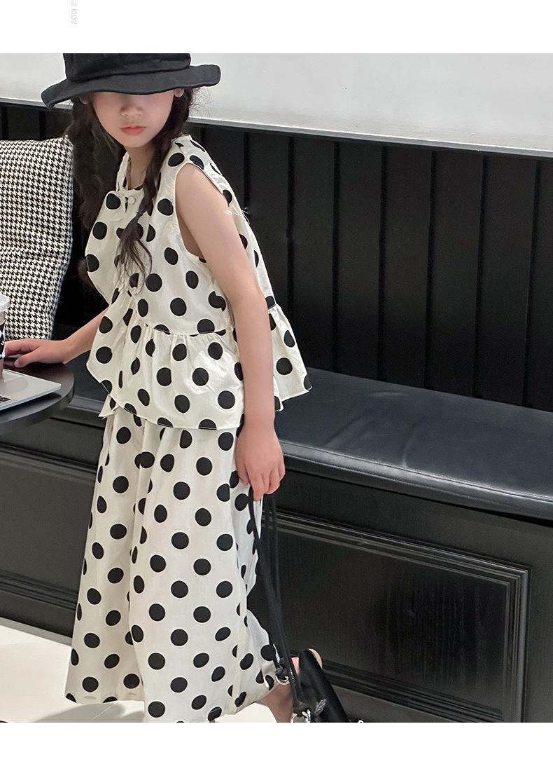소녀 세트 여름 새로운 한국 패션 경사 옷깃 웨이브 포인트 투피스 세트 조수 중소 어린이 머리카락 세대스토어 가기