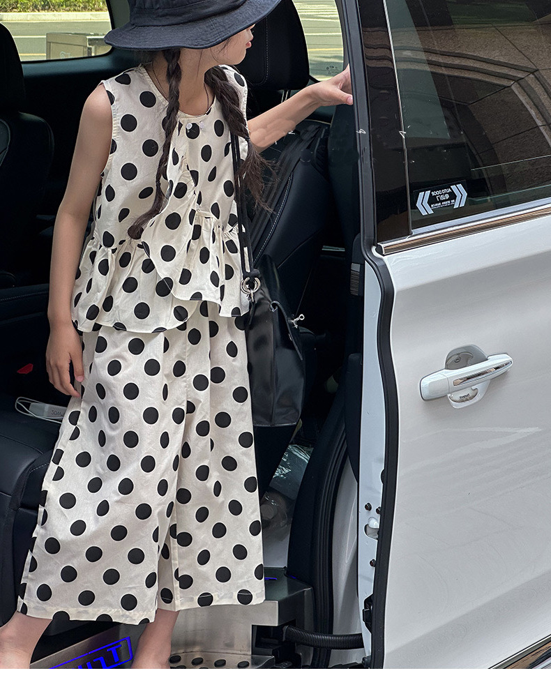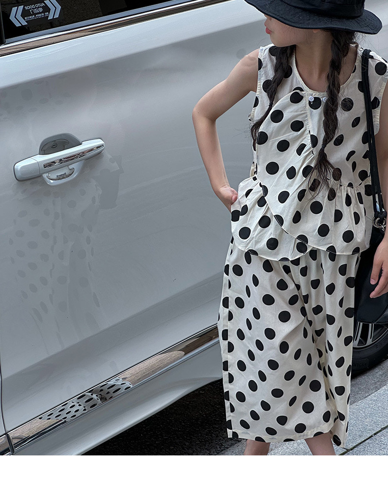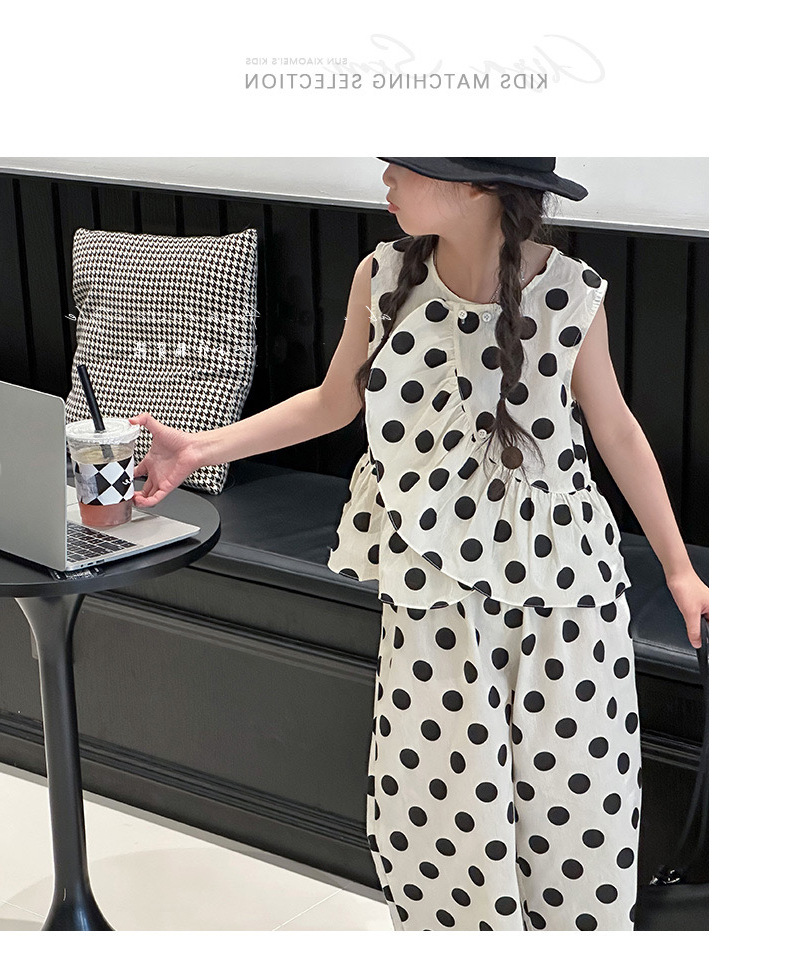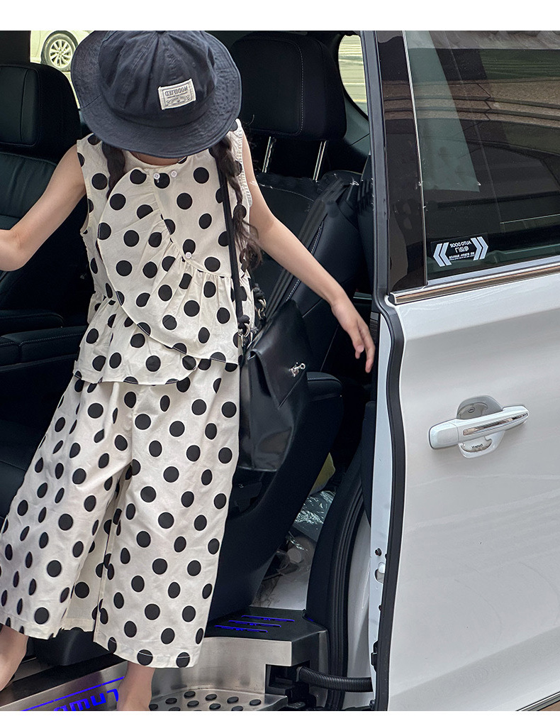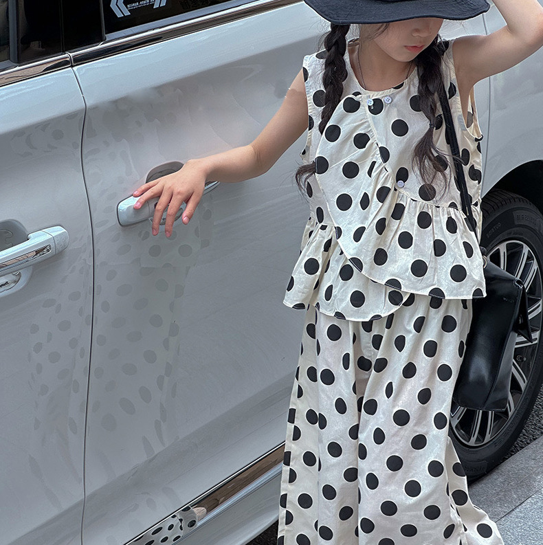 소녀 세트 여름 새로운 한국 패션 경사 옷깃 웨이브 포인트 투피스 세트 조수 중소 어린이 머리카락 세대스토어 가기