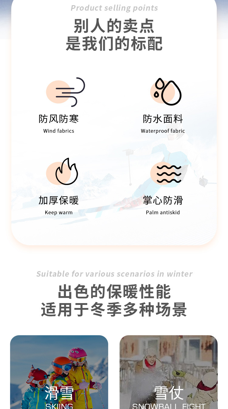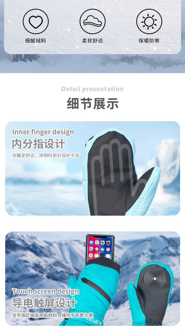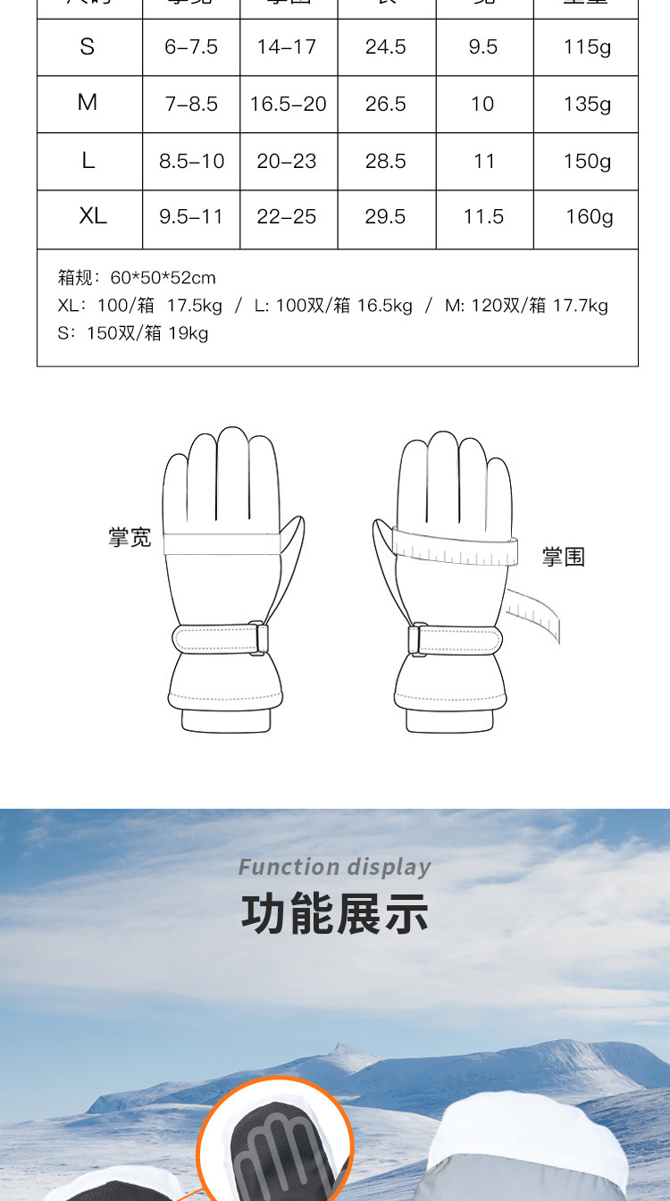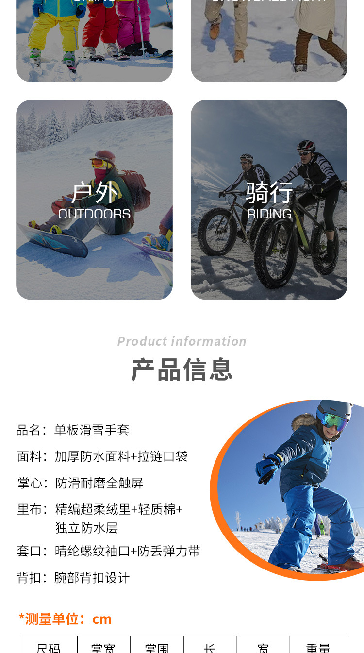 남성용 겨울용 크로스보더 스노보드 장갑, 보온 및 방한, 두꺼운 야외 라이딩 터치스크린 등산 장갑, 손목 보호대 포함