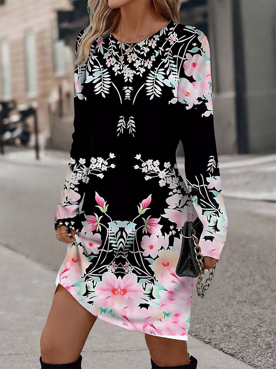 여자 원피스 캐주얼 원피스 미니 원피스 둥근 목 긴 소매 올 매치 티셔츠 스커트 유럽과 미국의 국경 플러스 사이즈스토어 가기