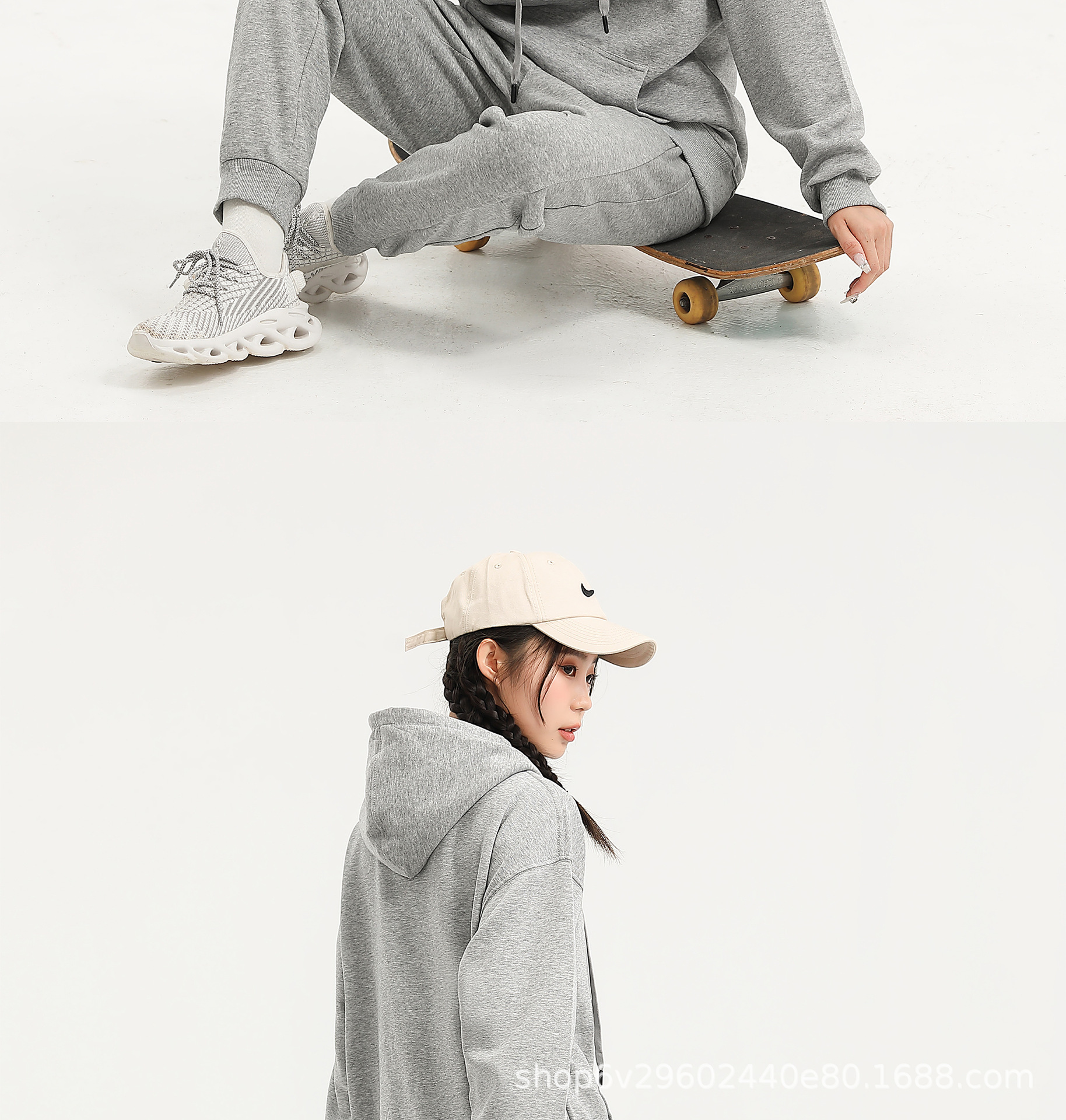 크로스 보더 아메리칸 루즈 스트리트 남성 트렌디 브랜드 솔리드 컬러 후드 혼합 코튼 양면 스웨트 셔츠 여성 한국 스타일 캐주얼 긴팔 가을스토어 가기