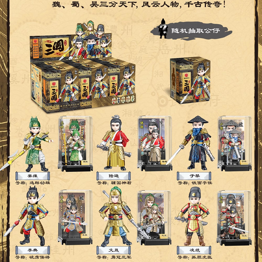 Xiangjun 빌딩 블록 3 왕국 Qunying Huaxia Fengyun 국가 패션 블라인드 박스 Guan Yu Zhao Yun 사람들의 보물 판 남성 조립 장난감스토어 가기