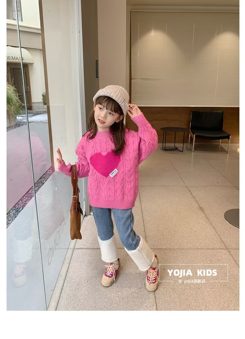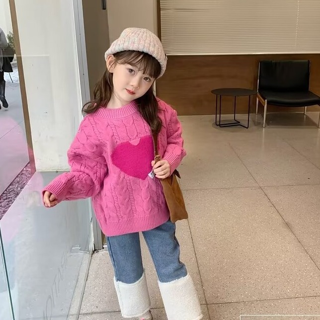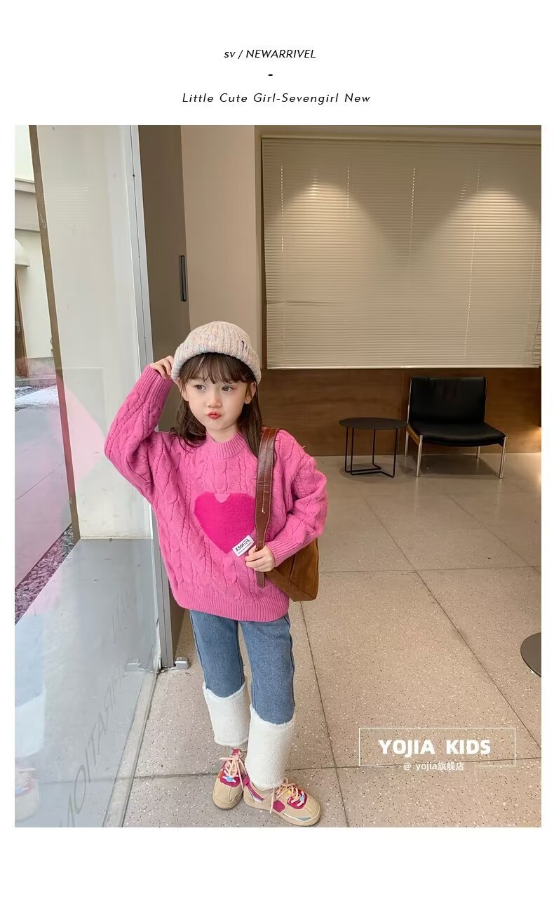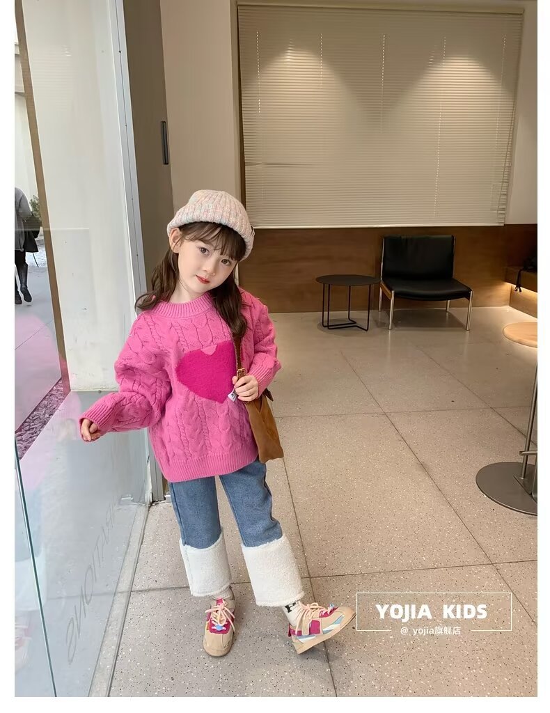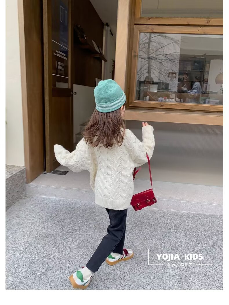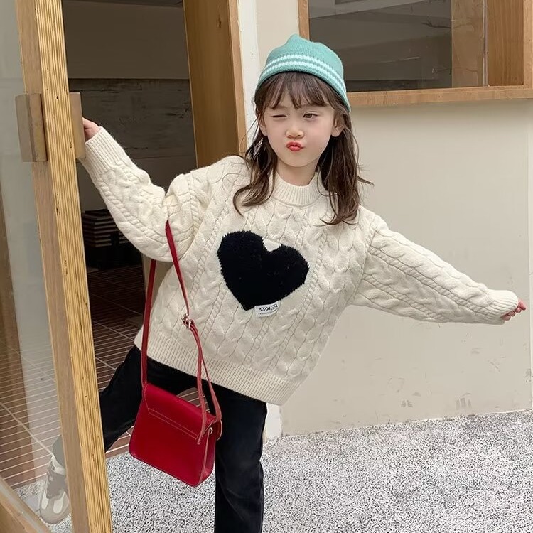 여아 스웨터 겨울 2024 새로운 스타일 아동용 두꺼운 스웨터 가을 겨울 풀오버 베이스 울 탑스토어 가기