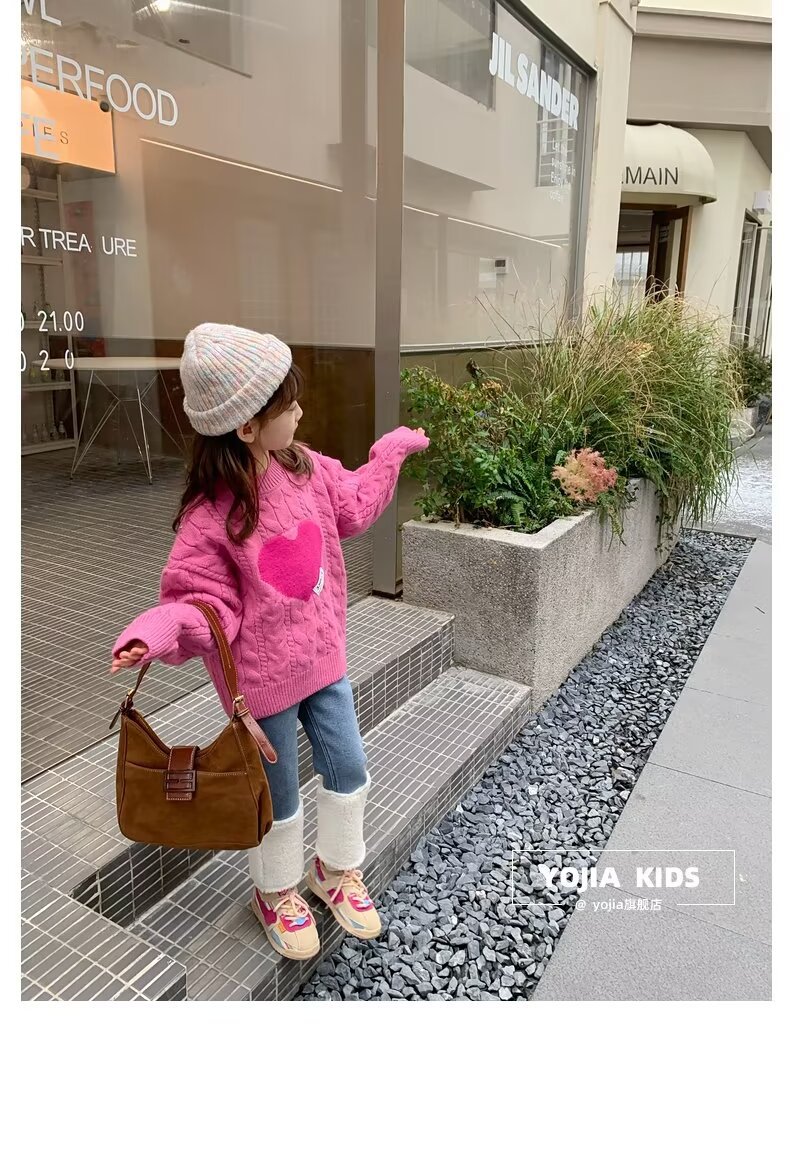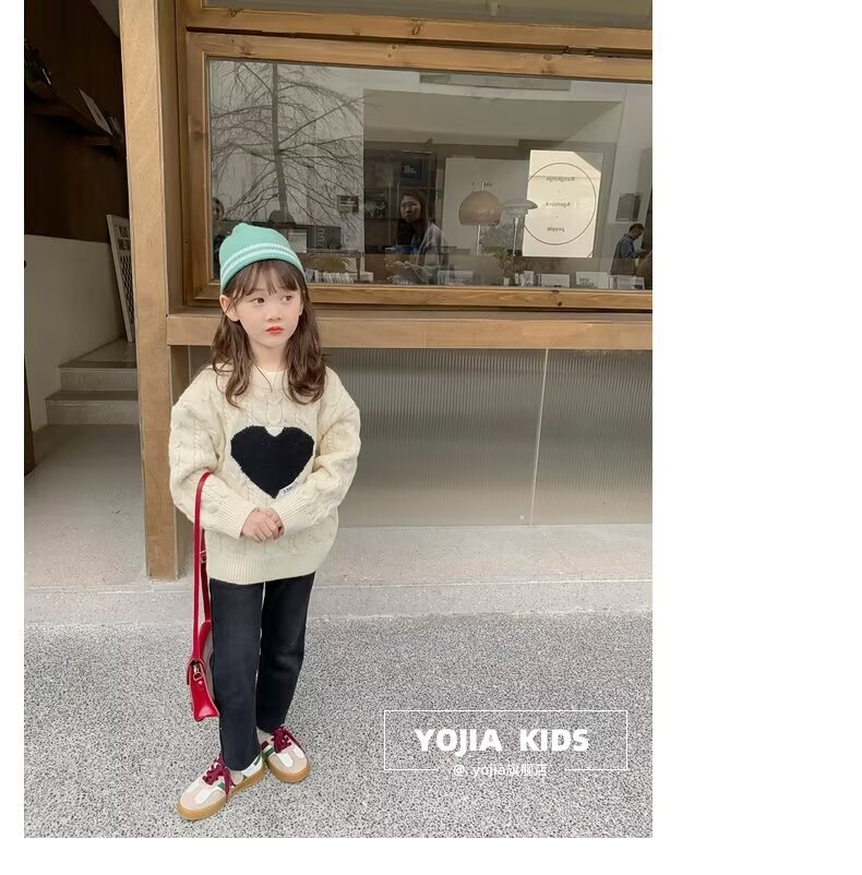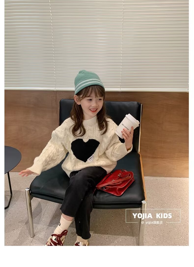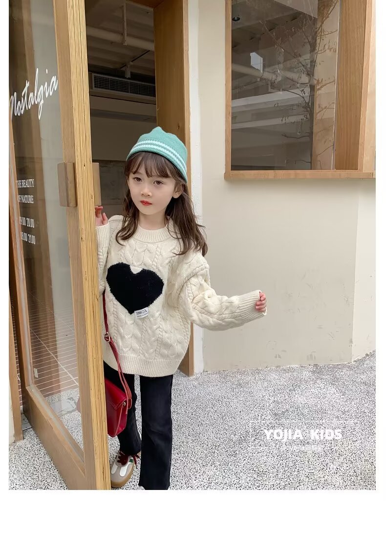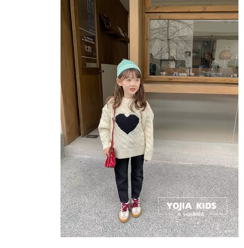 여아 스웨터 겨울 2024 새로운 스타일 아동용 두꺼운 스웨터 가을 겨울 풀오버 베이스 울 탑스토어 가기