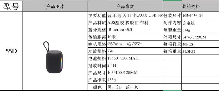 55D 패브릭 블루투스 스피커 무선 카드 소형 오디오 서브 우퍼 야외 휴대용 미니 블루투스 스피커