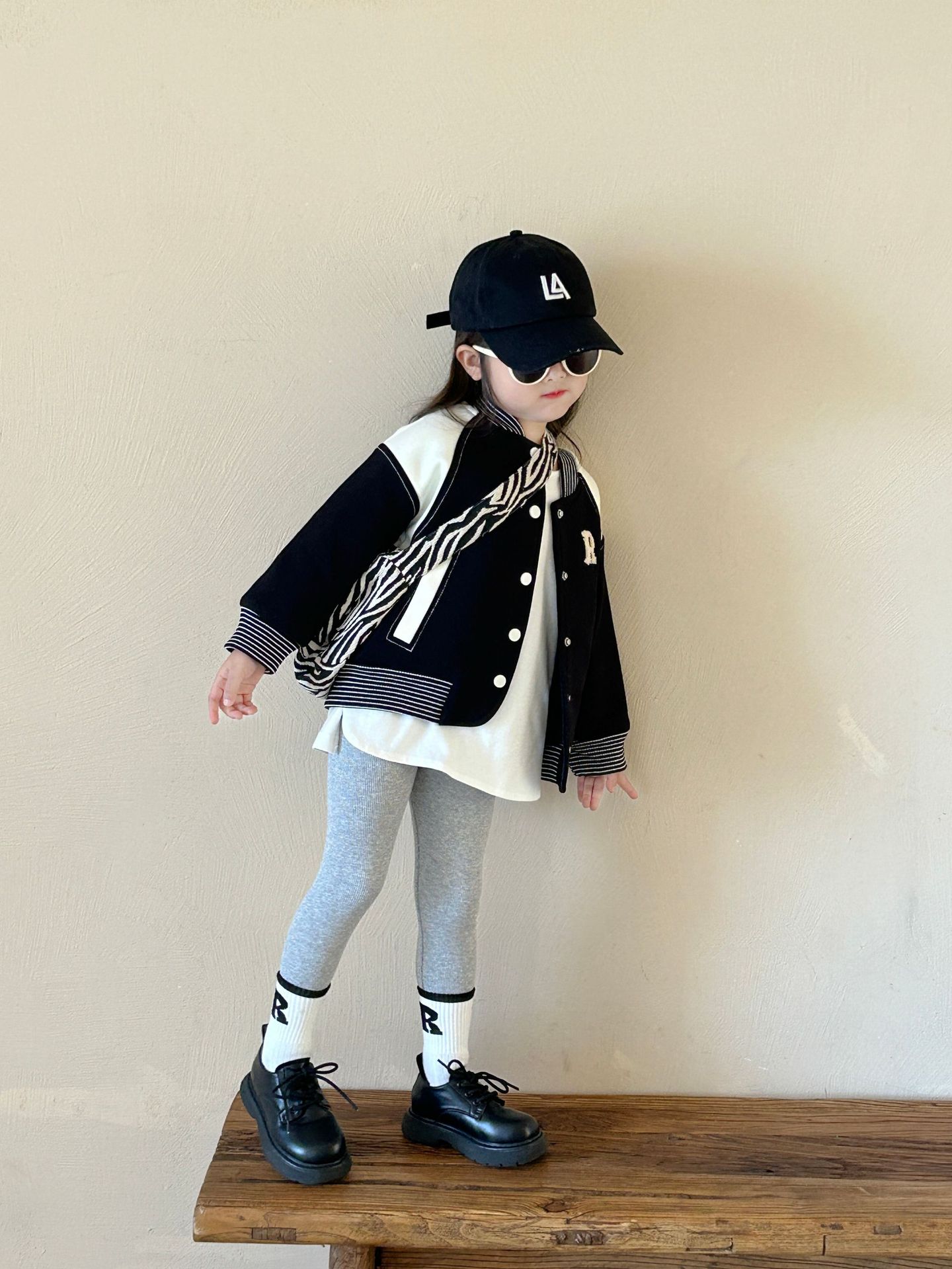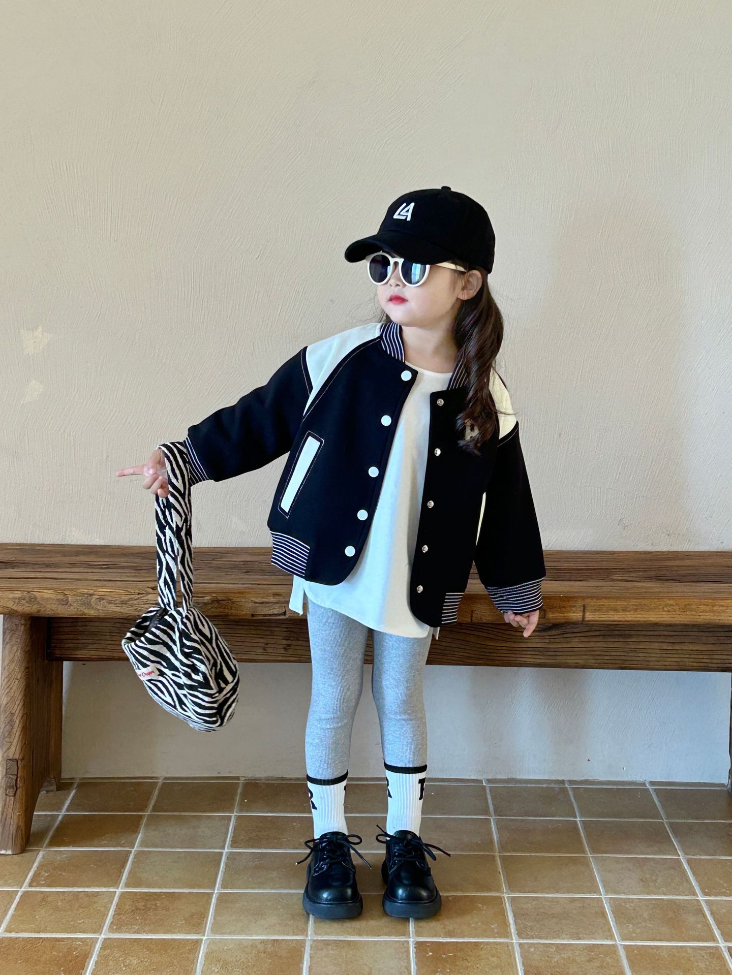 2025 여아용 레터링 야구점퍼+긴팔 티셔츠+다용도 레깅스 3종 세트 아동용 레터링 프린트스토어 가기
