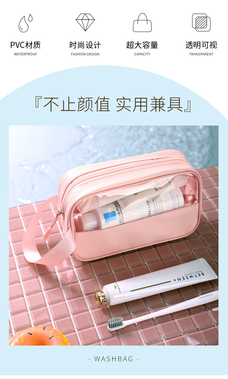 투명한 야외 방수 화장품 가방 휴대용 세탁 가방 휴대용 목욕 가방 대용량 저장 가방 스티칭 화장품 가방스토어 가기