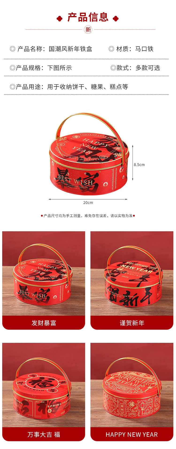 국가 패션 새해 라운드 철 저장 상자 새해 휴대용 선물 상자 새해 선물 상자 결혼식 사탕 상자스토어 가기