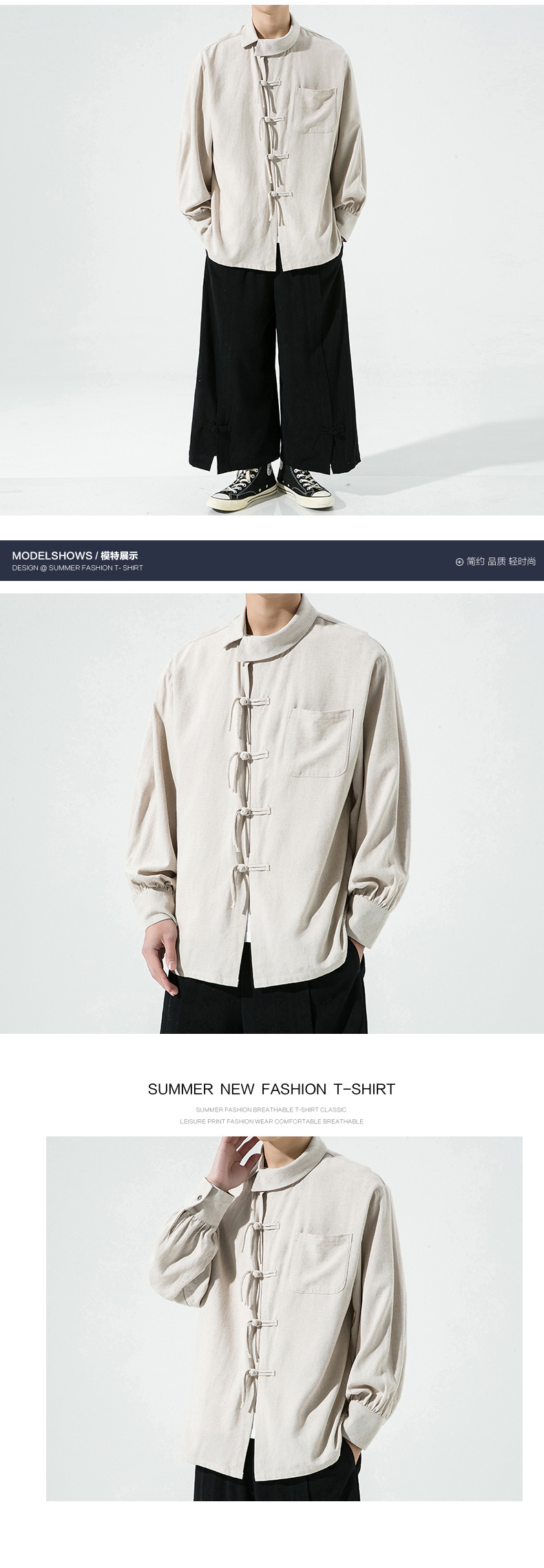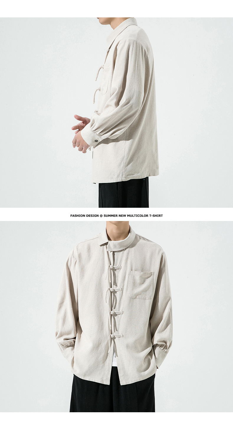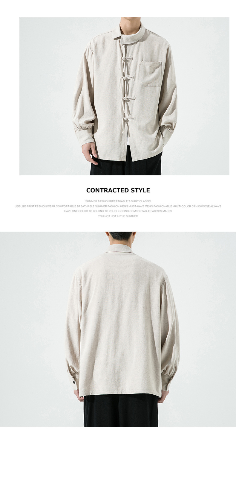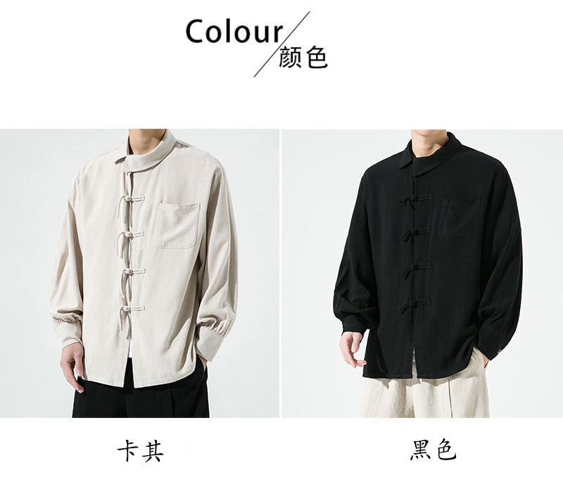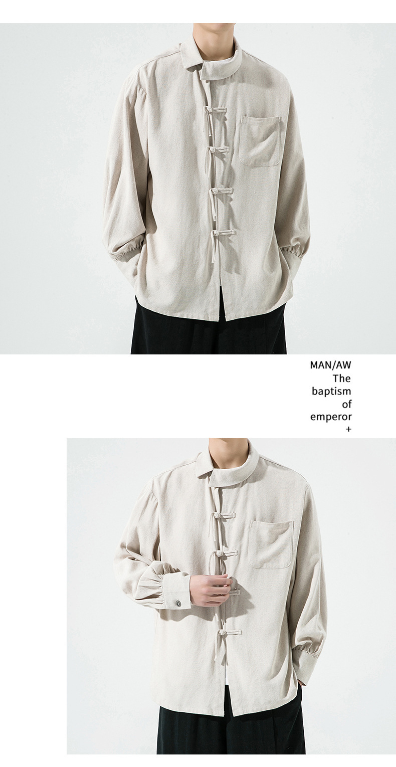 2023 봄과 여름 새로운 복고풍 린넨 남성 캐주얼 긴팔 셔츠 크로스 보더 패션 플러스 사이즈 버클 남성 한푸스토어 가기
