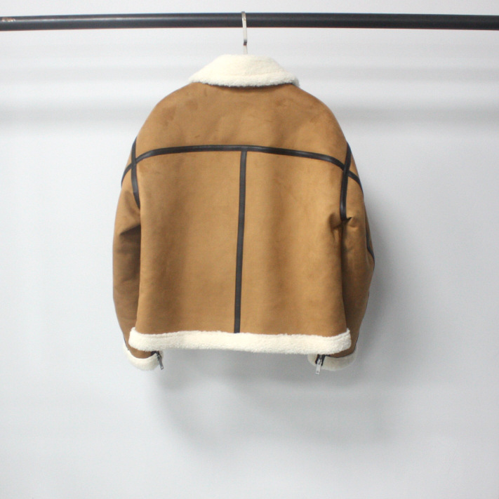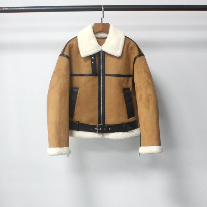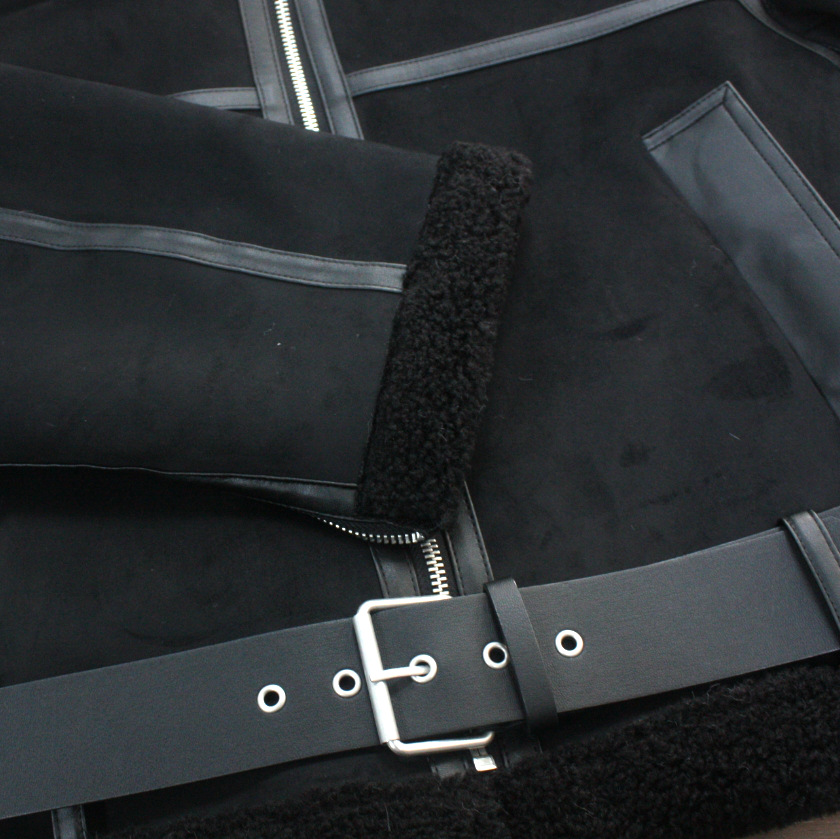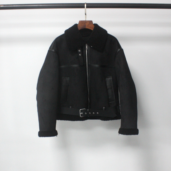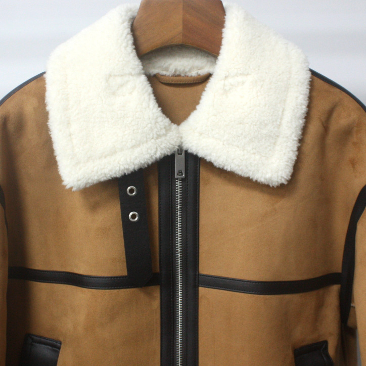 2024TT 이른 봄 새로운 북유럽 틈새 모피 통합 오토바이 울 파일럿 재킷 코트