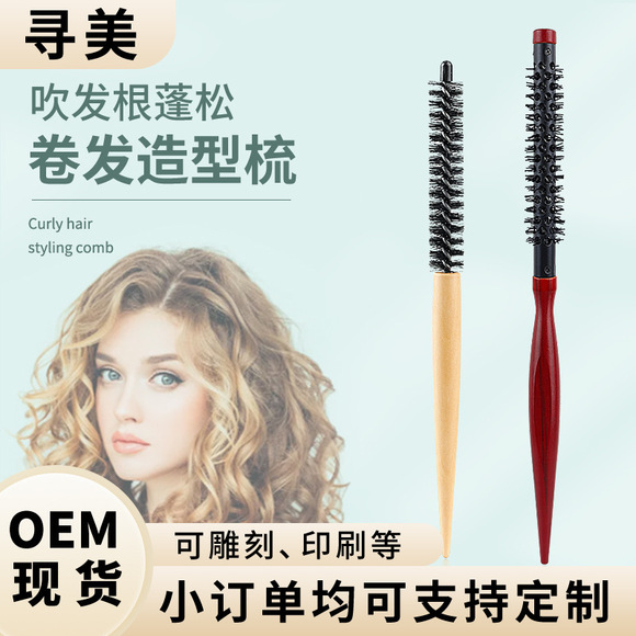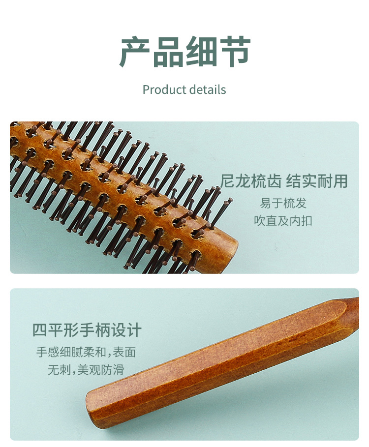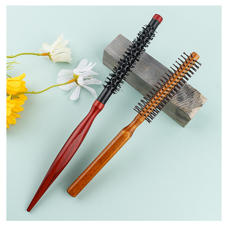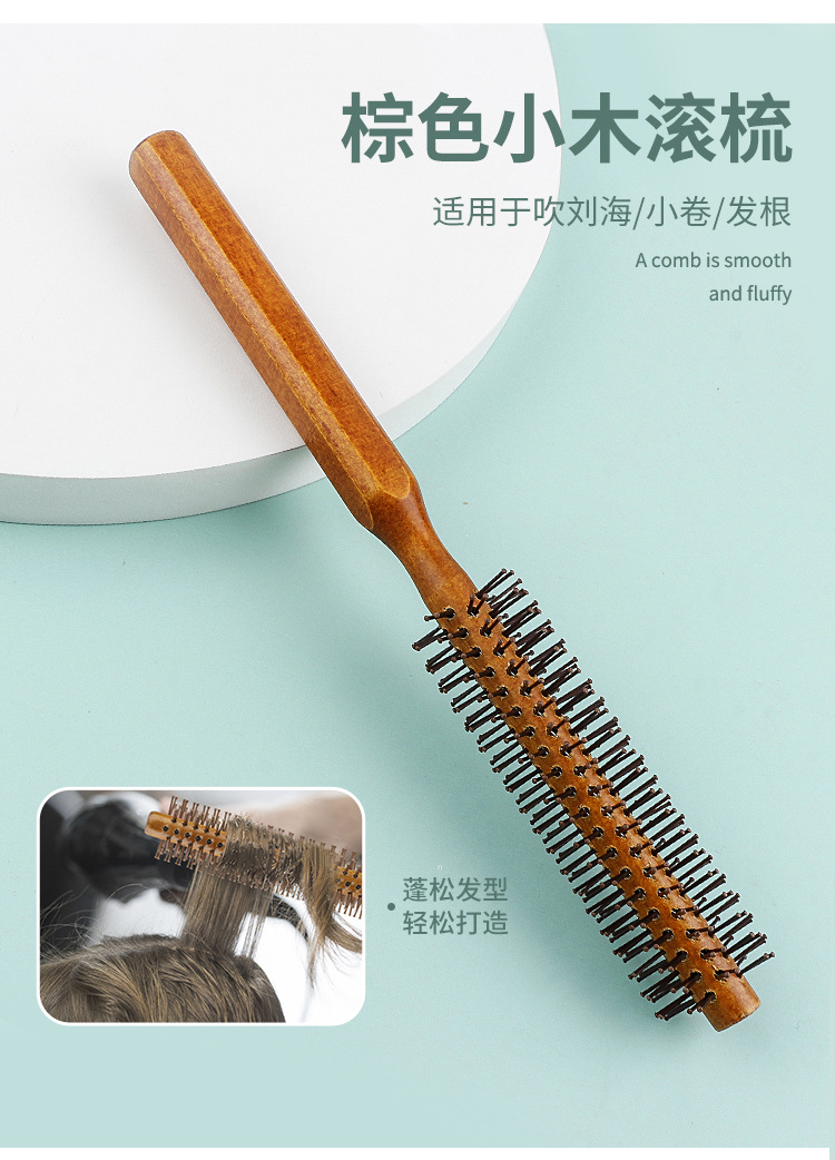 • 다크 브라운 작은 나무 손잡이 롤러 빗