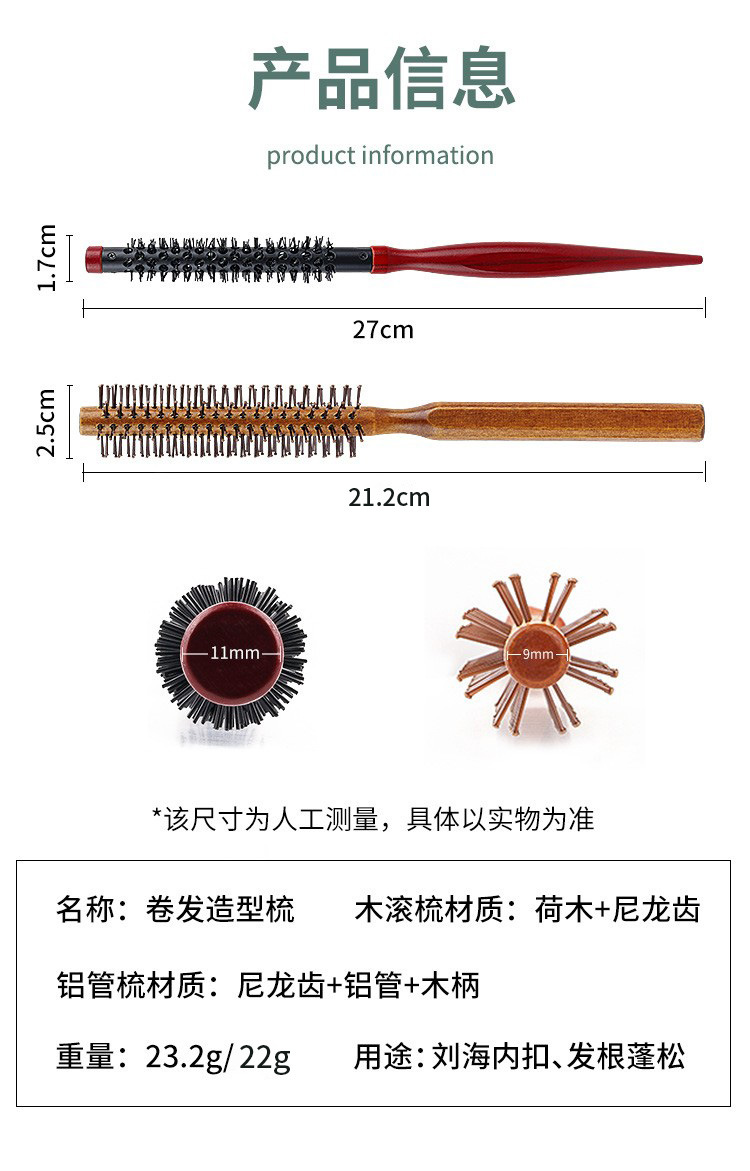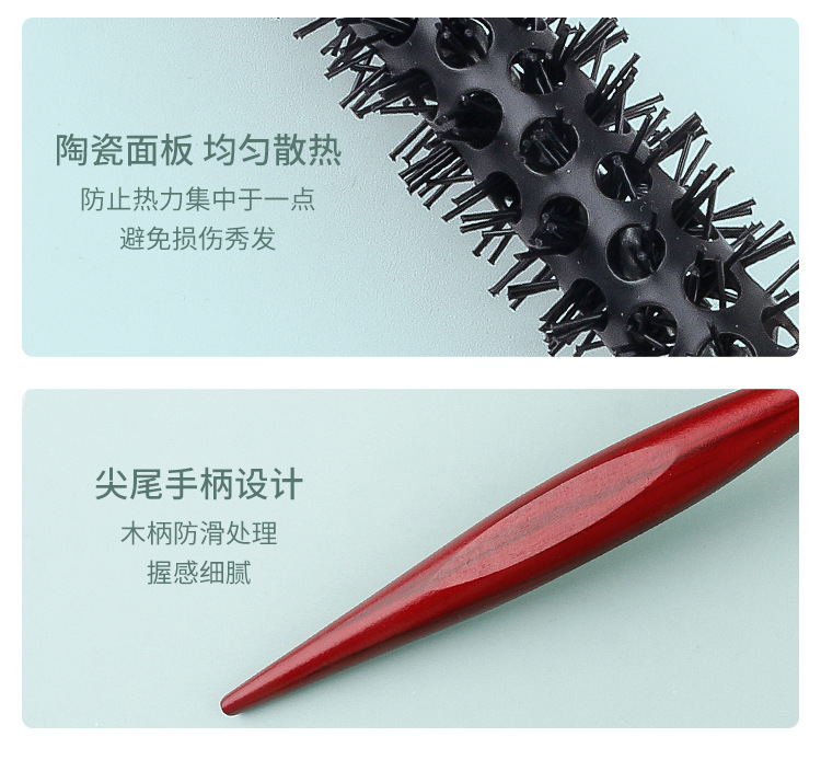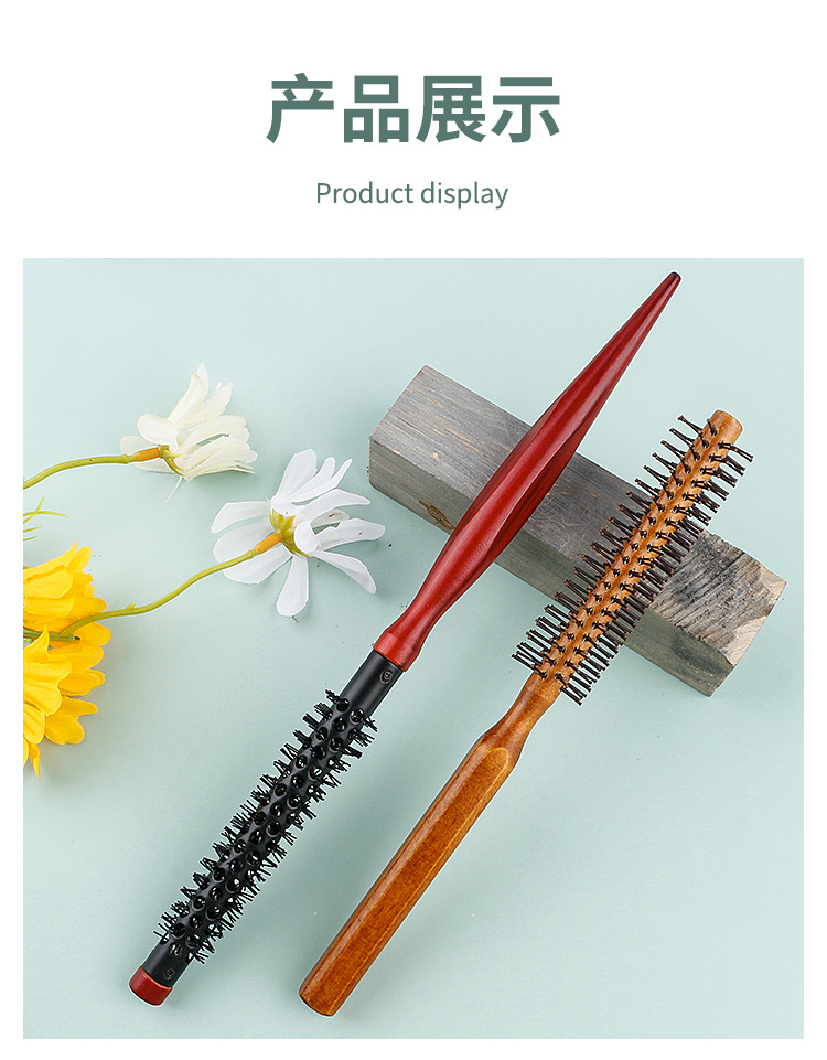 • 갈색 작은 나무 손잡이 롤러 빗 + 마호가니 알루미늄 튜브 빗 11#