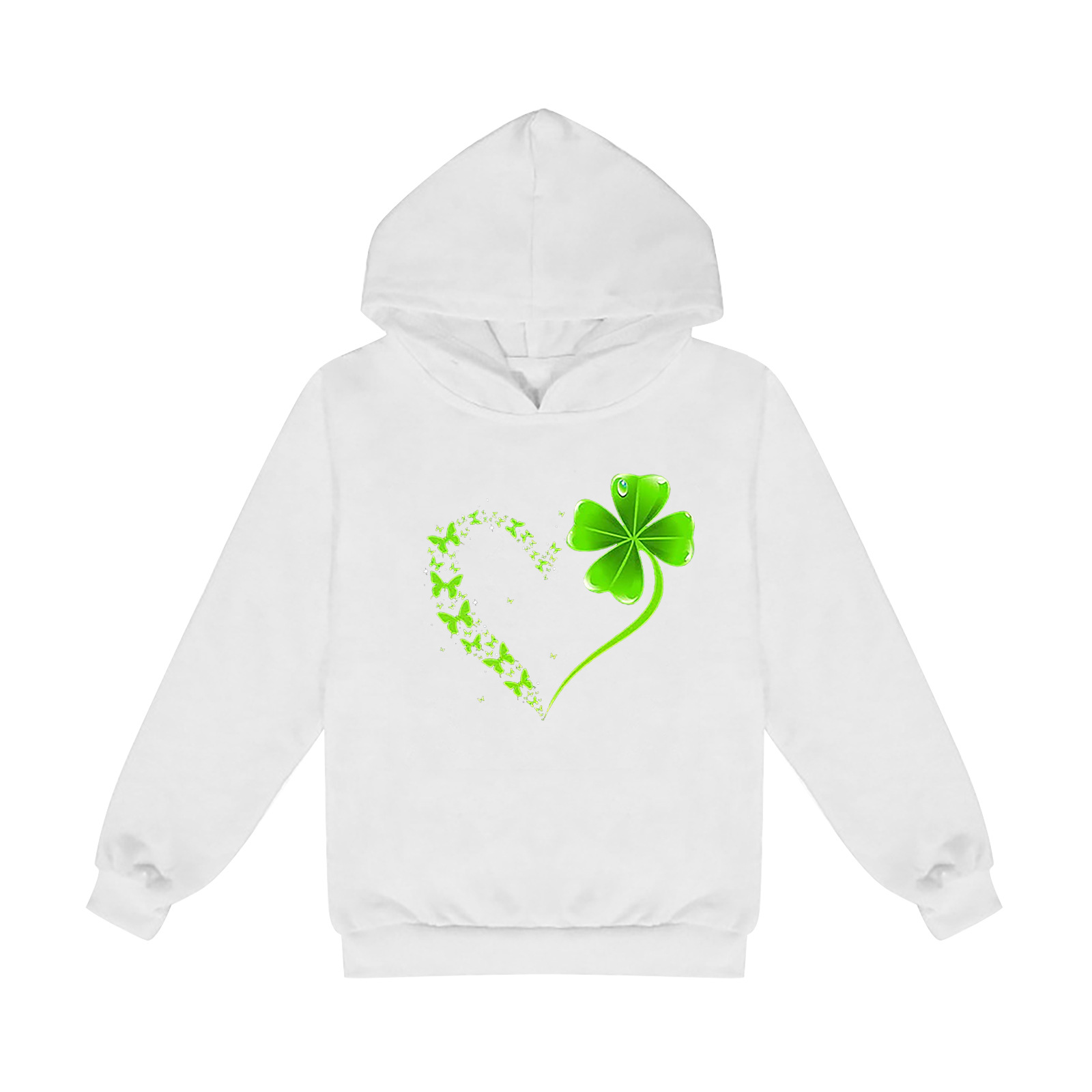 세인트 패트릭 세인트 패트릭 데이 네잎 클로버 하트 프린트 대외 무역 아동 캐주얼 후드 풀오버 스웨트 셔츠