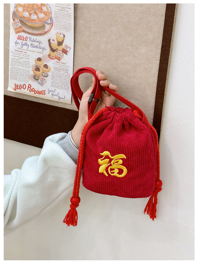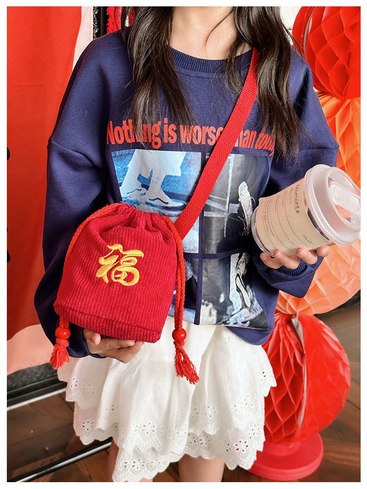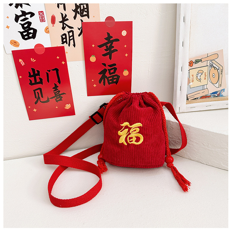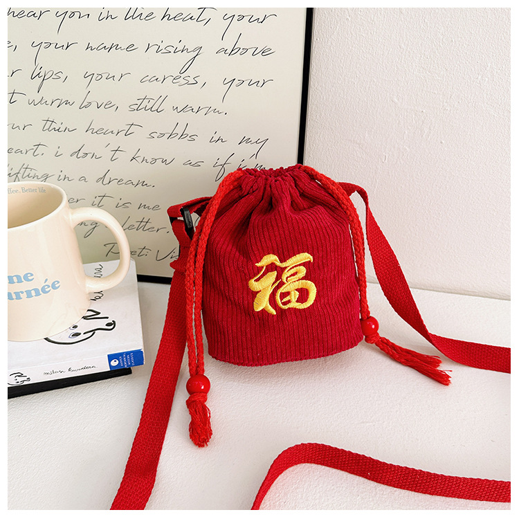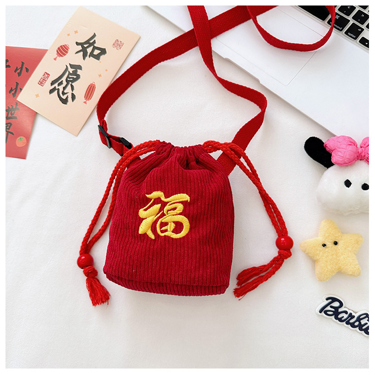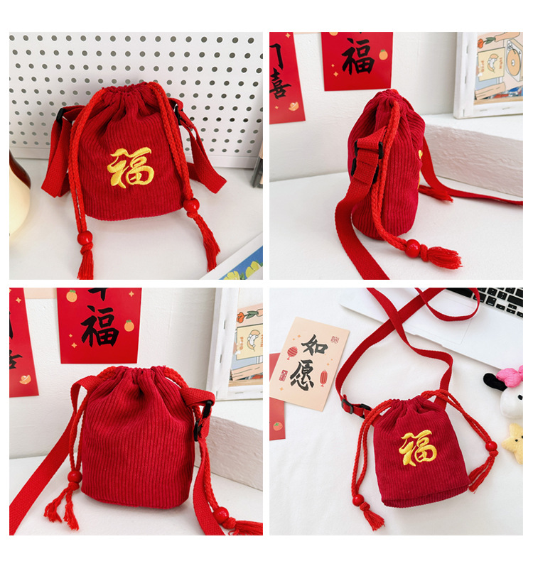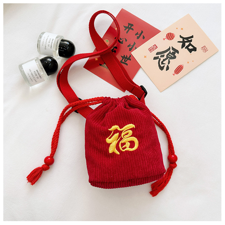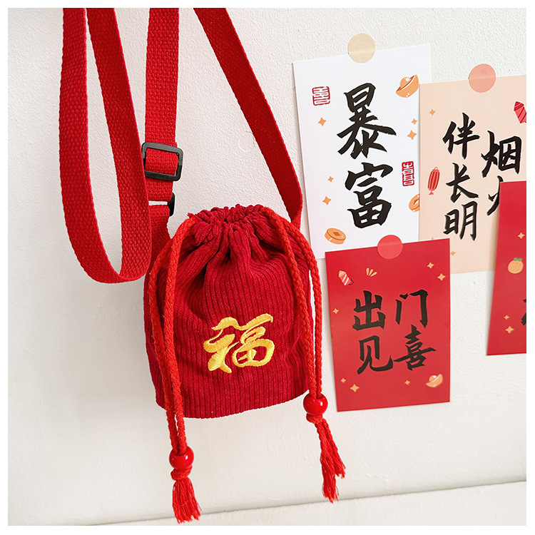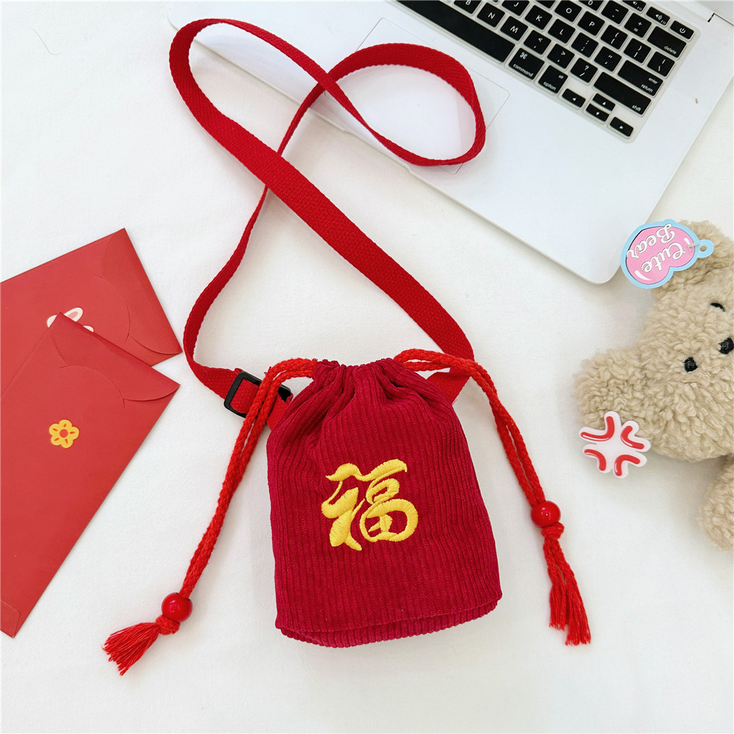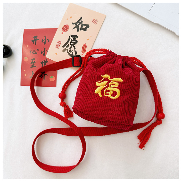 도매 신상 여성용 원숄더 크로스백 레드 드로스트링 새해 동전 지갑 어린이 새해 선물 자수 복주머니
