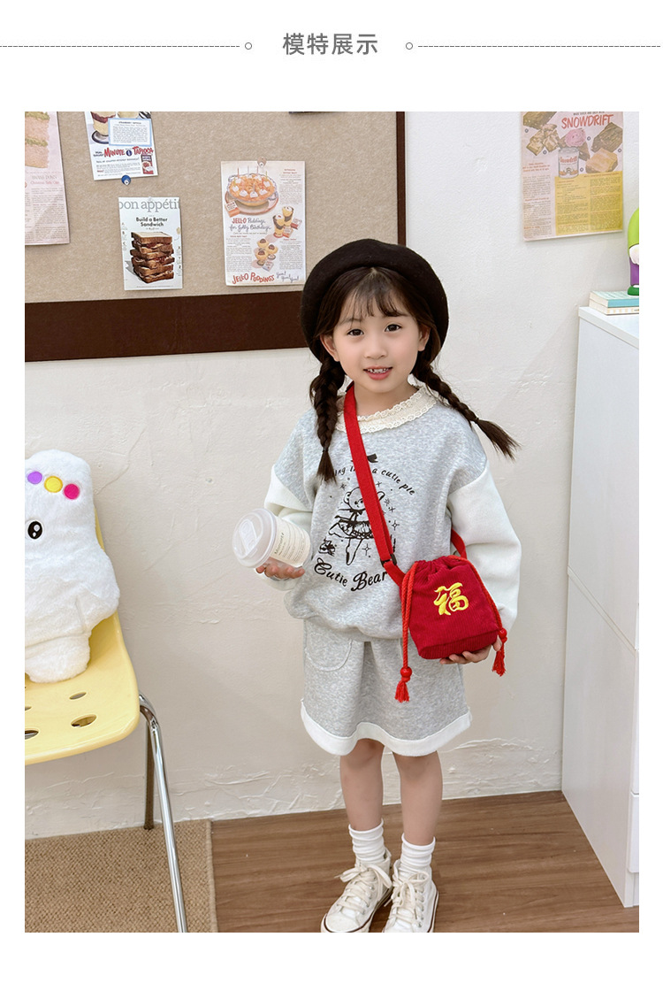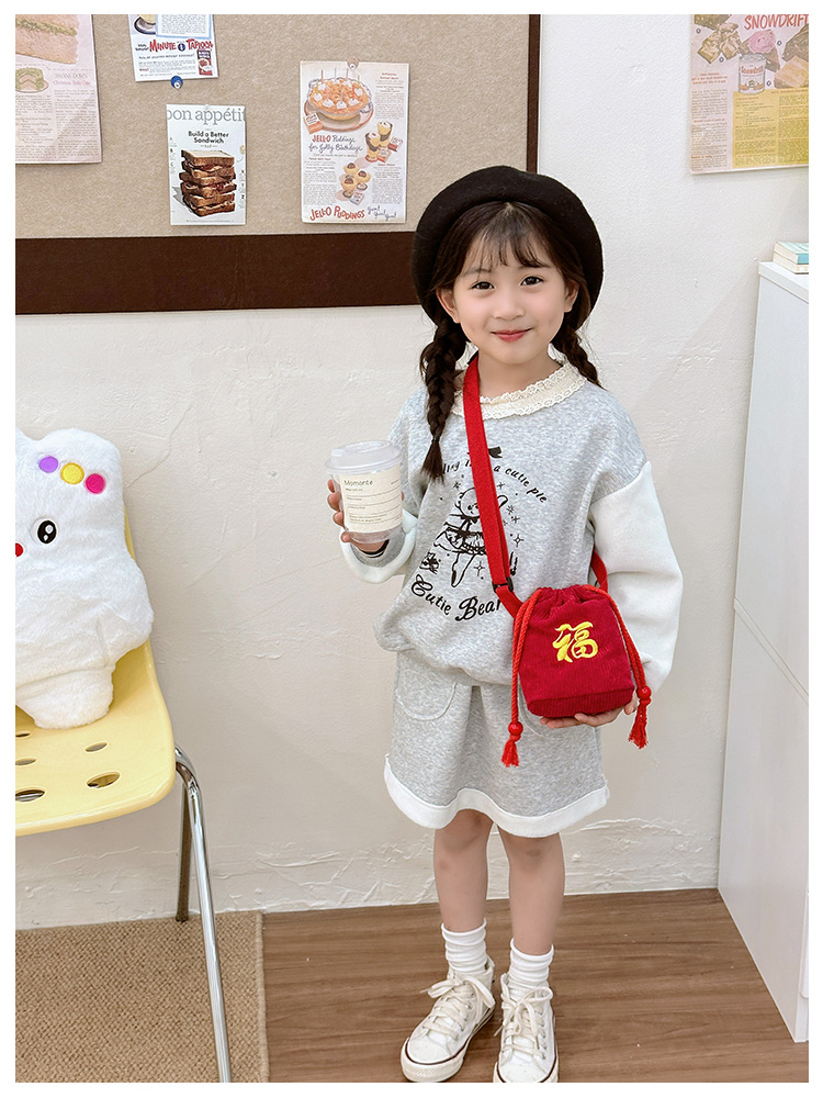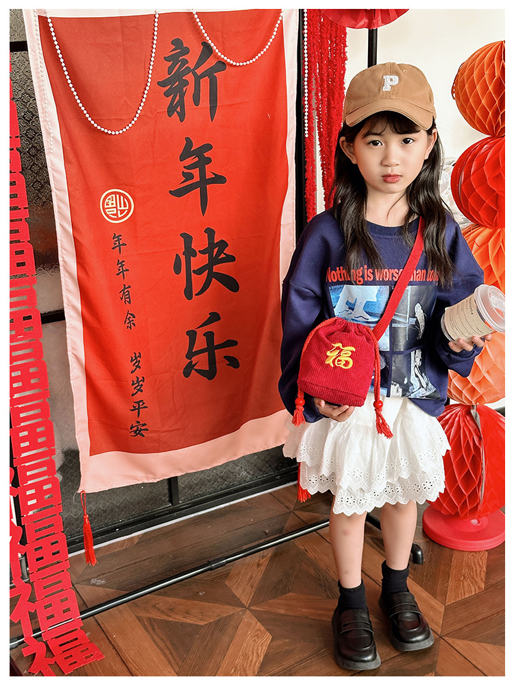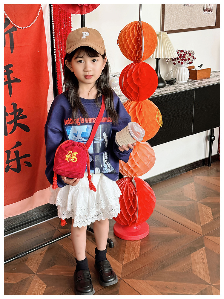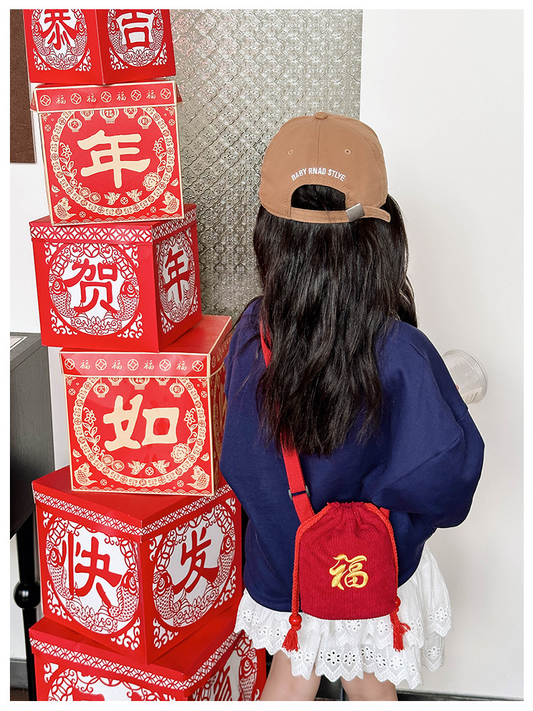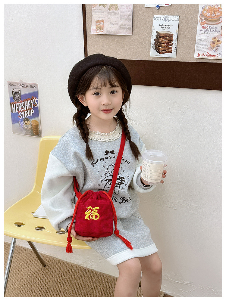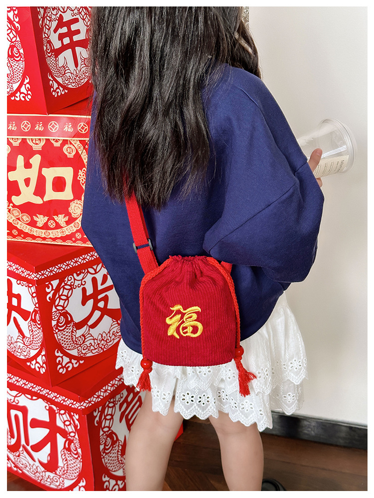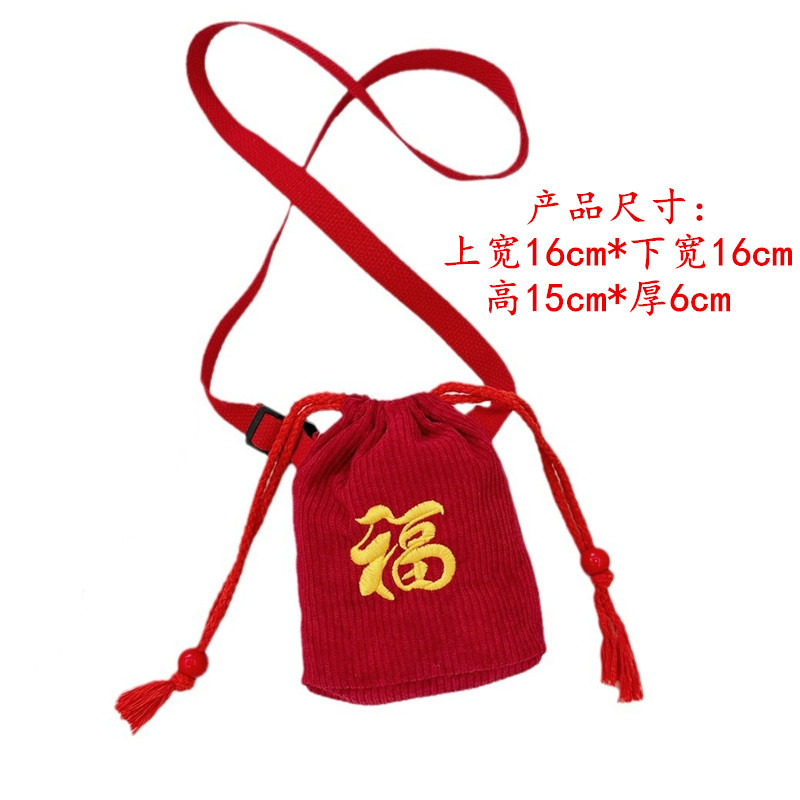 도매 신상 여성용 원숄더 크로스백 레드 드로스트링 새해 동전 지갑 어린이 새해 선물 자수 복주머니