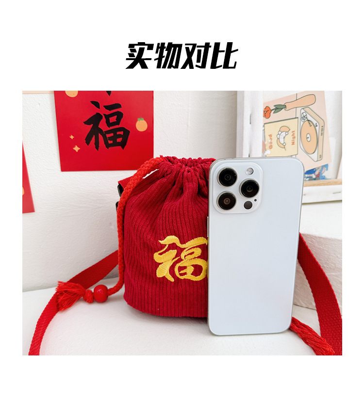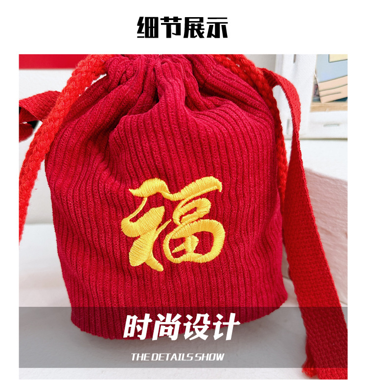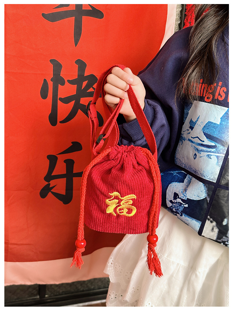 도매 신상 여성용 원숄더 크로스백 레드 드로스트링 새해 동전 지갑 어린이 새해 선물 자수 복주머니스토어 가기
