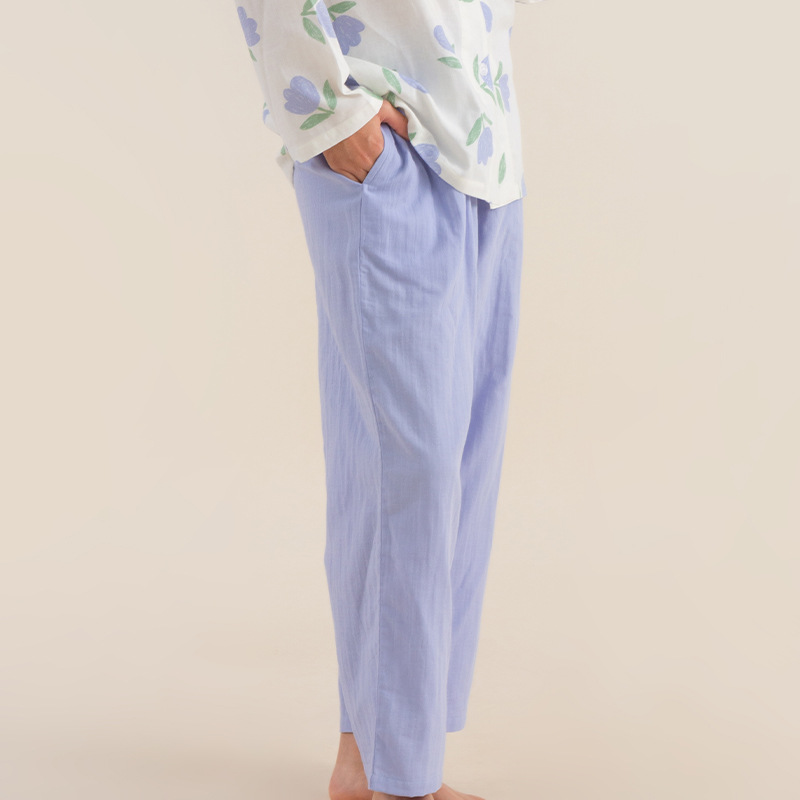 • 블루 퍼플 큰 꽃-긴팔 바지