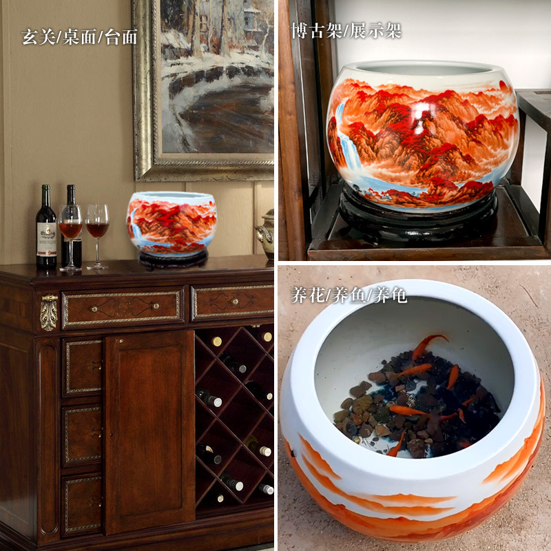 Jingdezhen 세라믹 물고기 탱크 실내 생선 냄비 중국 스타일 장식 풍요의 손으로 두꺼운 태아 몸 꽃을 기르는 거북 냄비스토어 가기