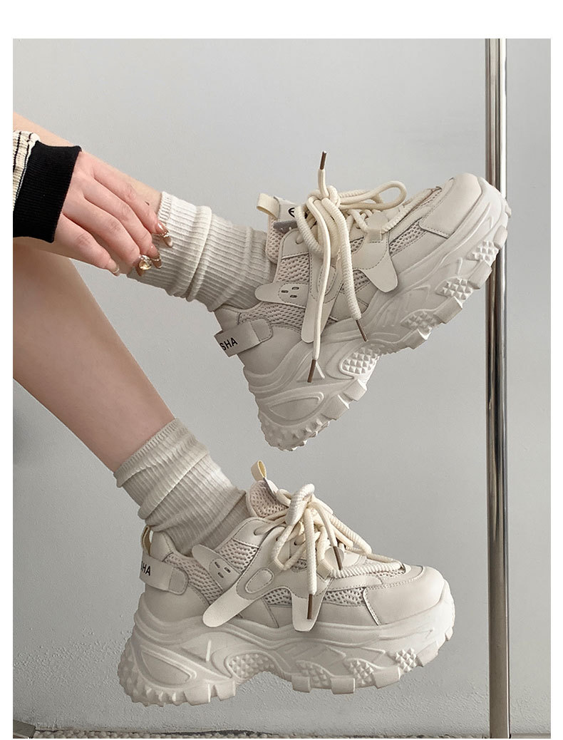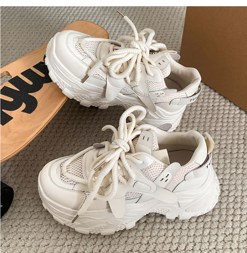 홍콩 스타일 발을 작아 보이게 하는 흰색 두꺼운 밑창 아빠 신발 여성용 2025년 신상 가을 겨울 학생용 레트로 운동화 슬림 효과