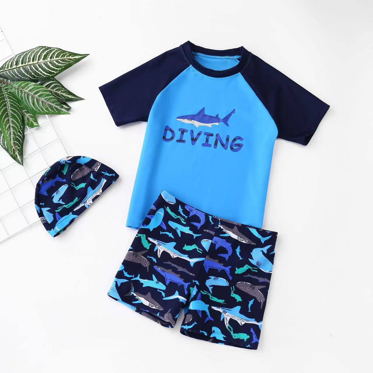 어린이 수영복 소년 전문 아기 수영복 수영 트렁크 상어 분할 태양 보호 매체 및 큰 어린이 온천 수영복스토어 가기
