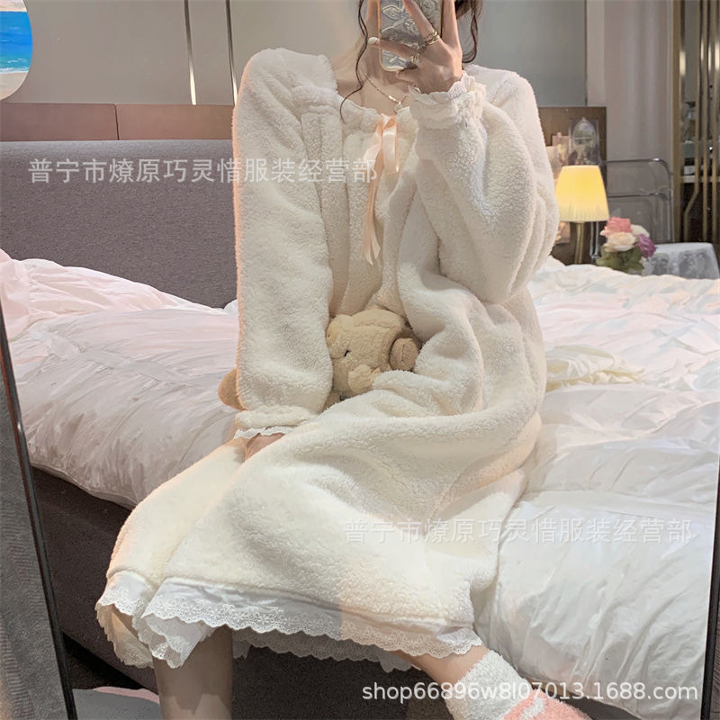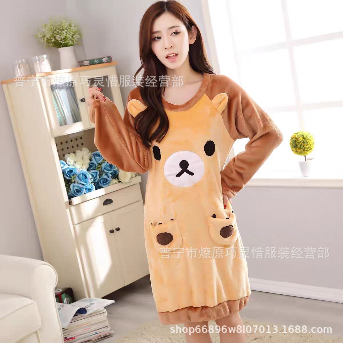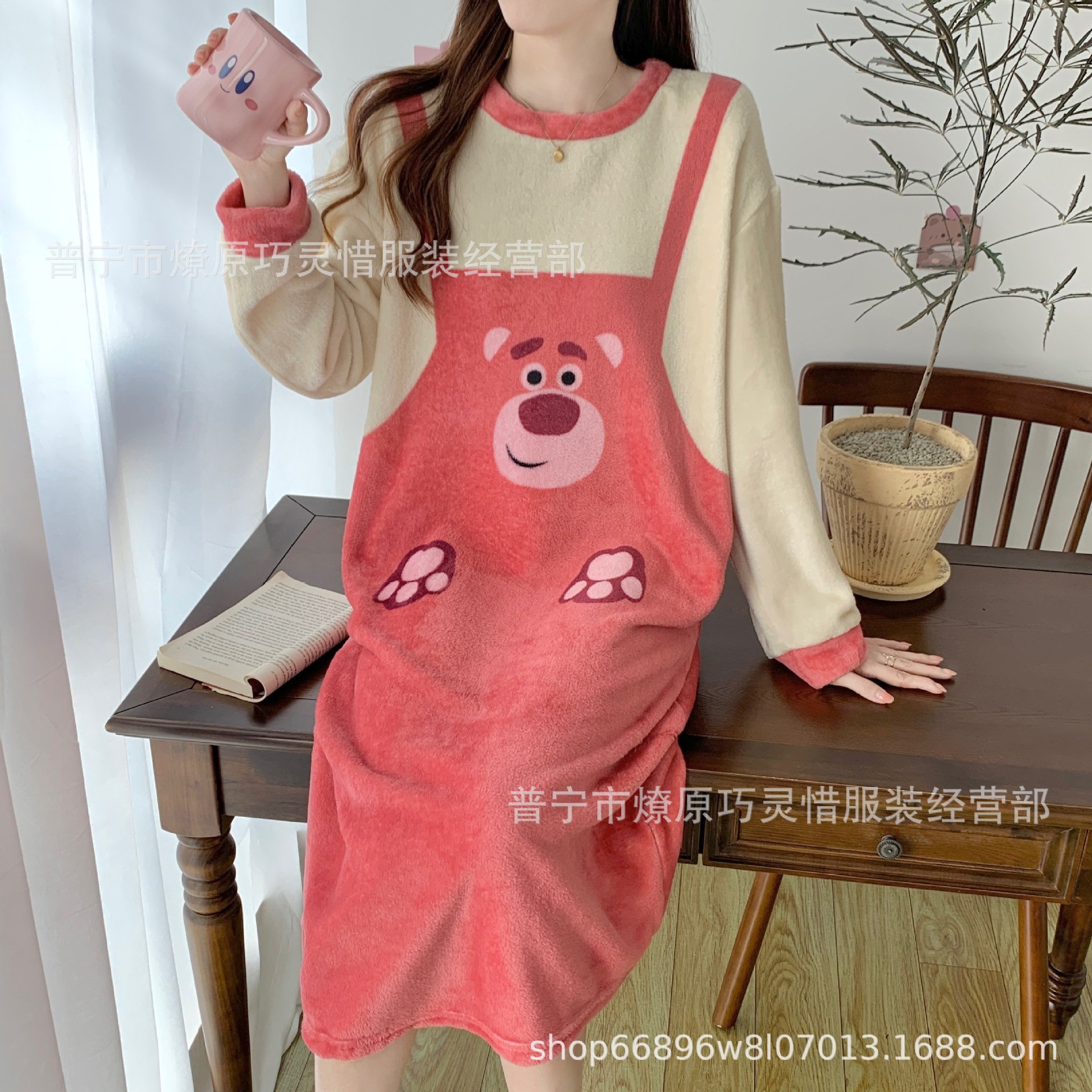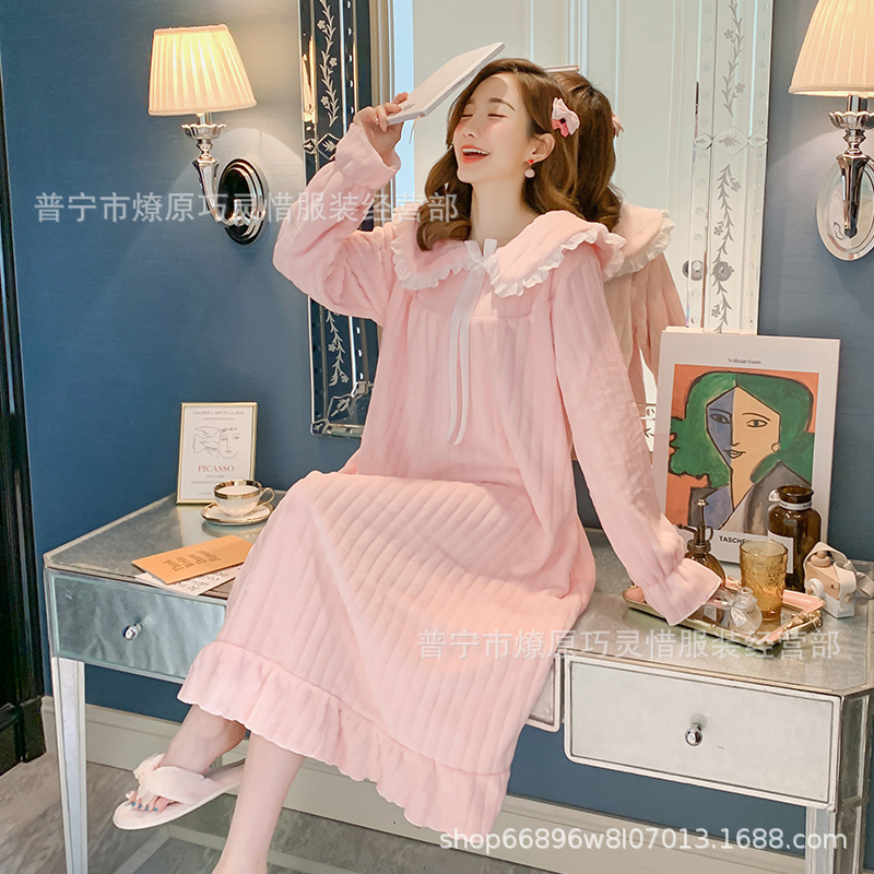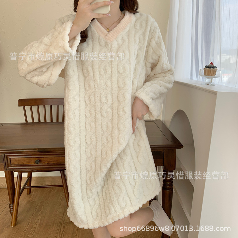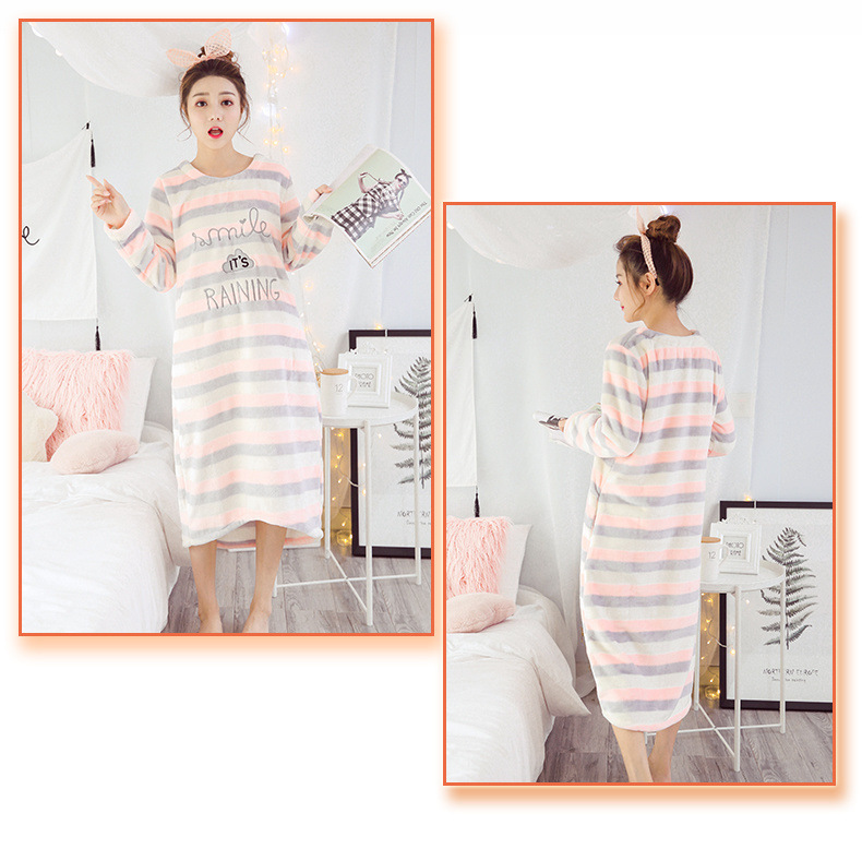 나이트 드레스 여성의 가을과 겨울 플란넬 귀여운 만화 2023 새로운 산호 양털 두꺼운 따뜻한 원피스 홈 웨어스토어 가기