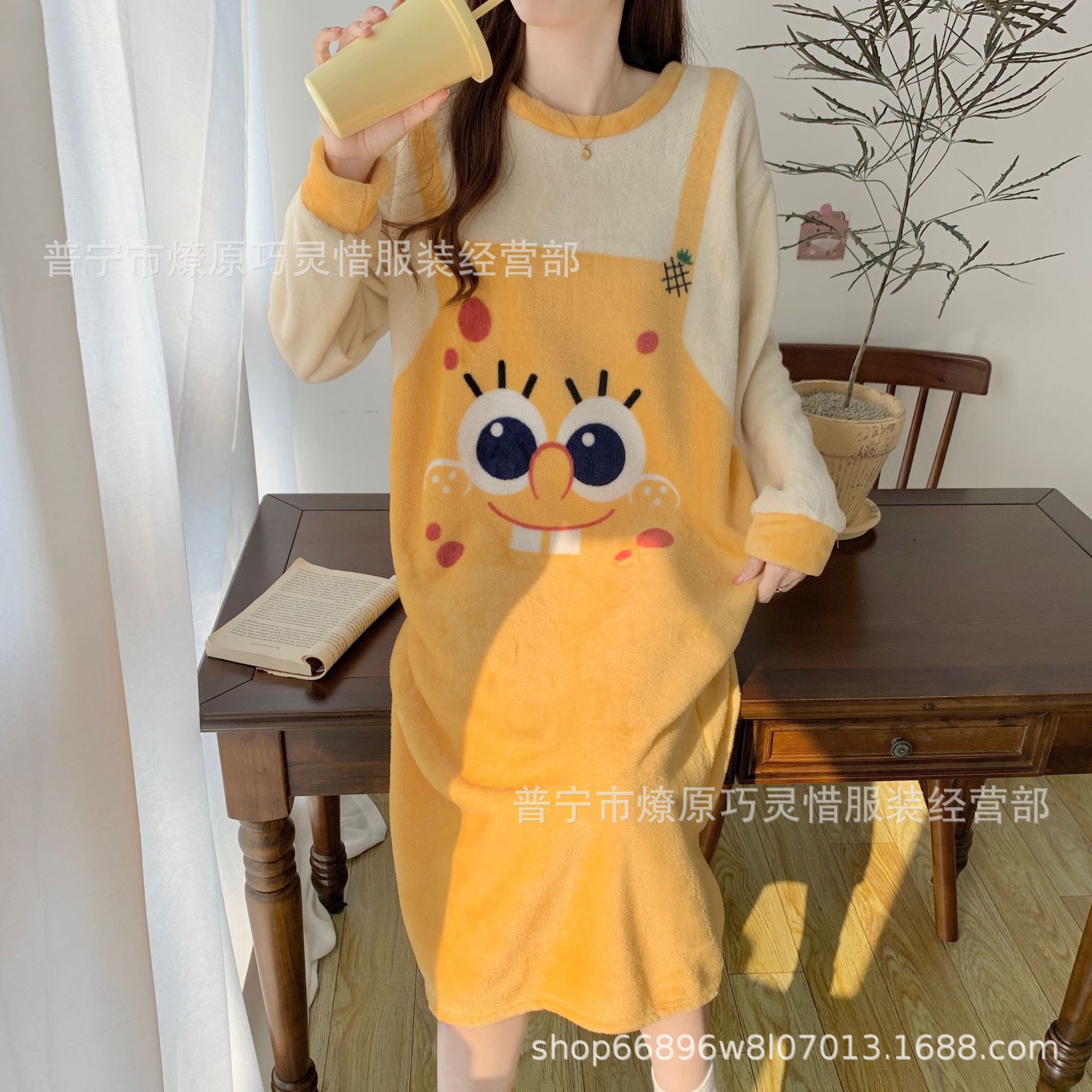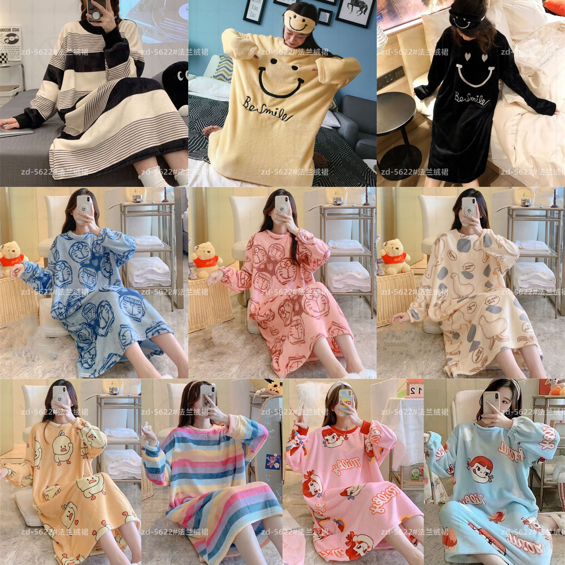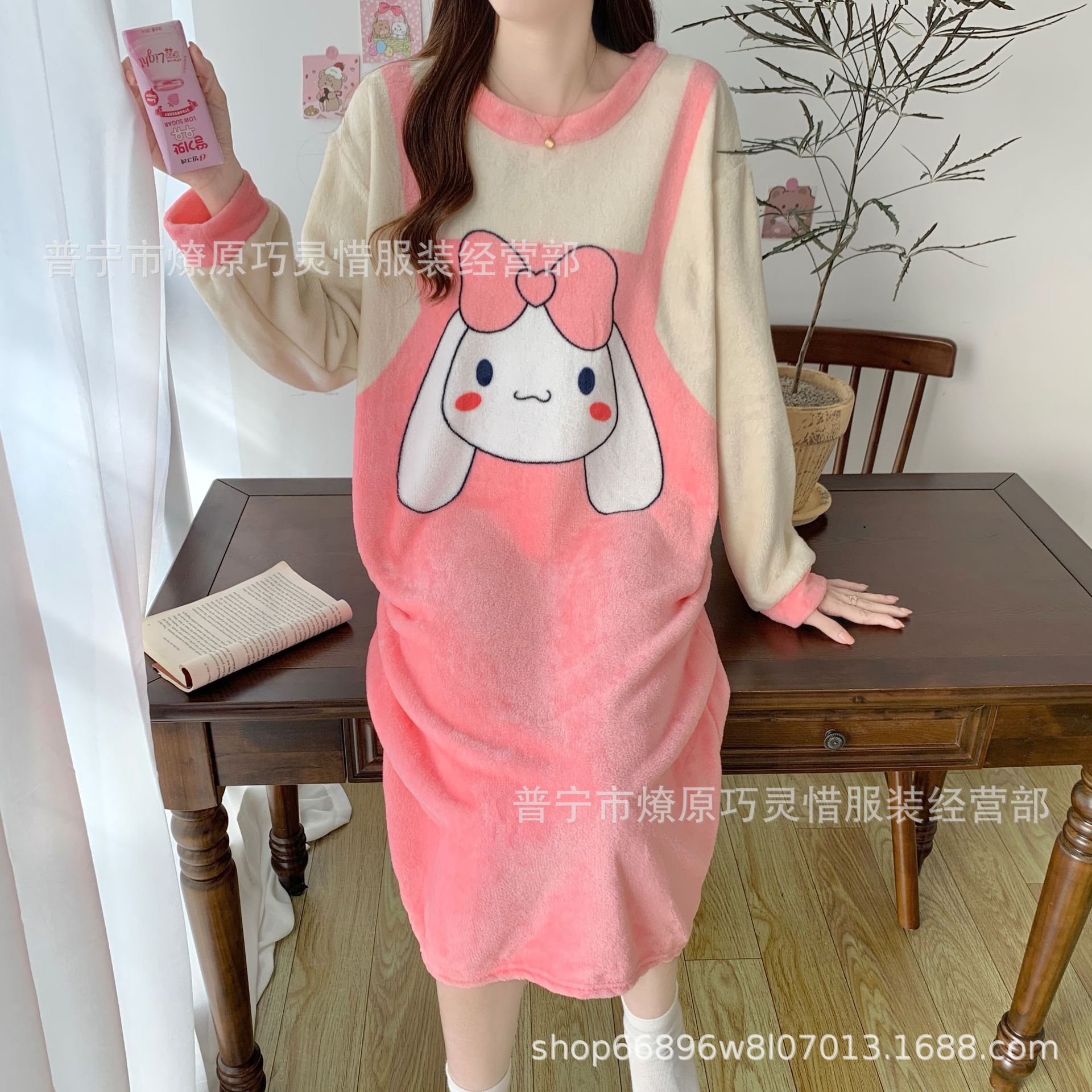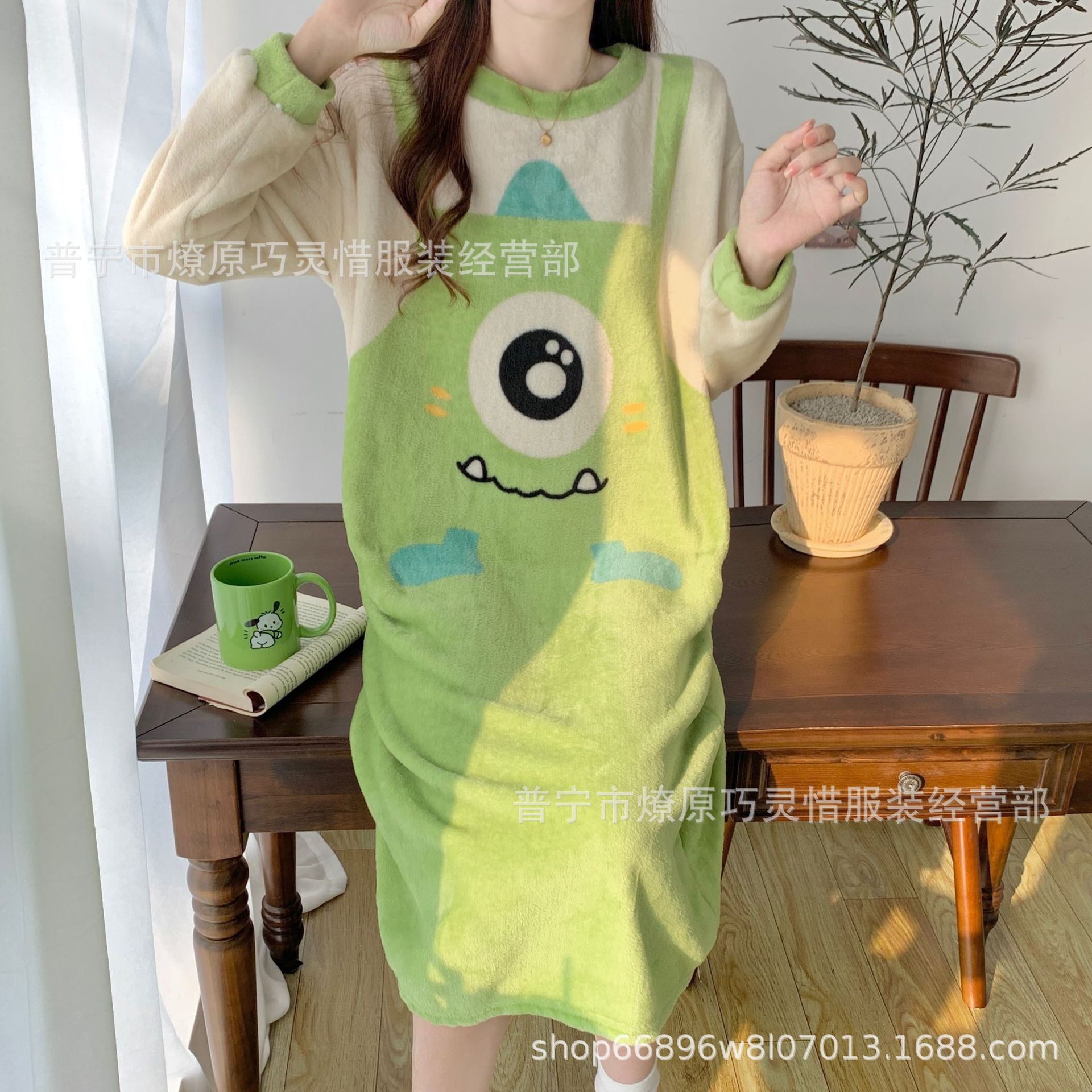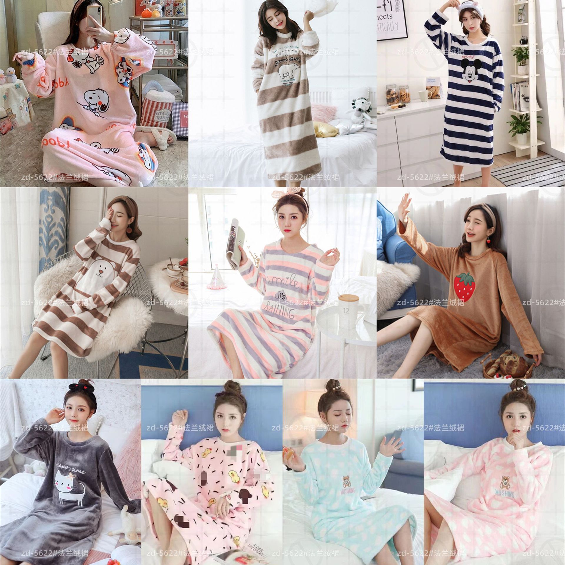 나이트 드레스 여성의 가을과 겨울 플란넬 귀여운 만화 2023 새로운 산호 양털 두꺼운 따뜻한 원피스 홈 웨어스토어 가기