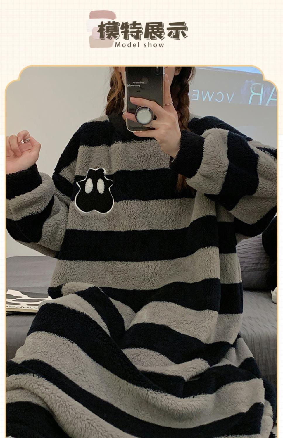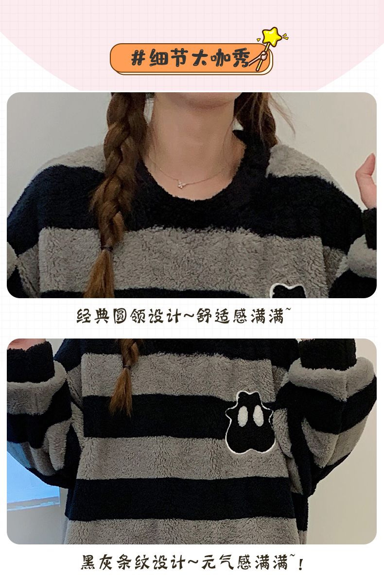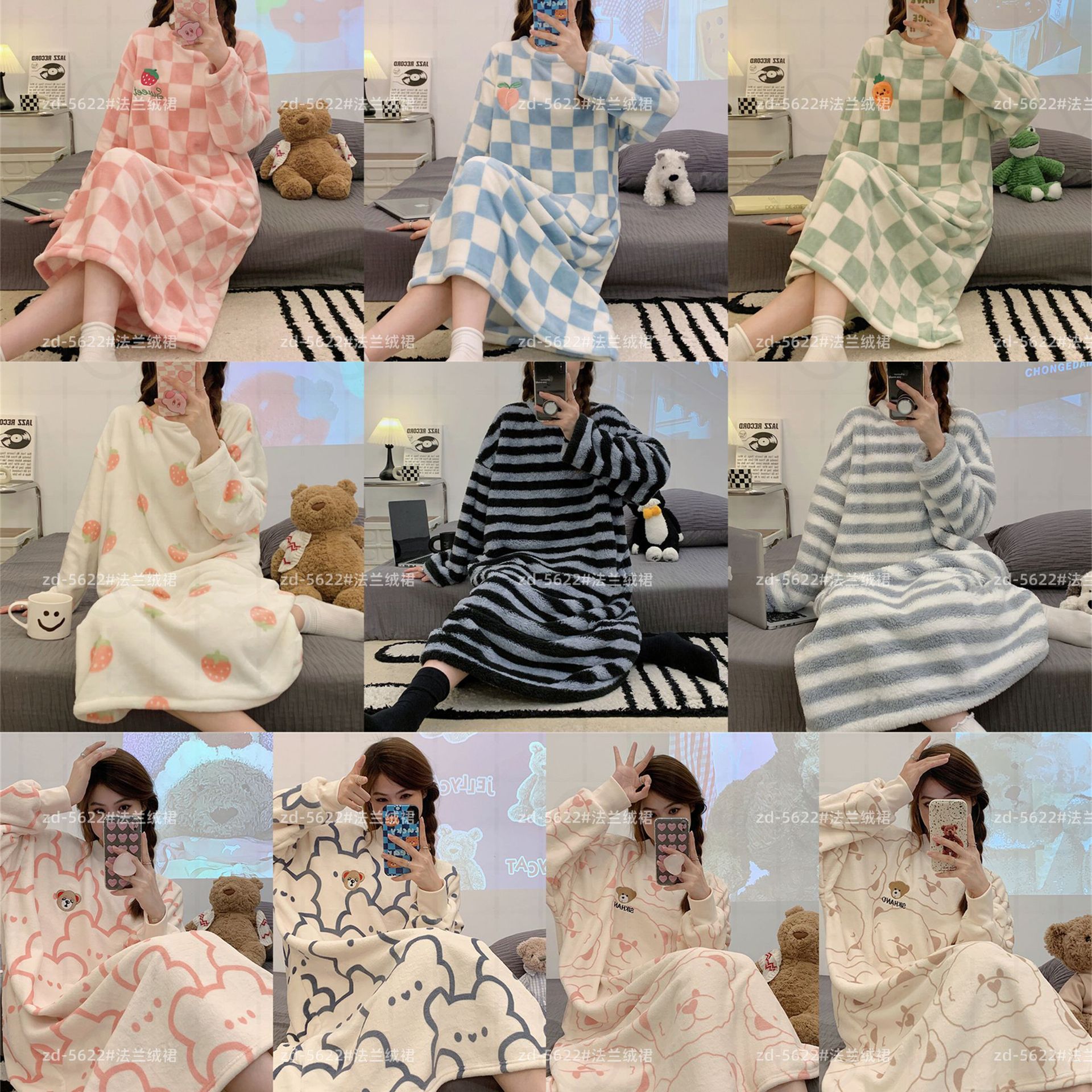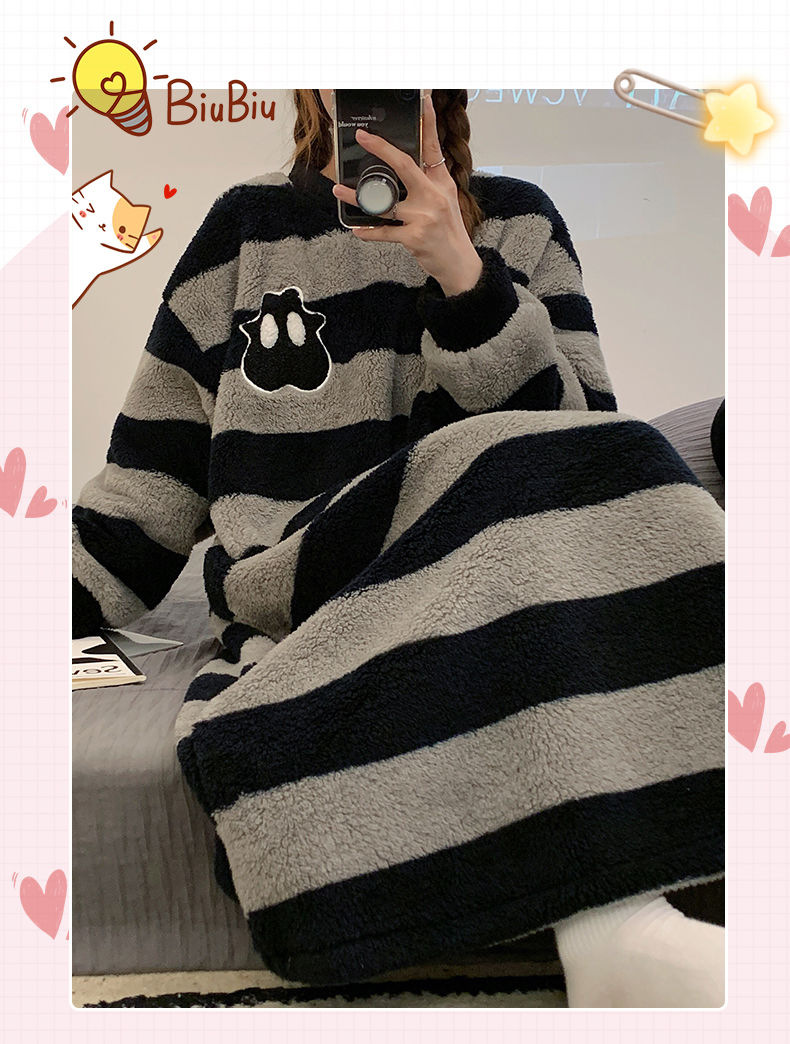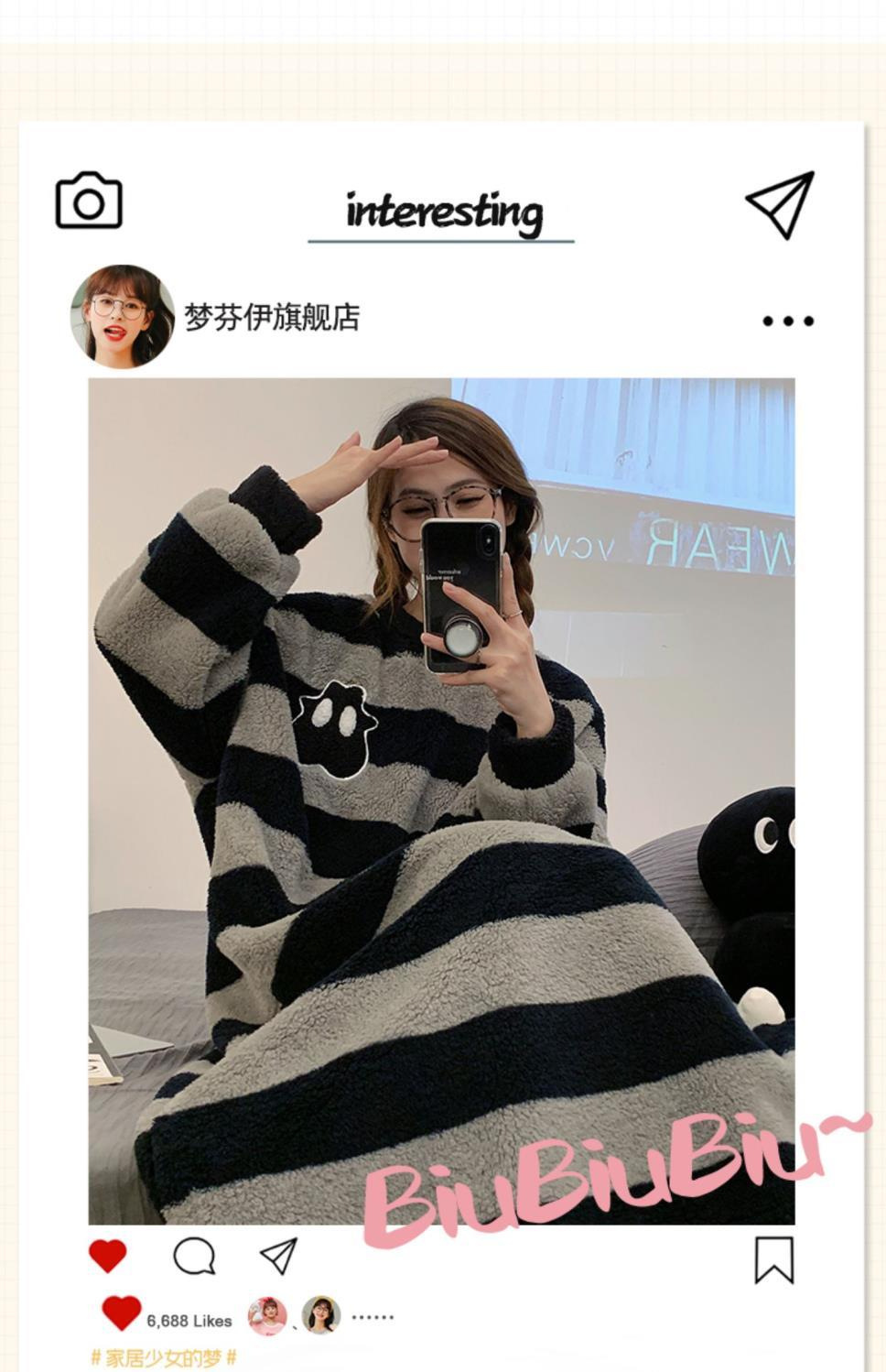 나이트 드레스 여성의 가을과 겨울 플란넬 귀여운 만화 2023 새로운 산호 양털 두꺼운 따뜻한 원피스 홈 웨어스토어 가기