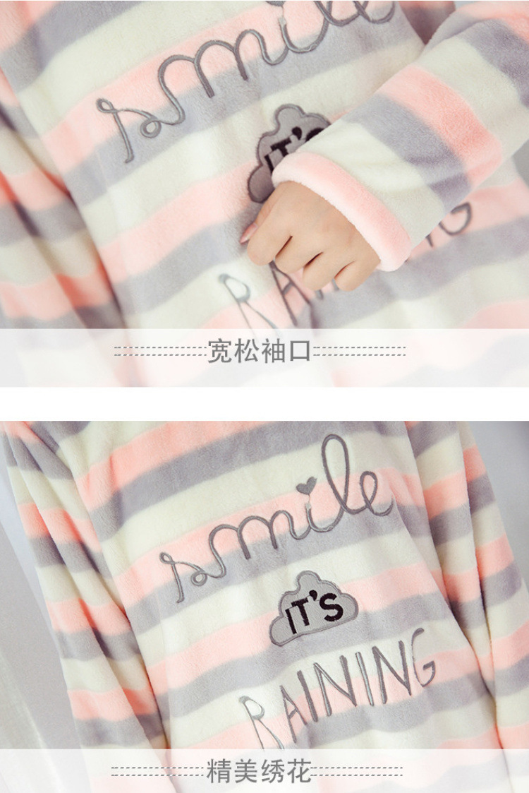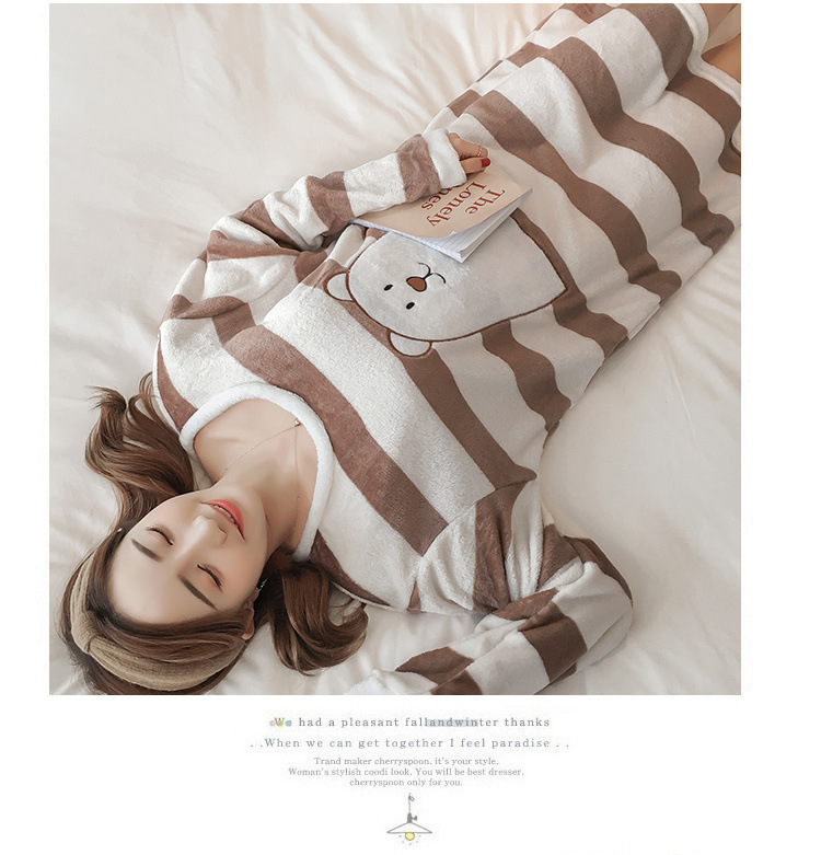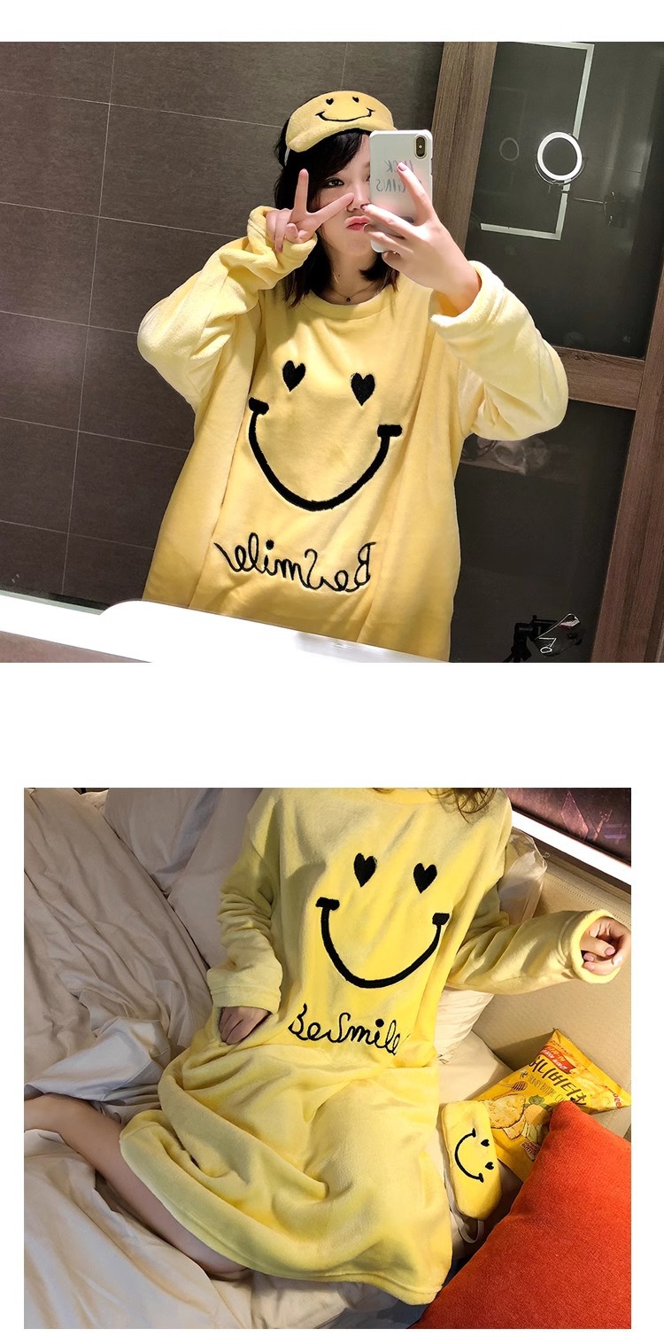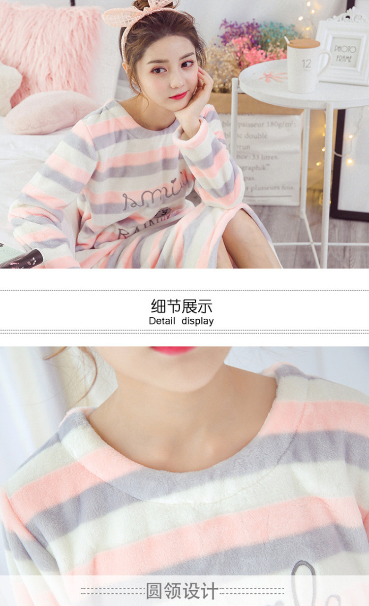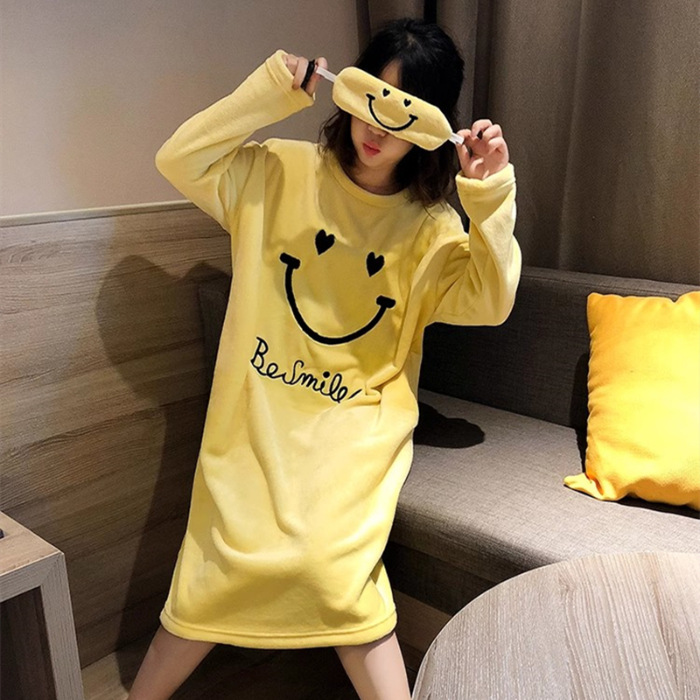 나이트 드레스 여성의 가을과 겨울 플란넬 귀여운 만화 2023 새로운 산호 양털 두꺼운 따뜻한 원피스 홈 웨어