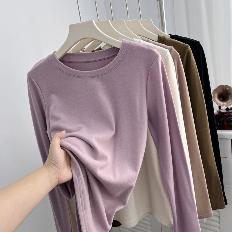 아울렛 ~ 클리어런스 캐비닛 여성용 두꺼운 둥근 목 바닥 셔츠 가을과 겨울 새로운 부드러운 긴 소매 티셔츠 탑