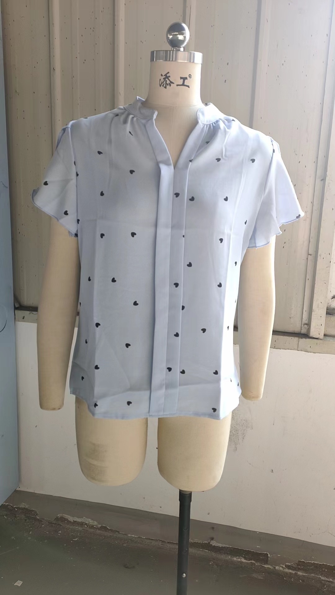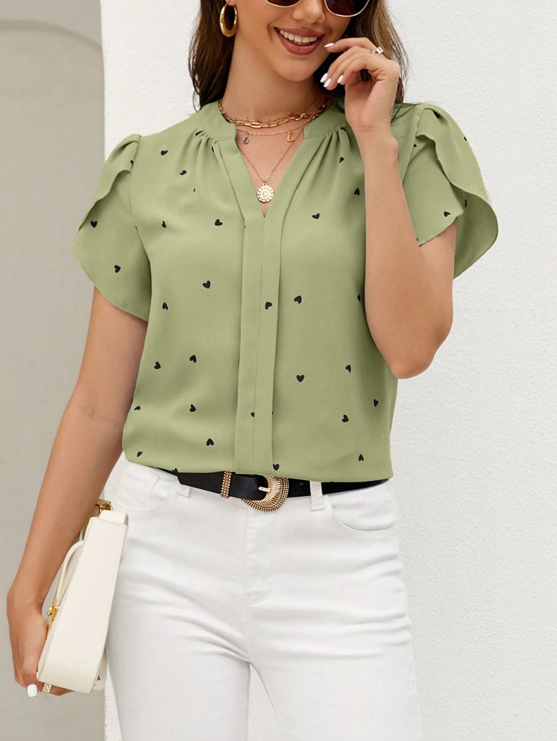 Amazon tiktoktemu 유럽과 미국 의류 2025 여름 v 넥 러브 꽃잎 슬리브 셔츠 기질 여성상의스토어 가기