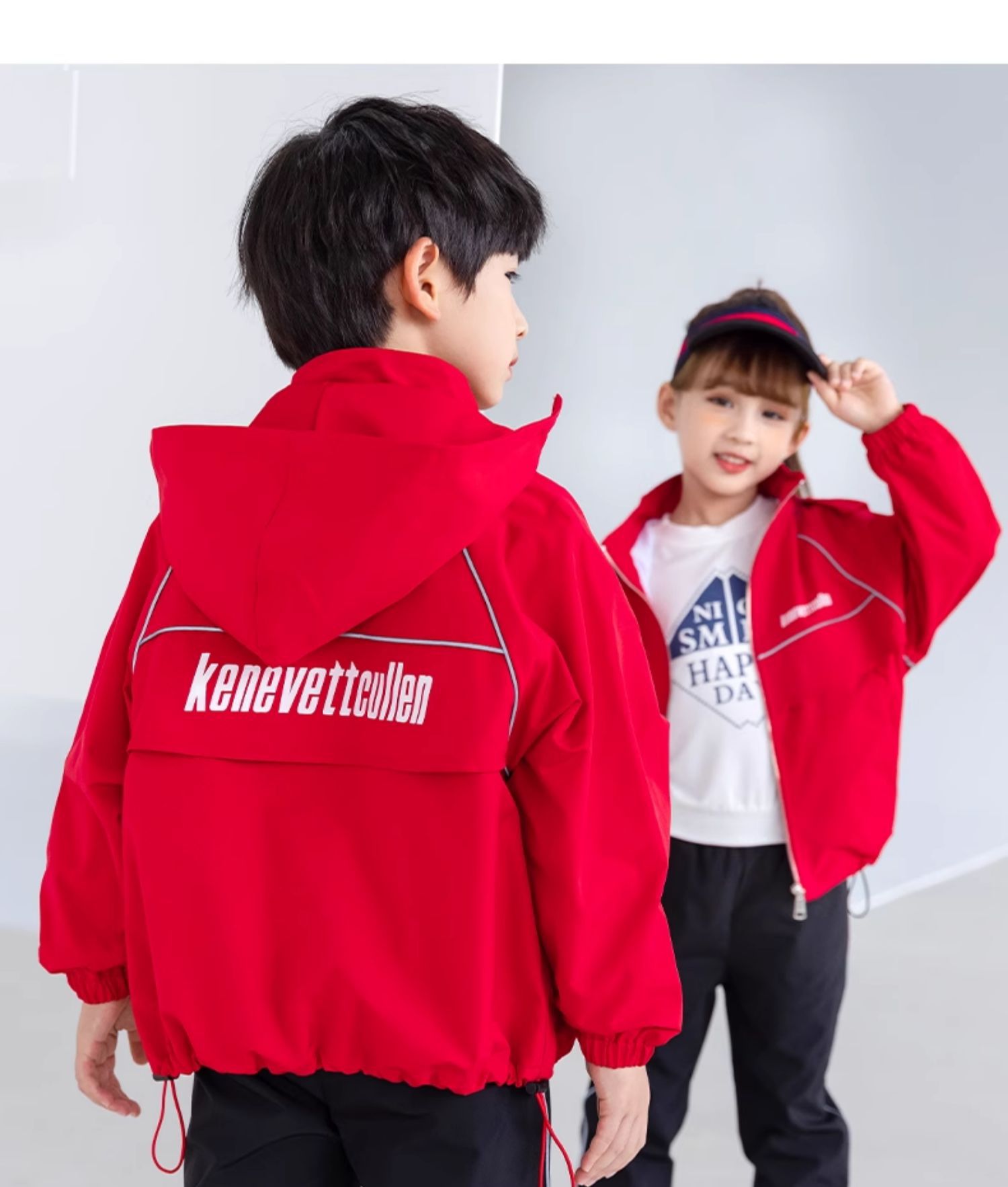 중형 및 대형 소년 재킷 봄 방풍 아동용 트렌치 코트 2024 레드 후드 미디어와 대형 어린이 재킷 소년 재킷스토어 가기