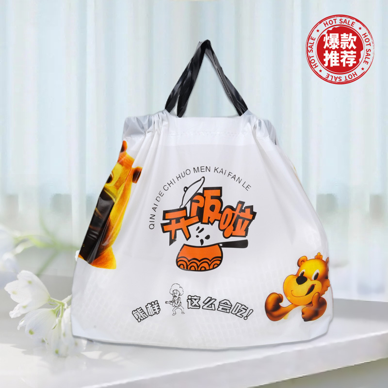 스팟 테이크 아웃 포장 가방 케이터링 드로 스트링 일회용 테이크 아웃 가방 프라이드 치킨 라이트 푸드 테이크 아웃 가방 도매스토어 가기