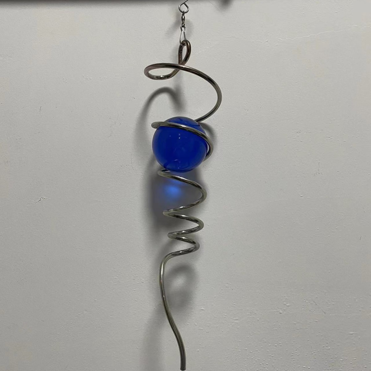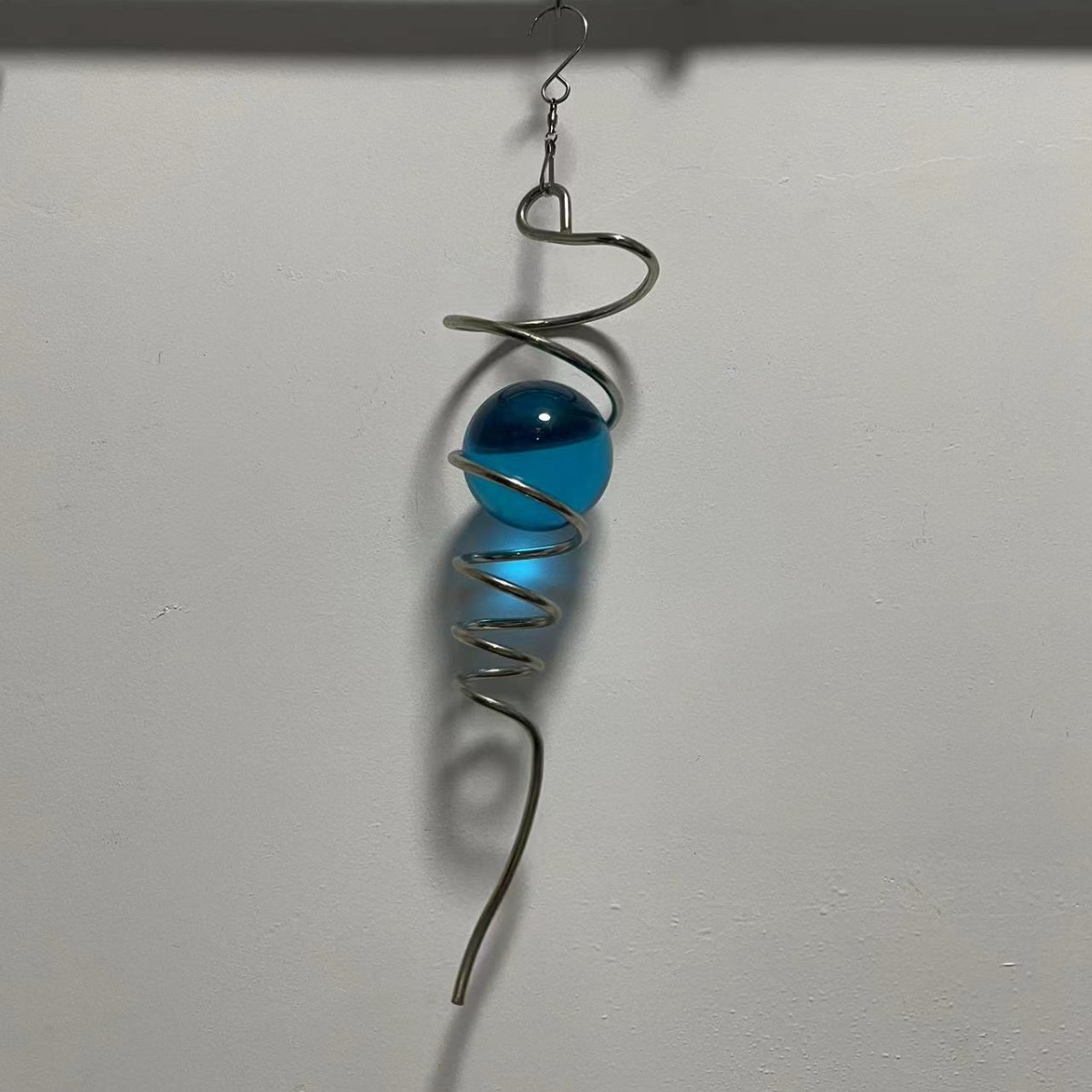 Spinart 회전 바람 차임 스테인레스 스틸 전기 도금 크리스탈 유리 볼 펜던트 12 인치 나선형 꼬리 바람 소용돌이 꼬리