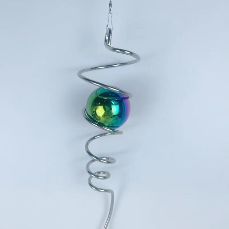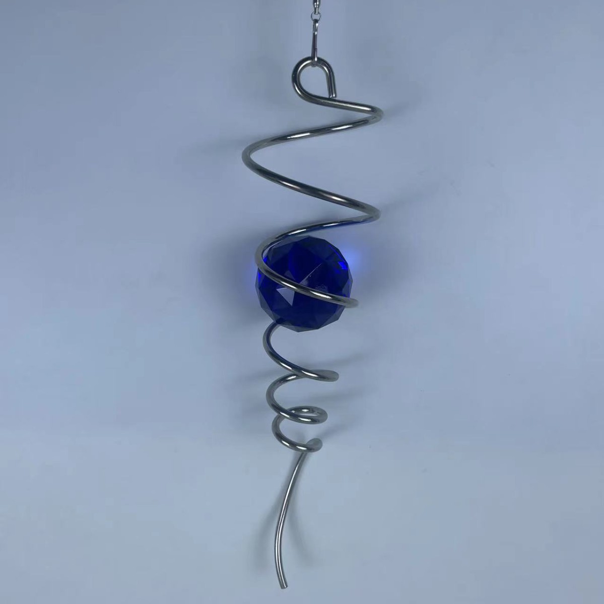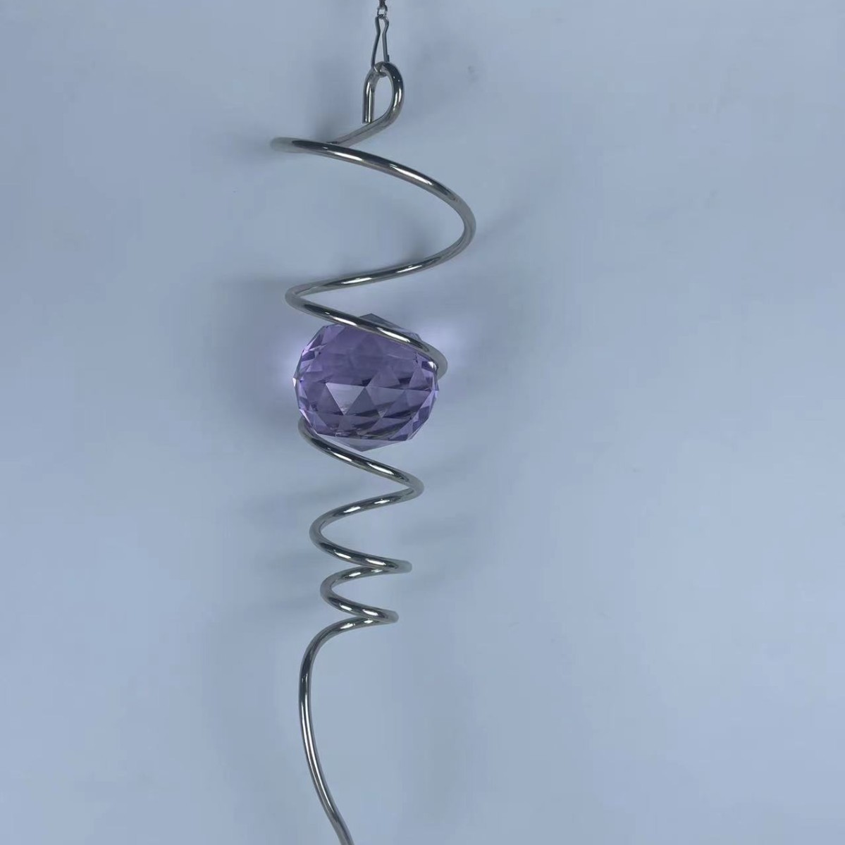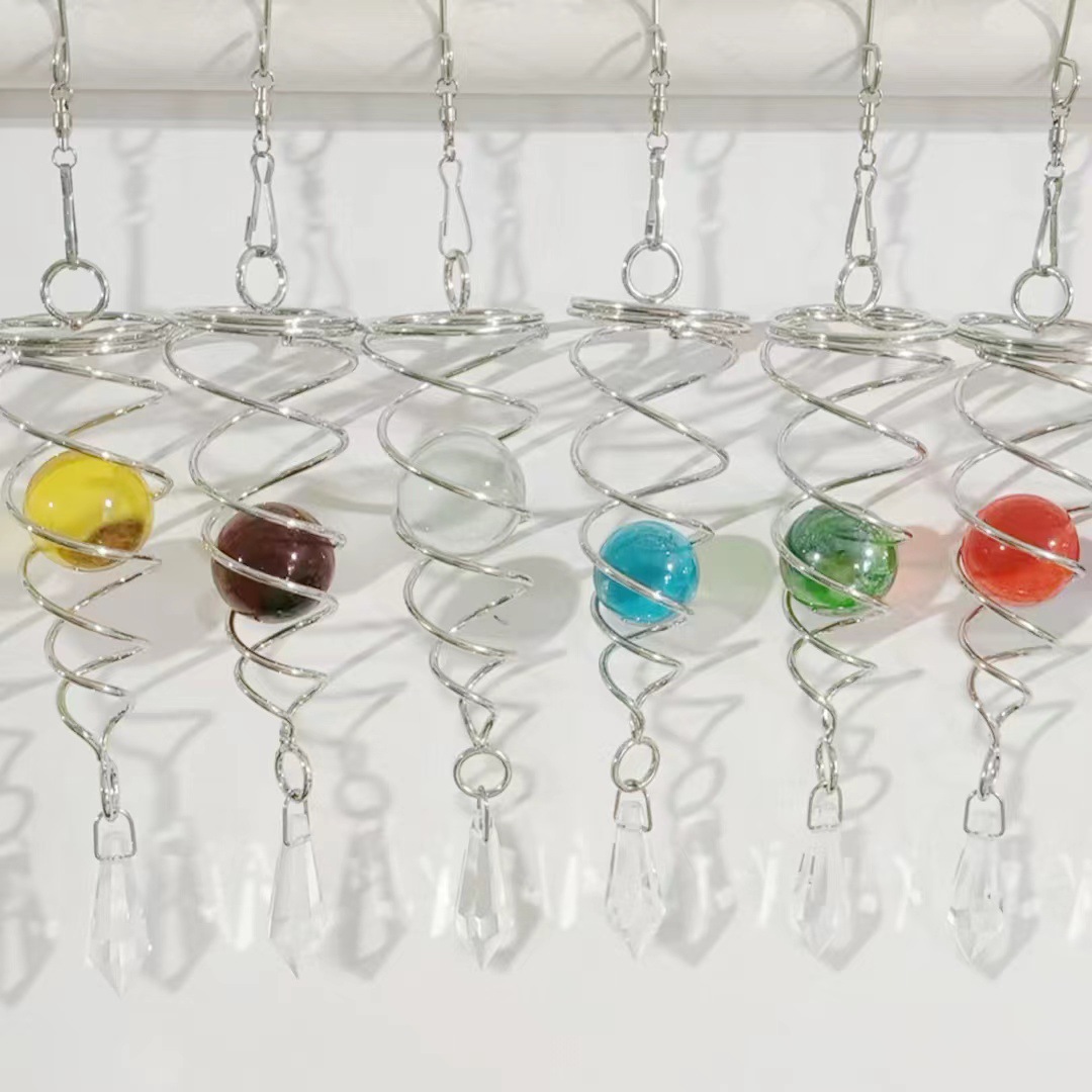 Spinart 회전 바람 차임 스테인레스 스틸 전기 도금 크리스탈 유리 볼 펜던트 12 인치 나선형 꼬리 바람 소용돌이 꼬리스토어 가기