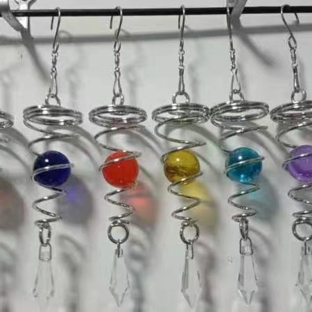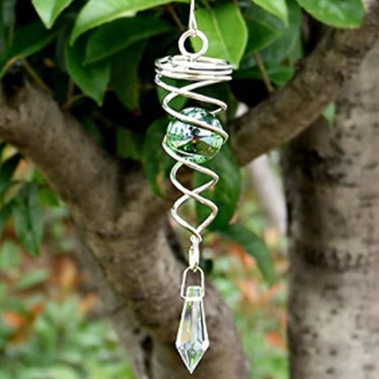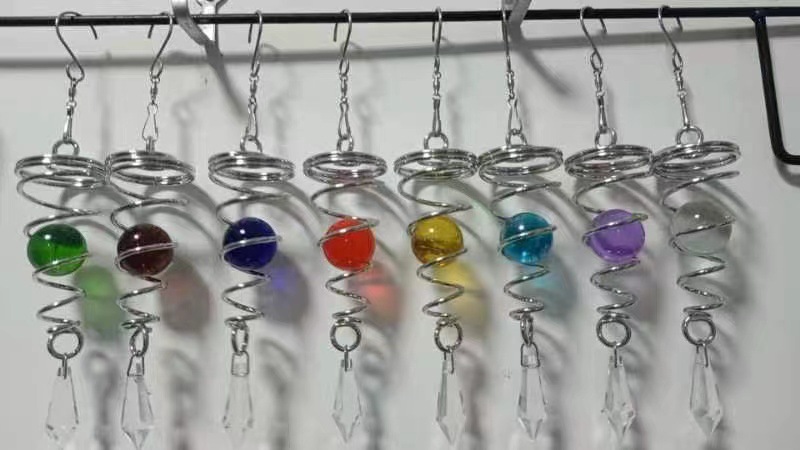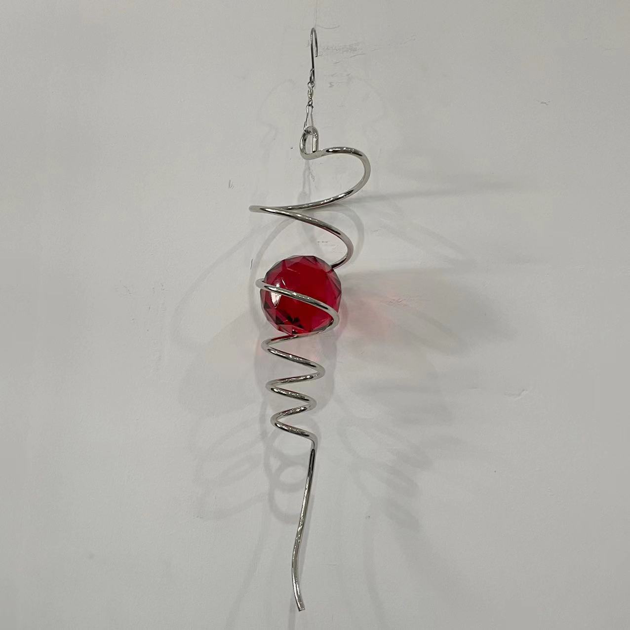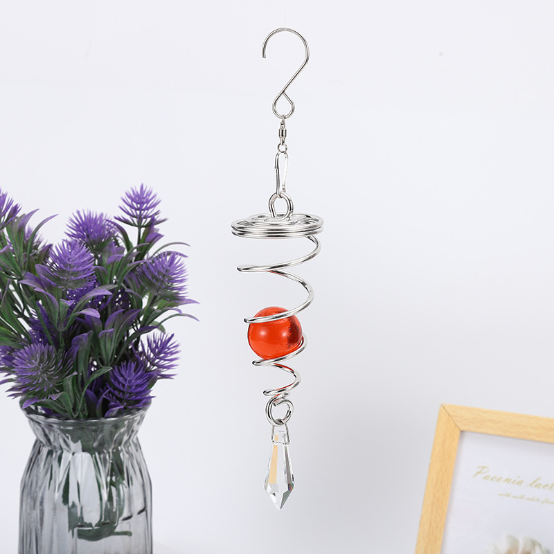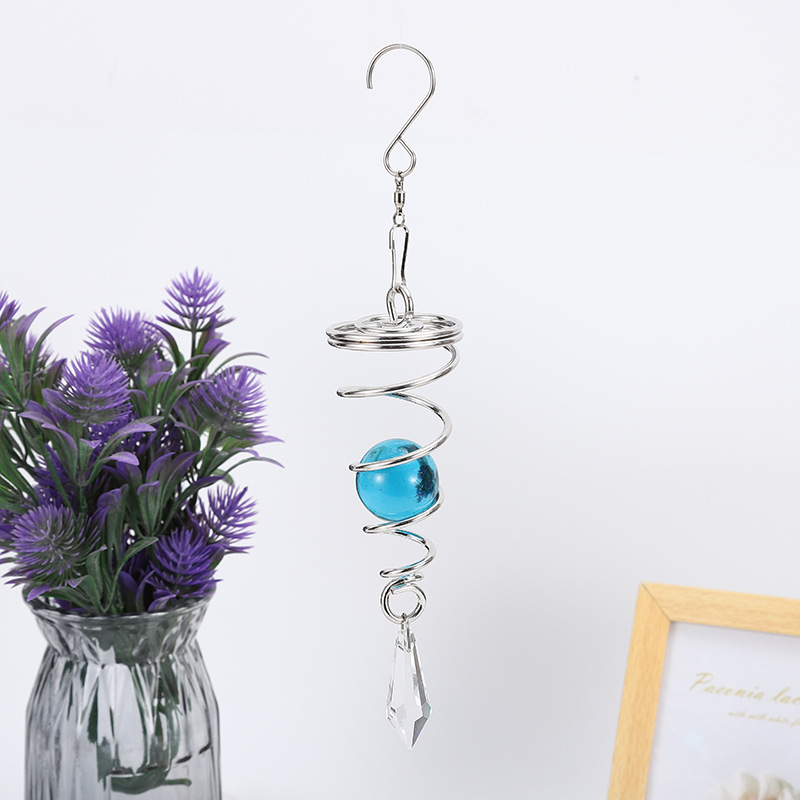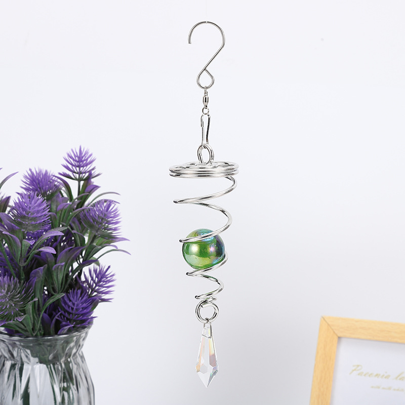 Spinart 회전 바람 차임 스테인레스 스틸 전기 도금 크리스탈 유리 볼 펜던트 12 인치 나선형 꼬리 바람 소용돌이 꼬리스토어 가기