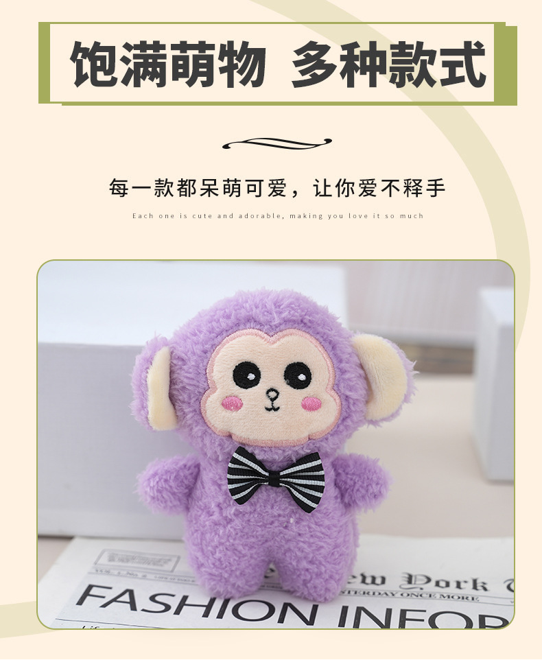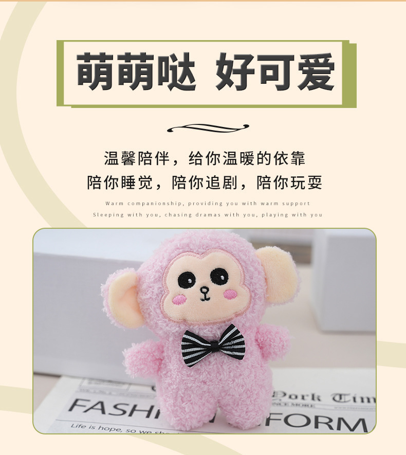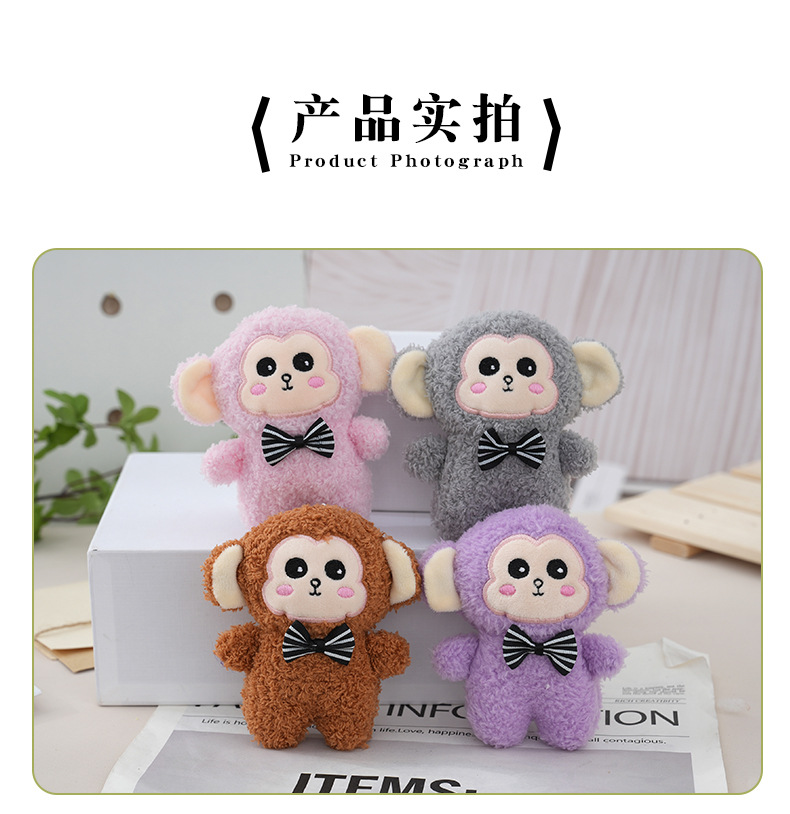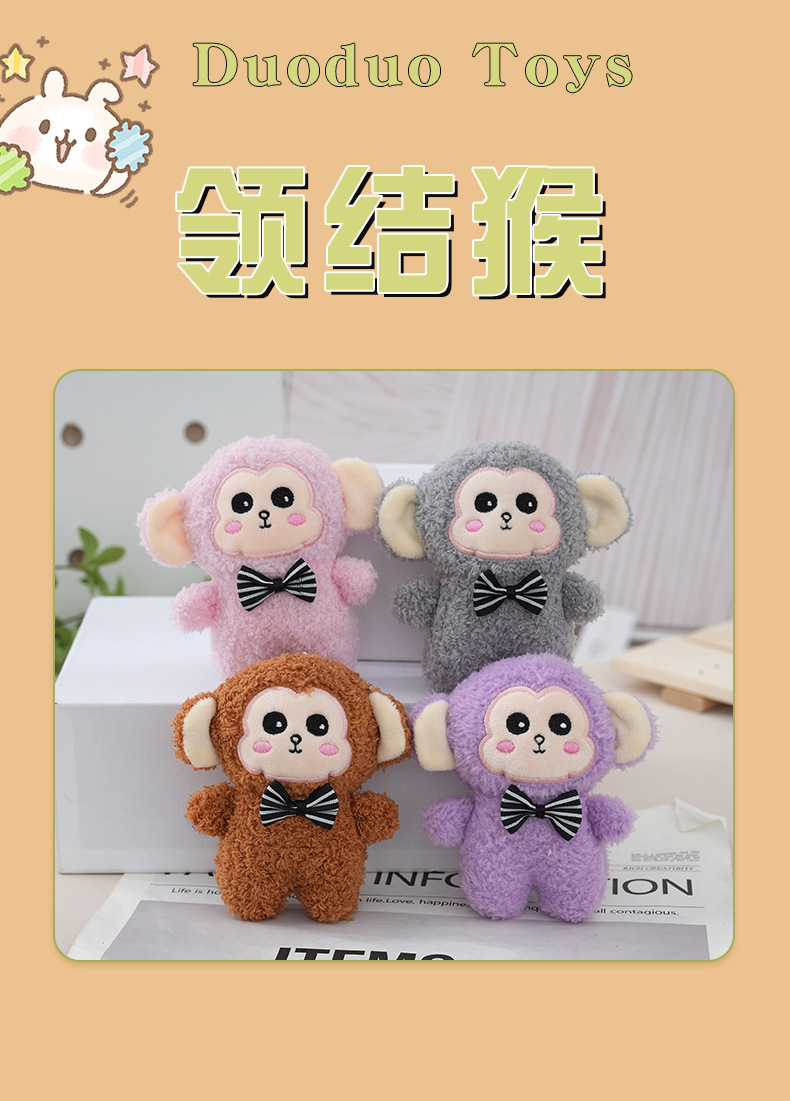 귀엽고 사랑스러운 작은 원숭이 인형, 넥타이를 쓴 작은 원숭이 봉제 인형 열쇠고리 장식품, 뽑기 인형 도매스토어 가기