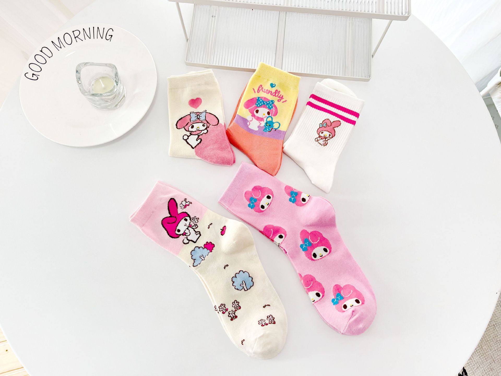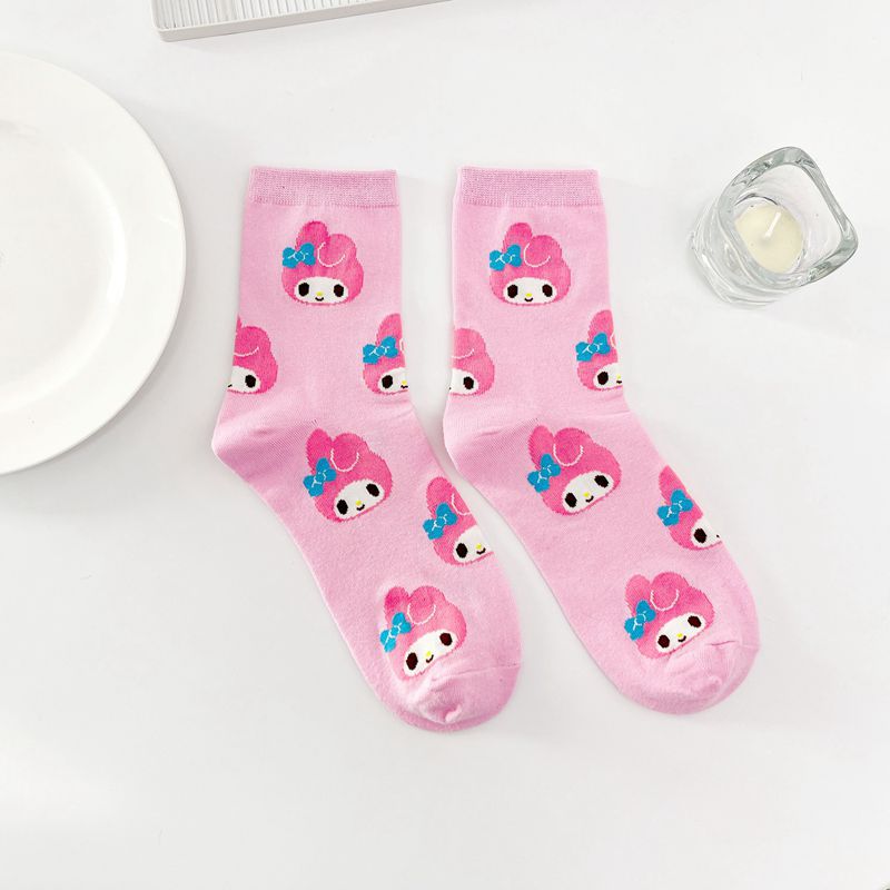 일본 만화 양말 여성의 핑크 빗질면 중간 송아지 양말 귀여운 토끼 스타킹 원피스 배달스토어 가기