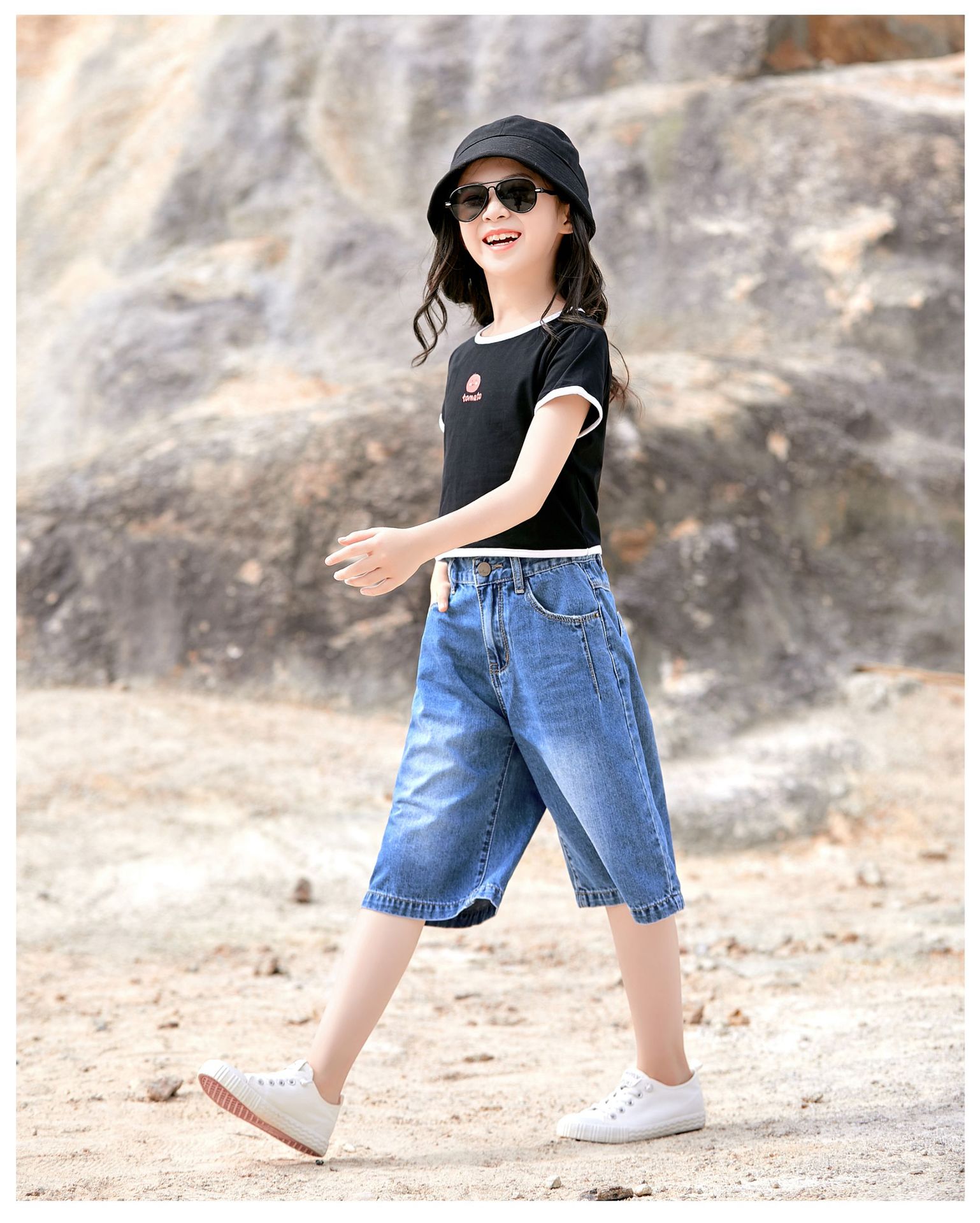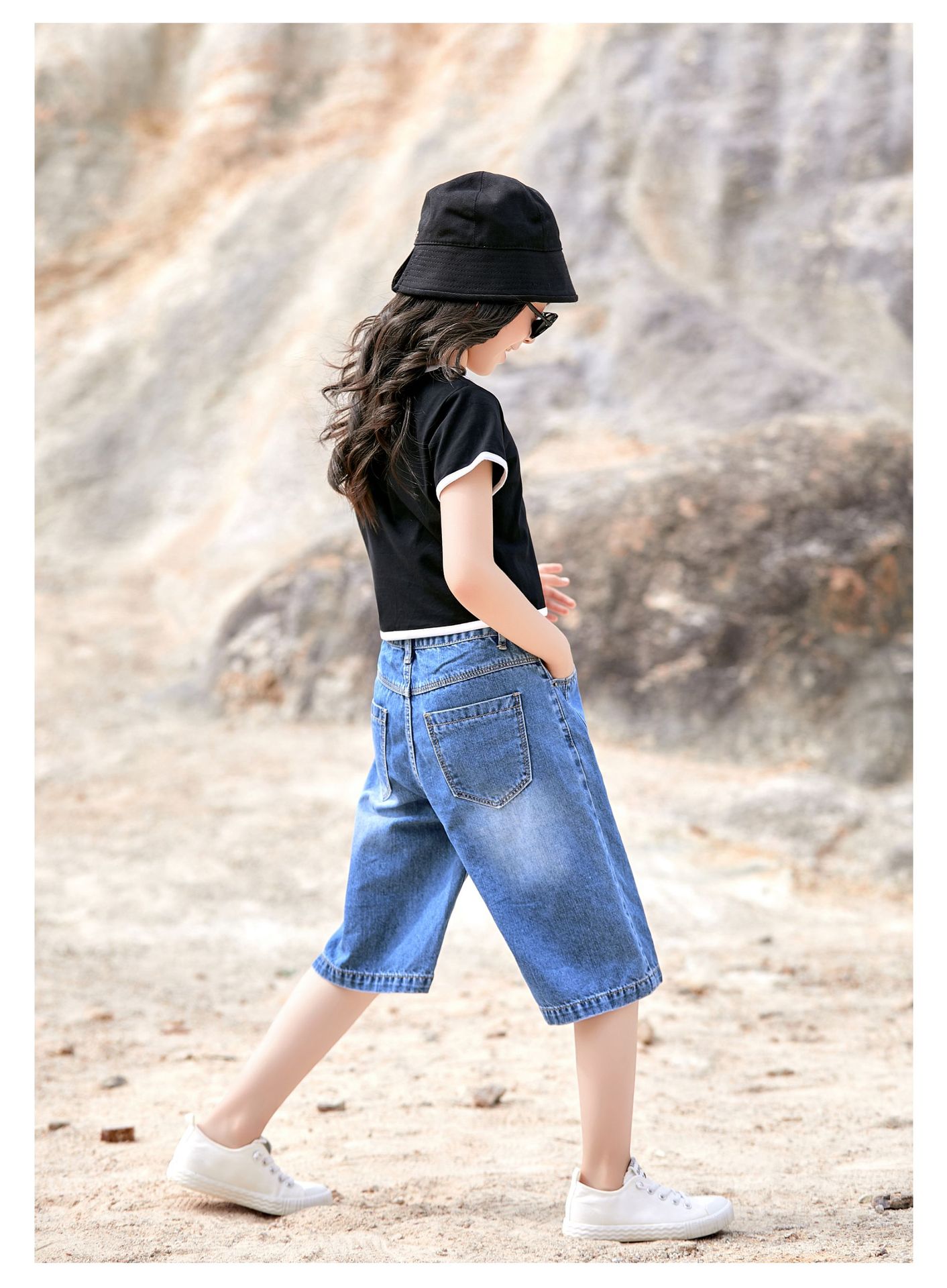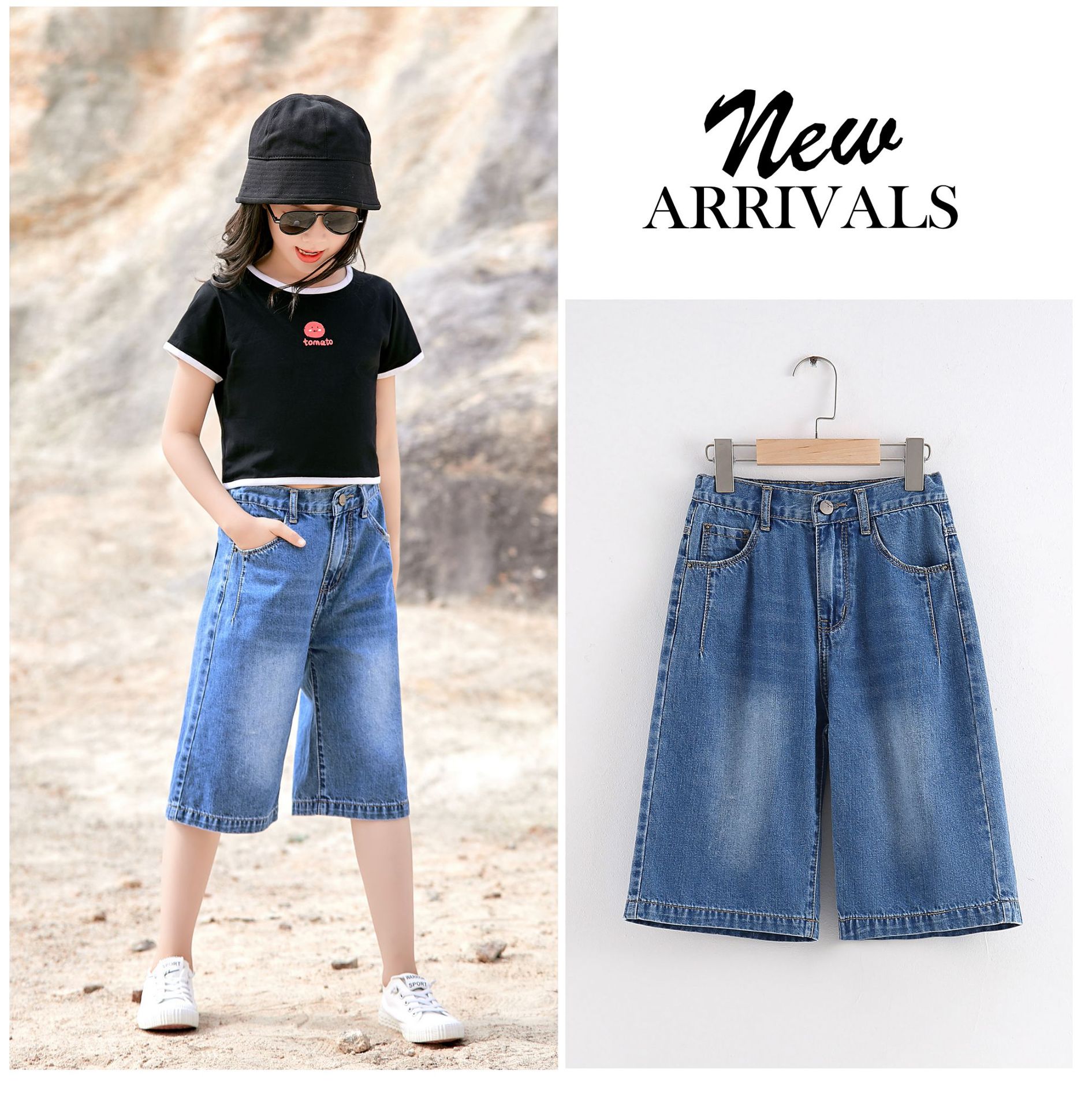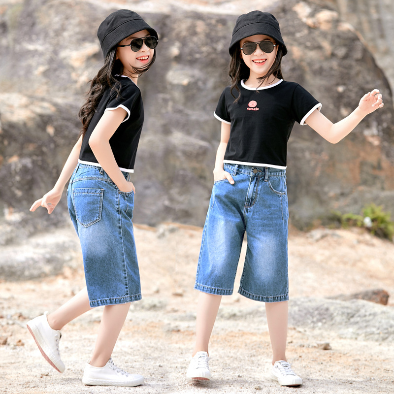 여자 데님 반바지 2024 여름 겉옷 5 점 바지 얇은 올매치 어린이 반바지 서양식 걸스 와이드 레그 바지스토어 가기