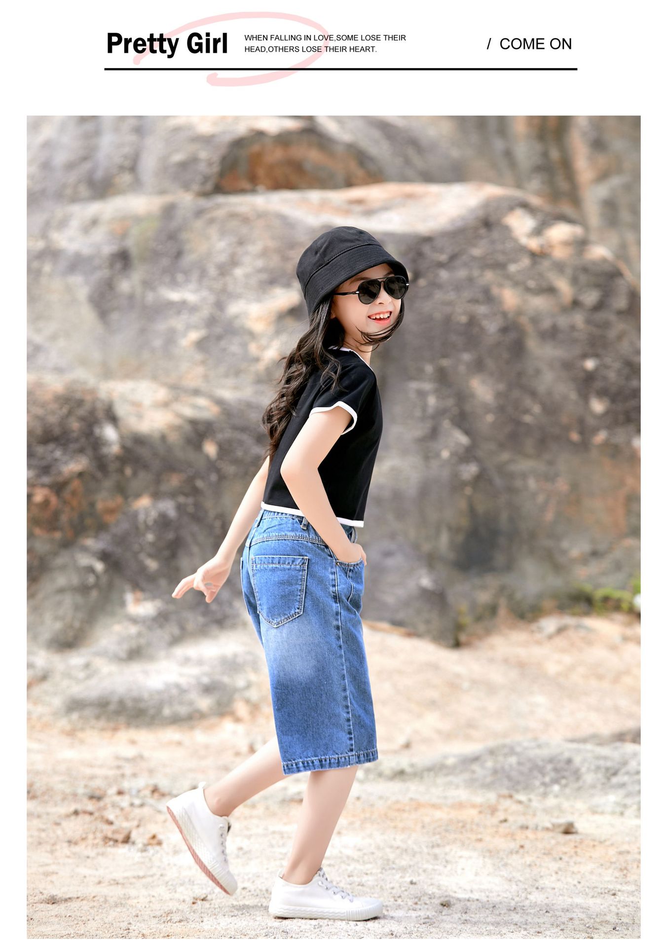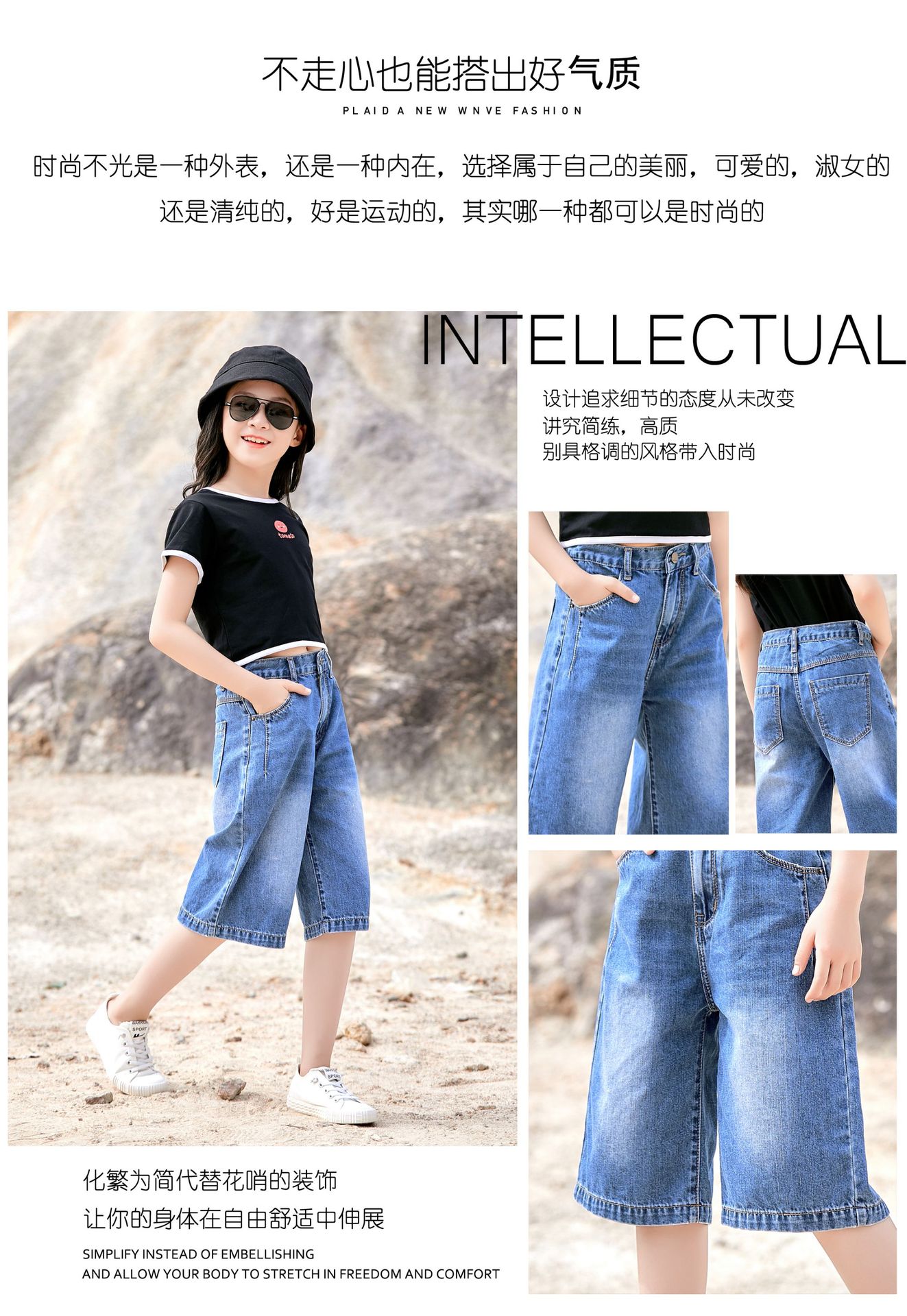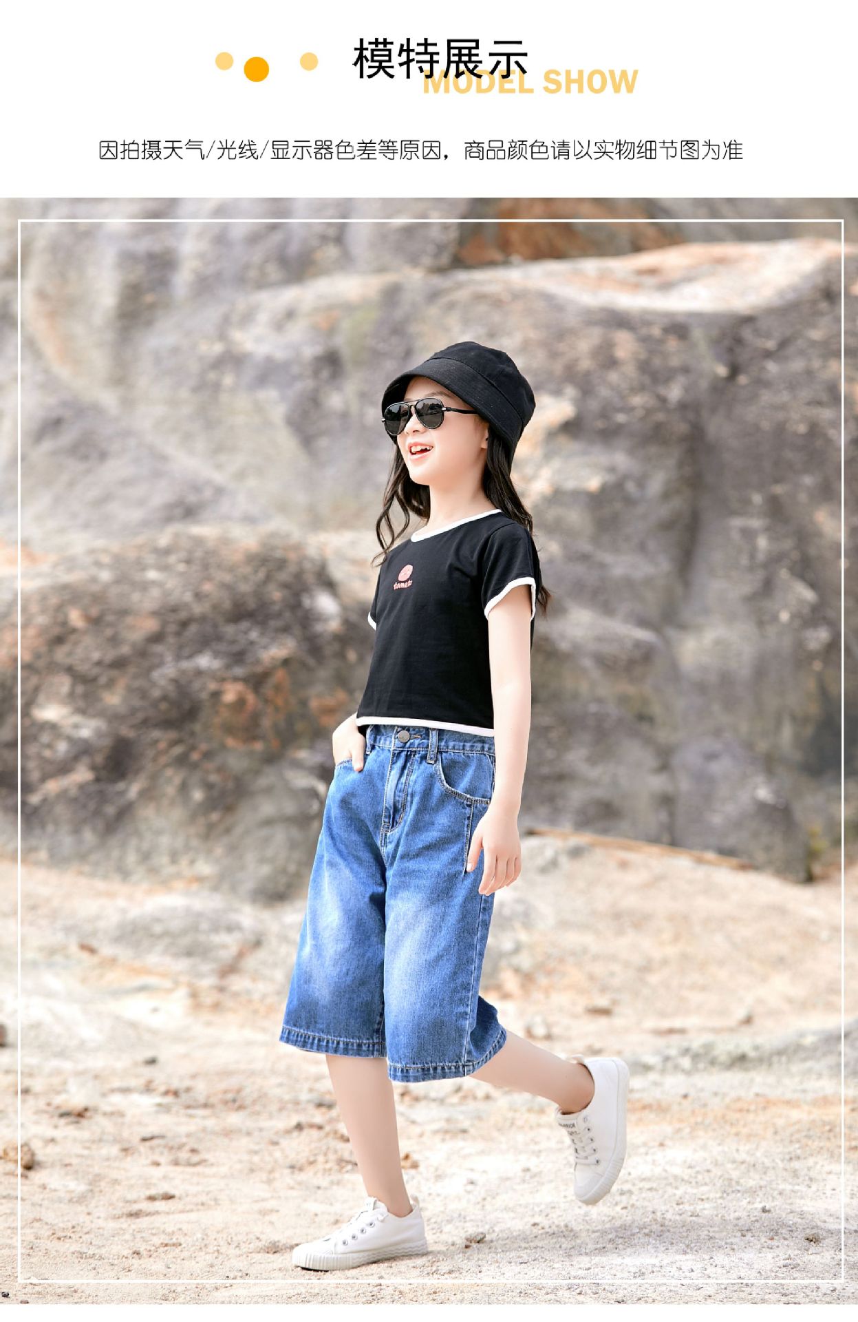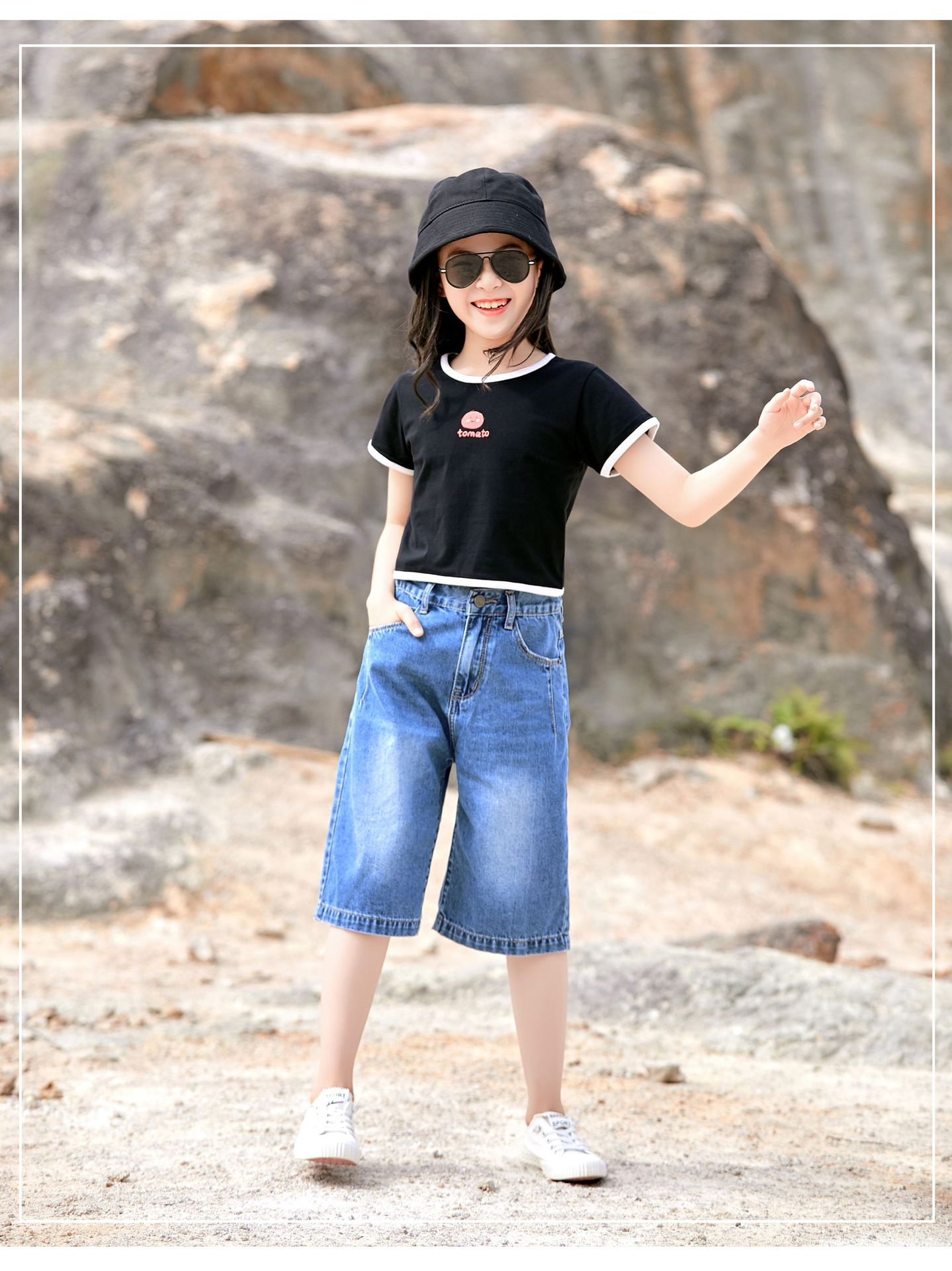 여자 데님 반바지 2024 여름 겉옷 5 점 바지 얇은 올매치 어린이 반바지 서양식 걸스 와이드 레그 바지스토어 가기