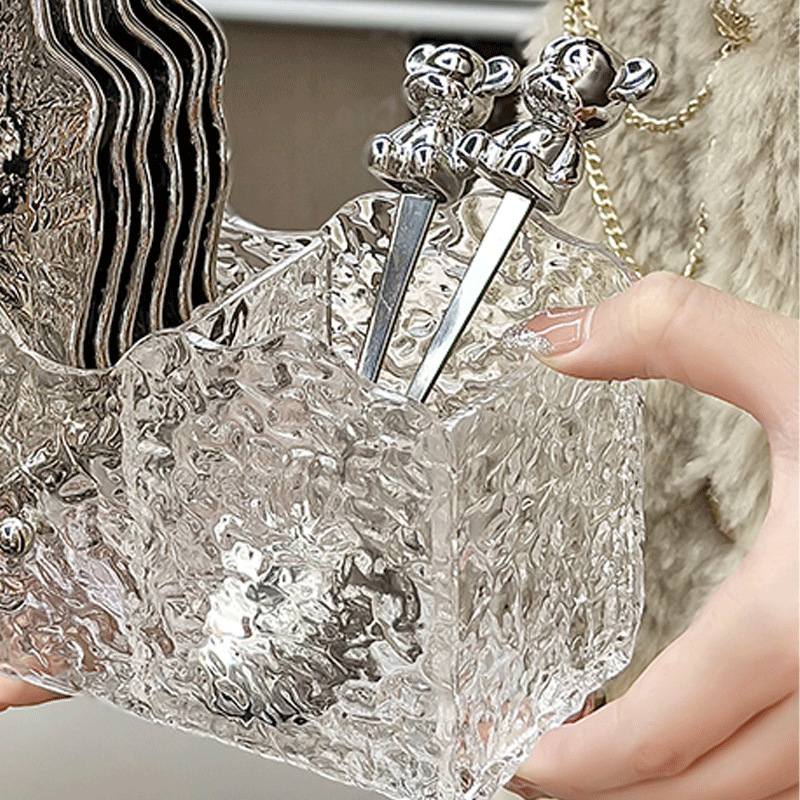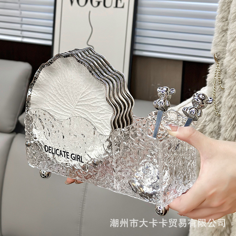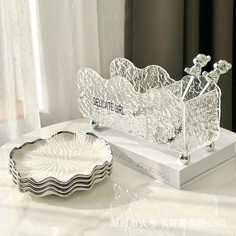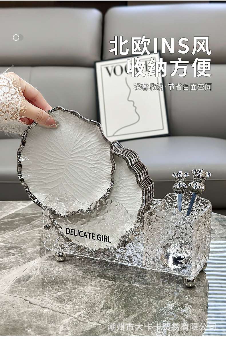 • 연꽃 뼈 접시 4 팩 (실버) + 숟가락없는 아크릴 저장 상자