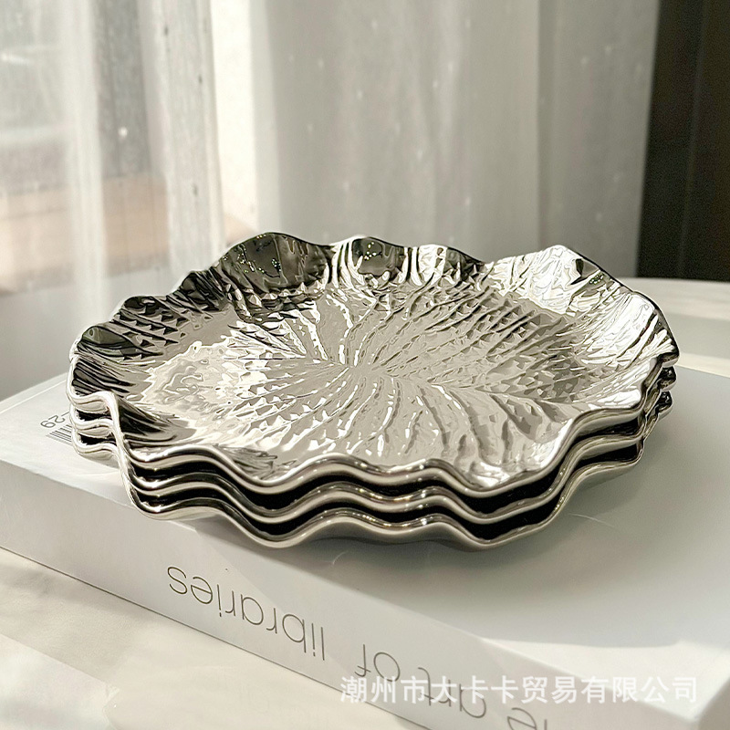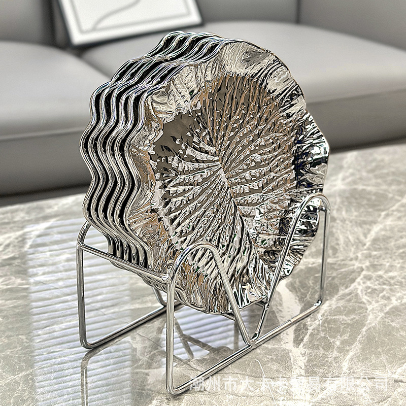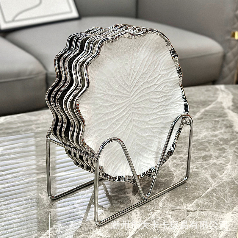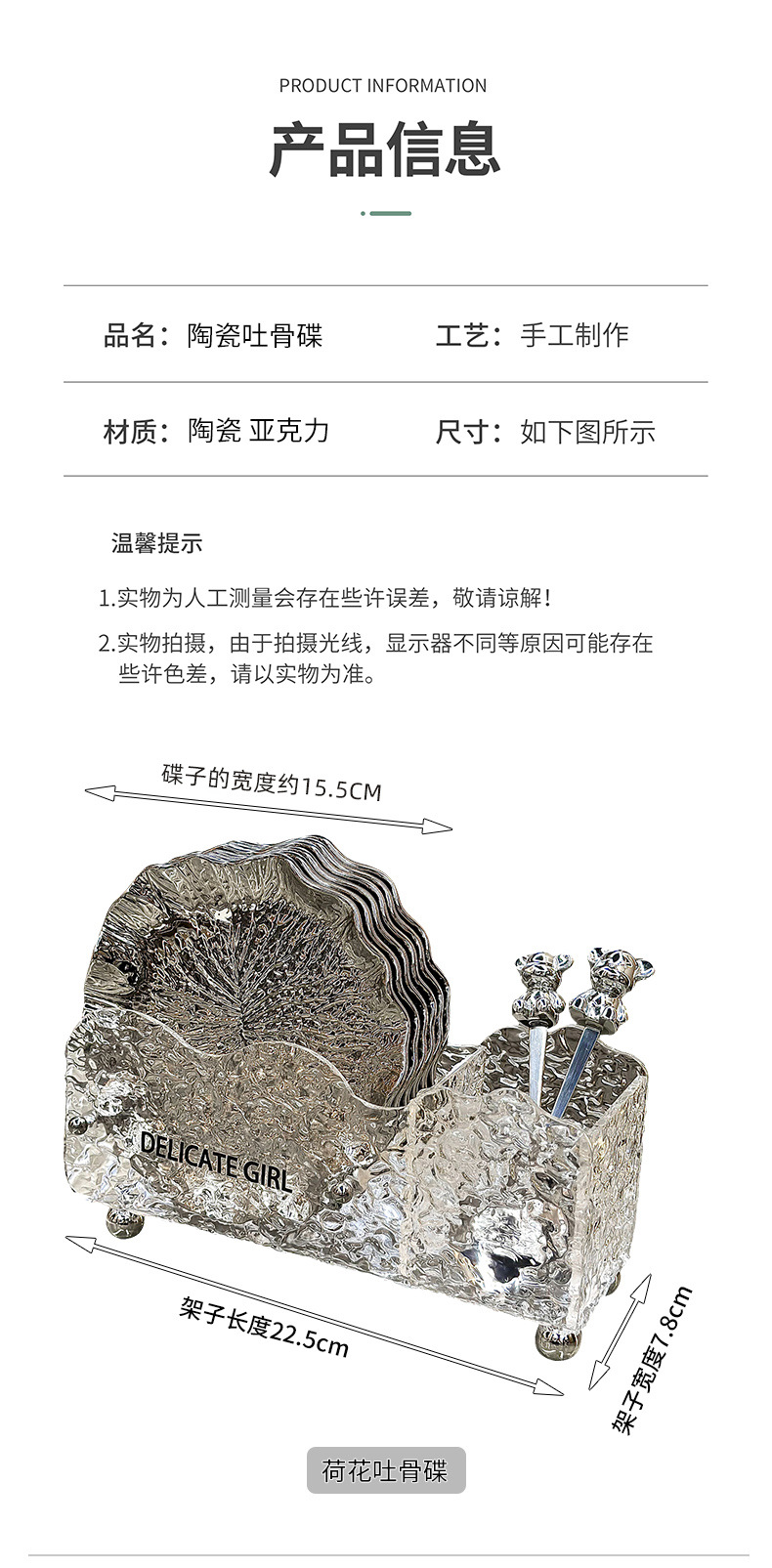 • 연꽃 뼈 접시 6 조각 (실버) + 금속 프레임
