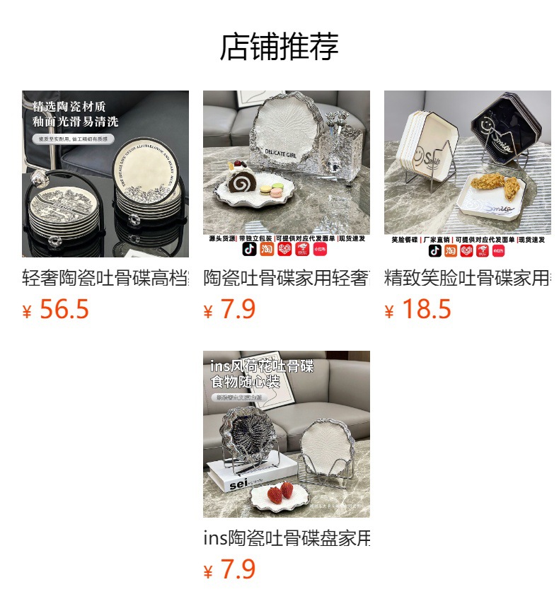 세라믹 뼈 침판 가정용 가벼운 고급 고급 테이블 쓰레기 슬래그 플레이트 뼈 침판 작은 접시 과일 플레이트 새로운 스타일스토어 가기