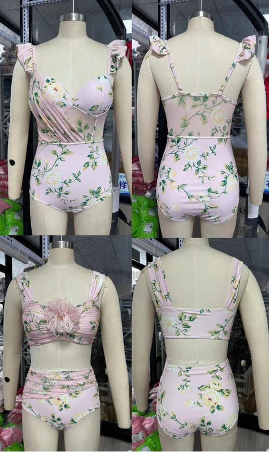 2024 유럽과 미국의 새로운 수영복 여성 미니 러플 달콤한 핑크 꽃무늬 해변 휴가 원피스 25089스토어 가기