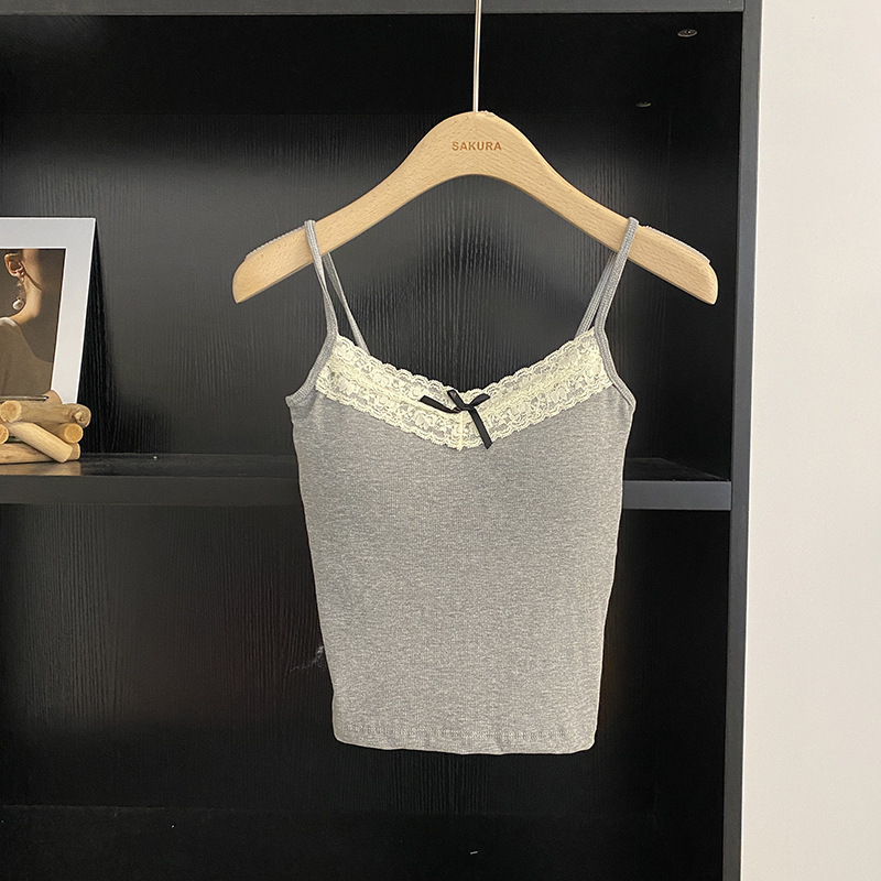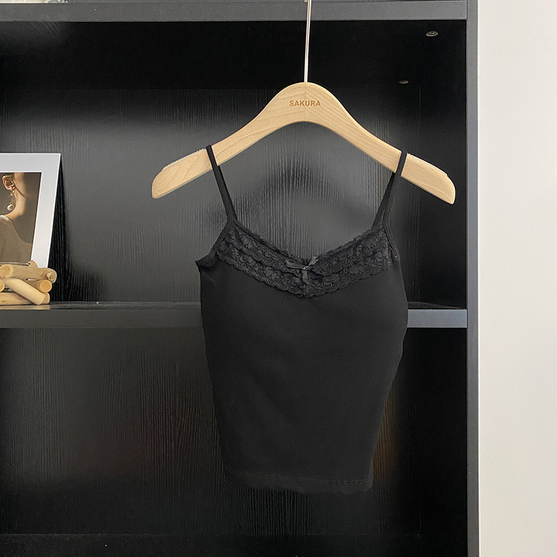 봄과 여름 새로운 순수한면 섹시 레이스 작은 캐미솔 여성의 외부 착용 내베이스 핫 소녀 뷰티 백 탑스토어 가기