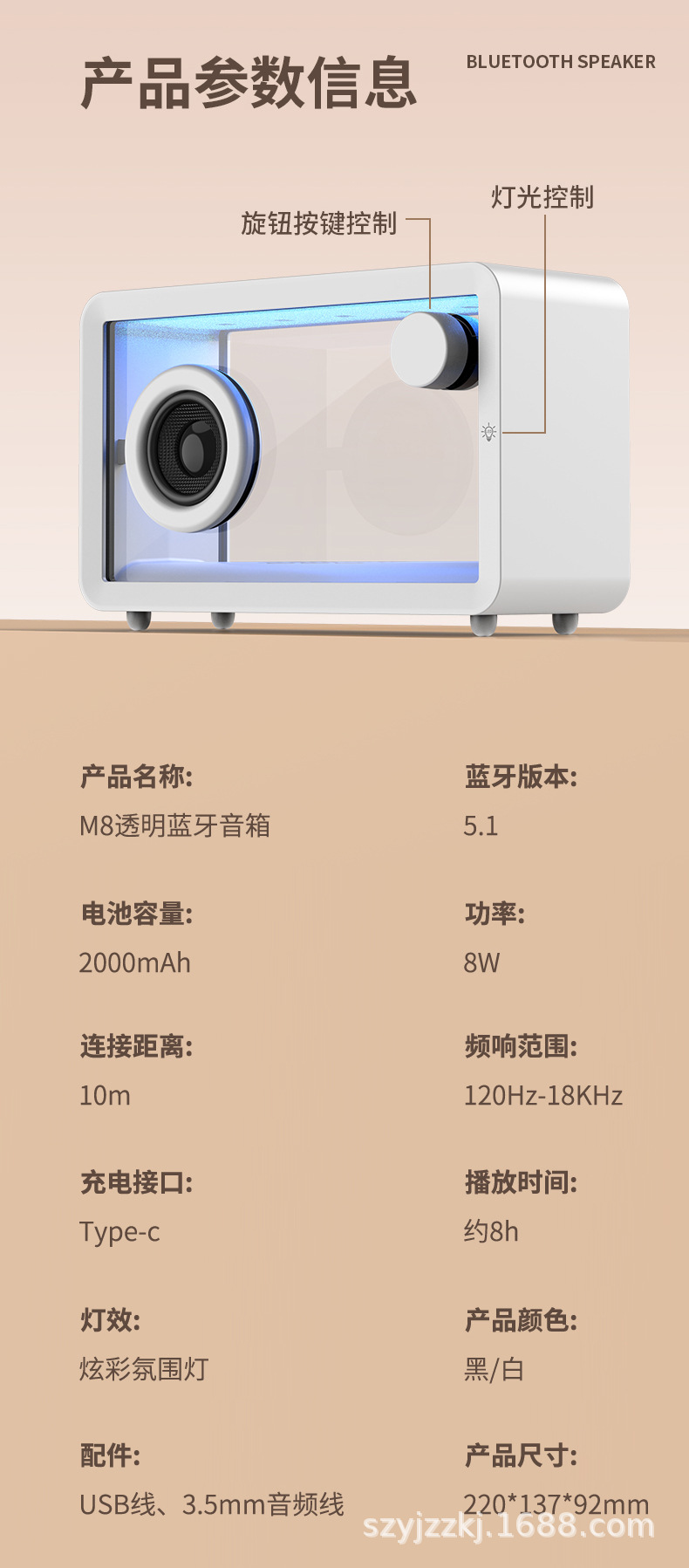 간단한 투명 블루투스 오디오 분위기 빛 휴대용 스피커 데스크탑 컴퓨터 스피커 창조적 인 블루투스 오디오