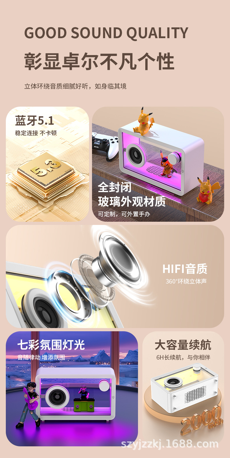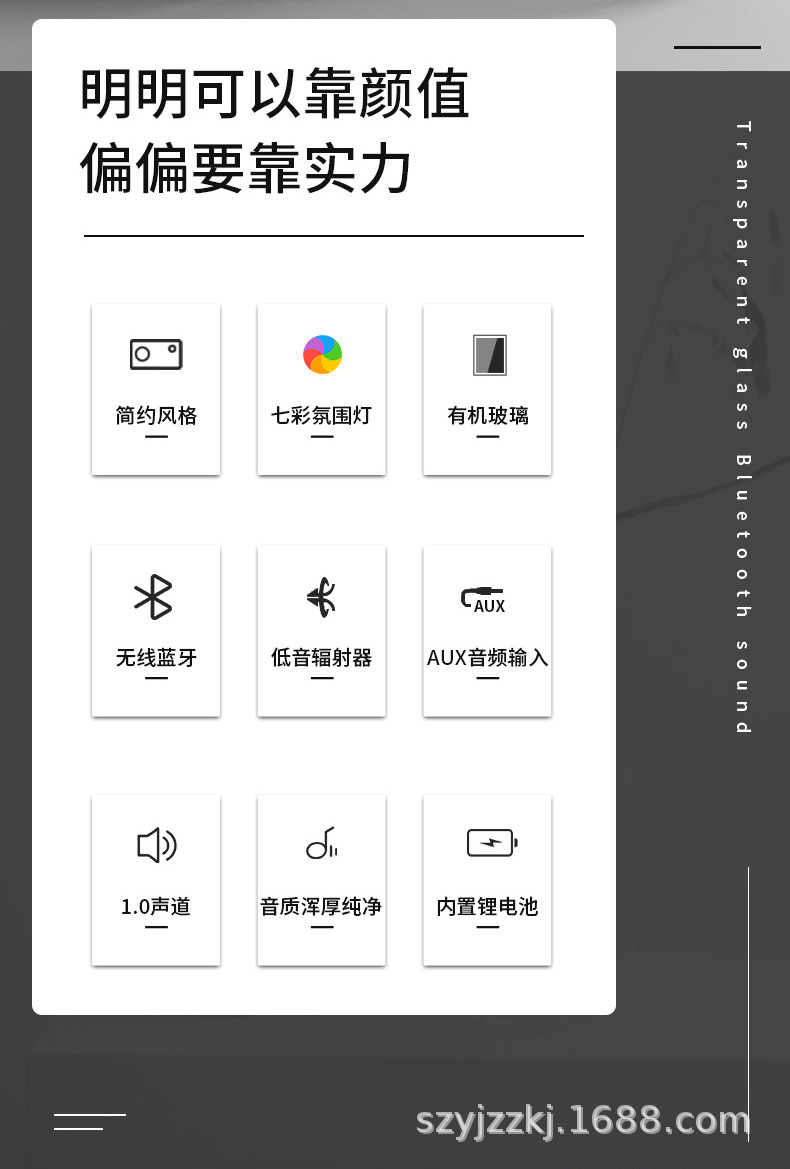 간단한 투명 블루투스 오디오 분위기 빛 휴대용 스피커 데스크탑 컴퓨터 스피커 창조적 인 블루투스 오디오스토어 가기
