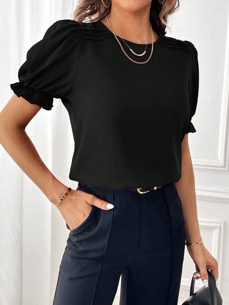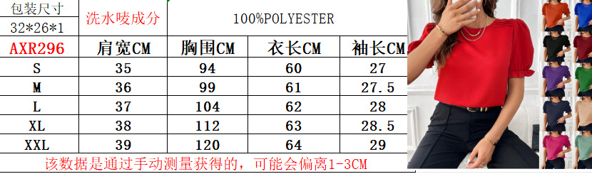 아마존 틱톡 테무 유럽 및 미국 여성복 2026 여름 신상 패션 고급스러운 단색 라운드넥 셔츠 탑스토어 가기