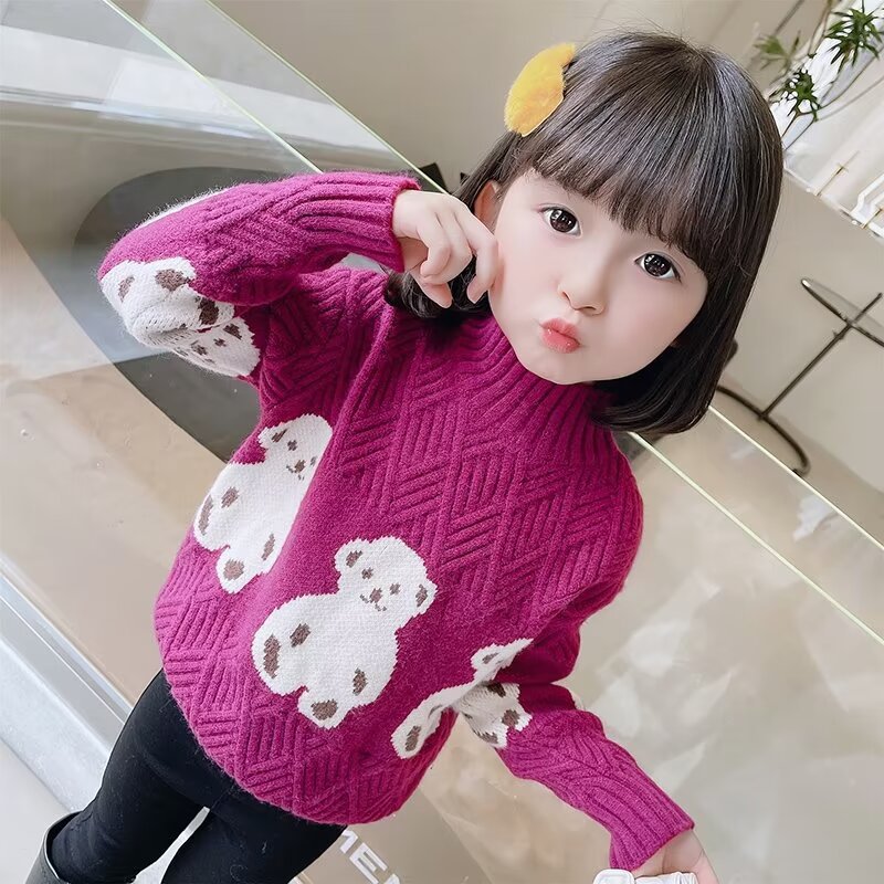 여자 스웨터 2024 봄과 가을 새로운 스타일 중대형 어린이 풀오버 플러스 벨벳 두꺼운 따뜻한 아기 소녀 니트 스웨터스토어 가기