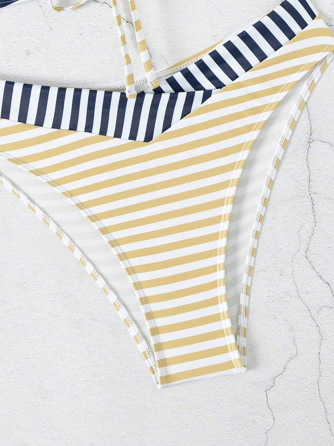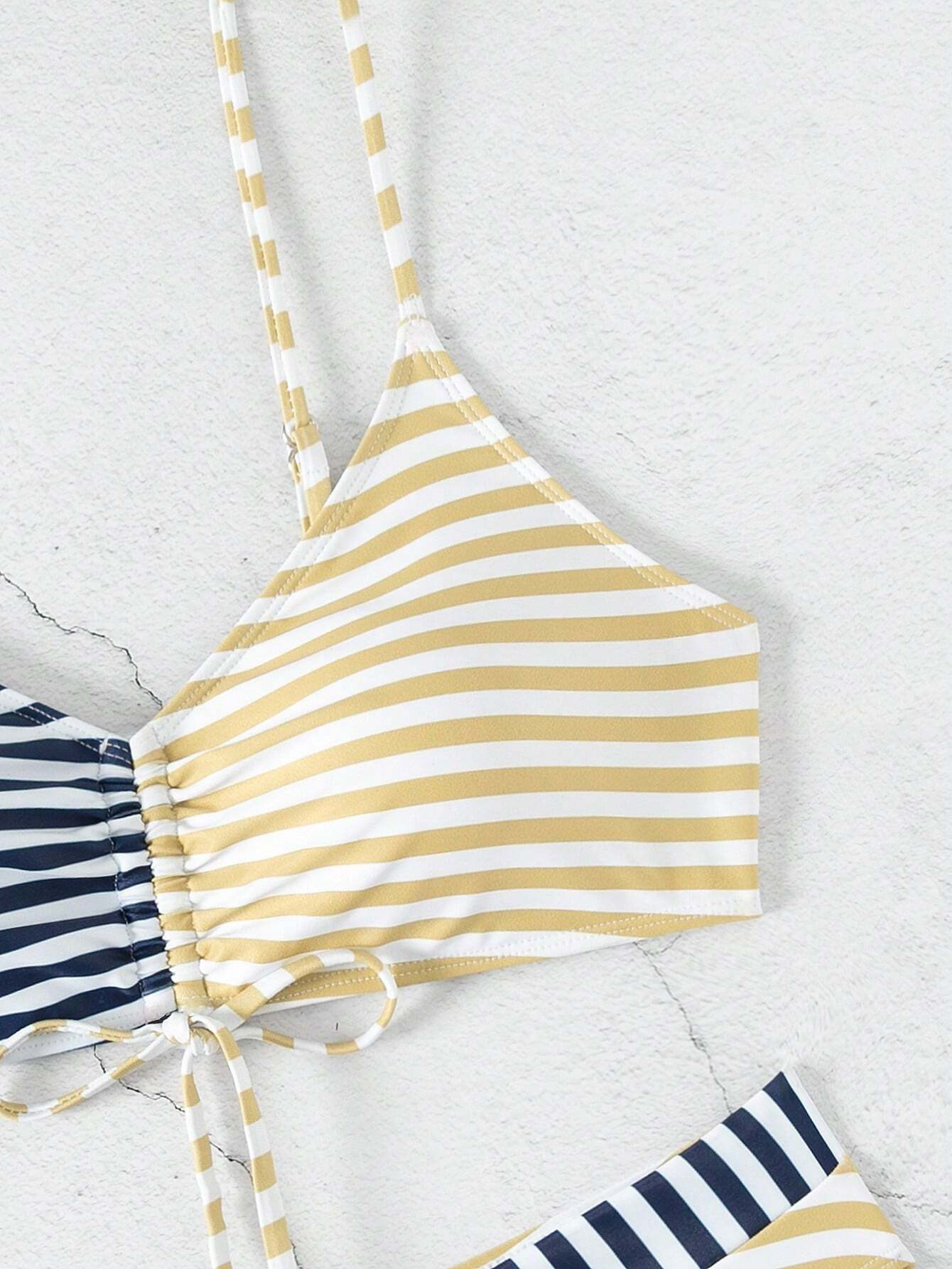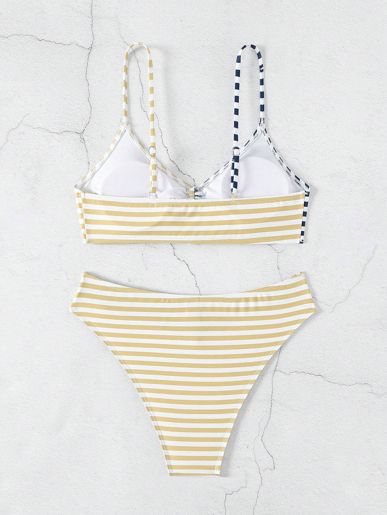 2024 새로운 유럽과 미국의 비키니 수영복 여성의 아마존 국경 간 분할 타이트 스트라이프 섹시한 비키니 수영복